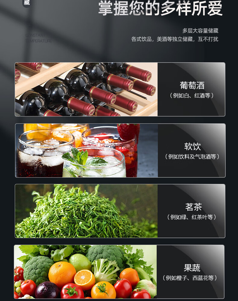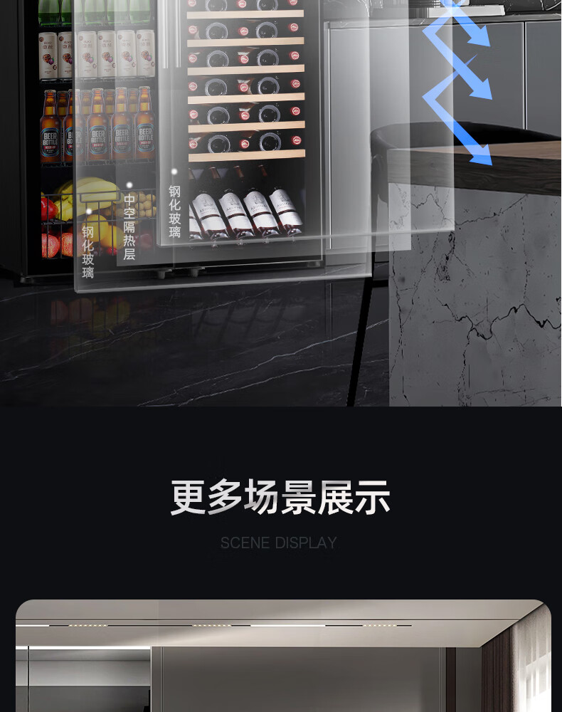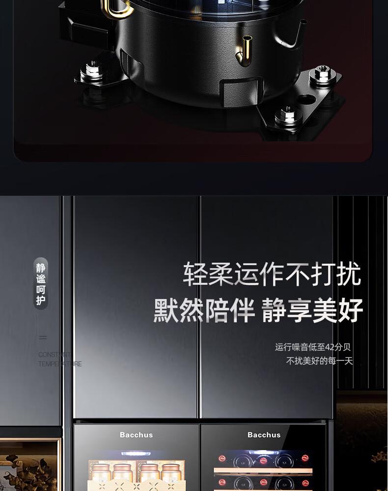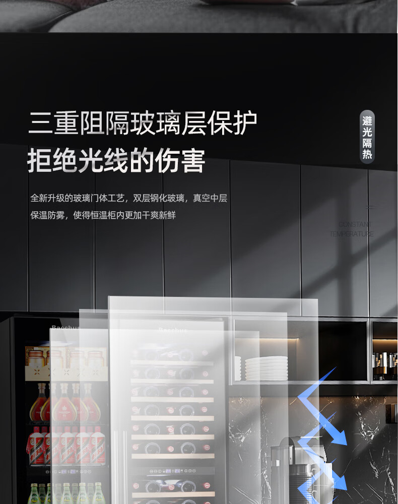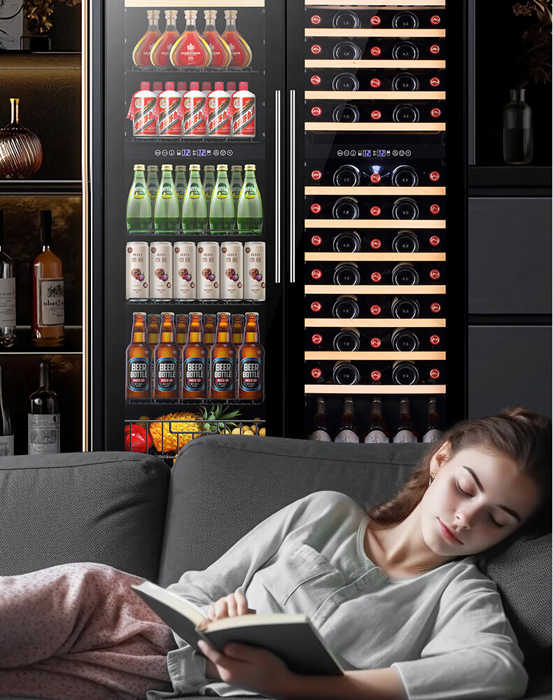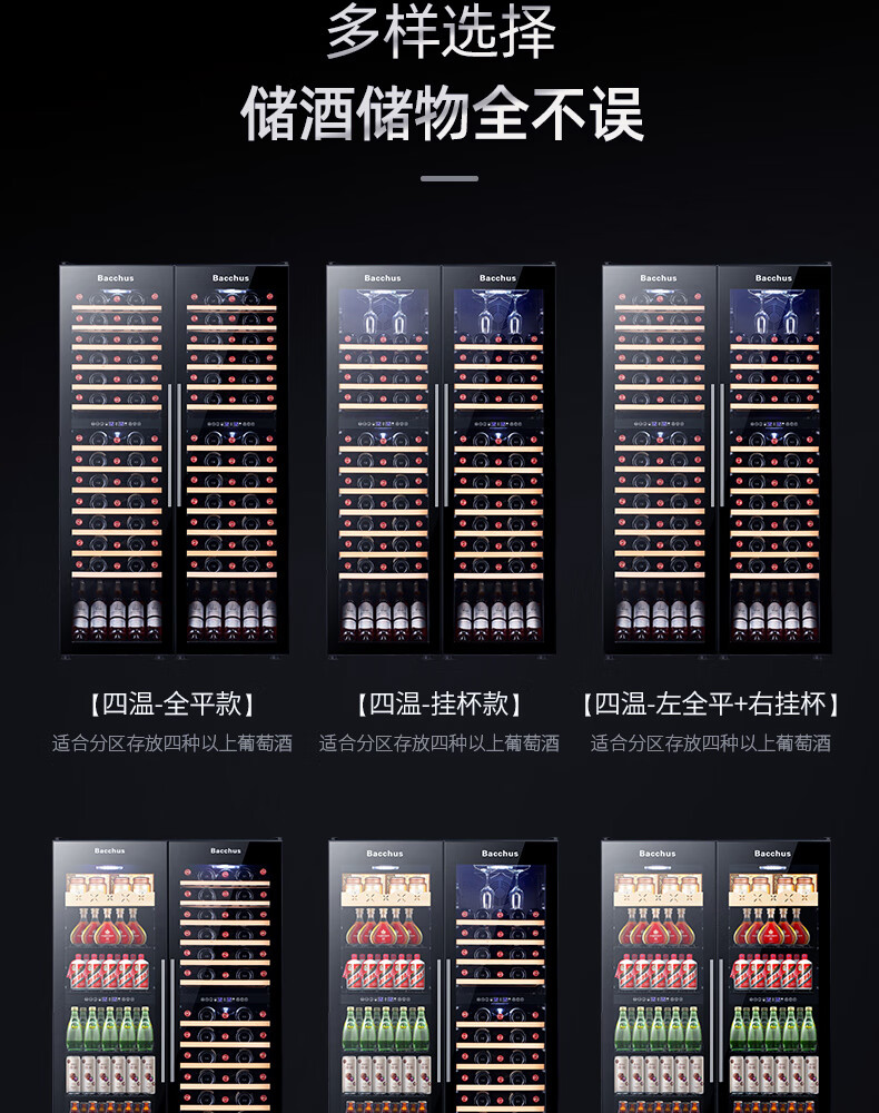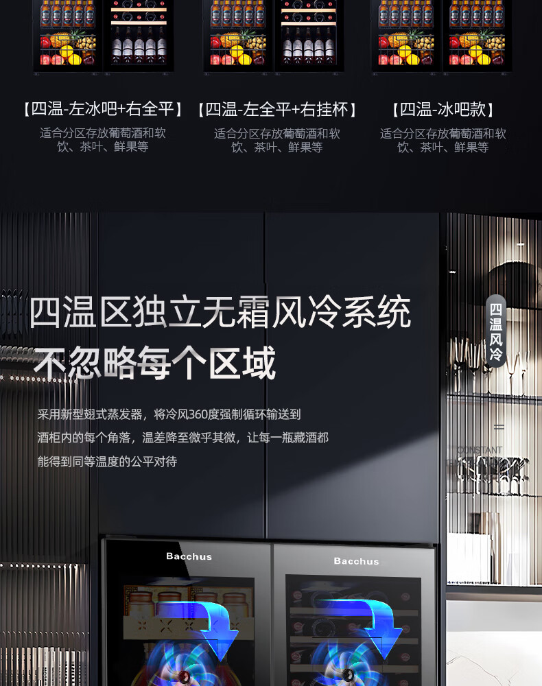 Bacchus wine cabinet with double doors, 150 bottles, thermostatic cabinet, home commercial tea cabinet, frozen beer, champagne, whiskey ice bar, double-door built-in wine storage, large living room, villa, combination cabinet, left ice bar type + right all-wood shelf type 416L YC-208 air-cooled compressor four temperature zones