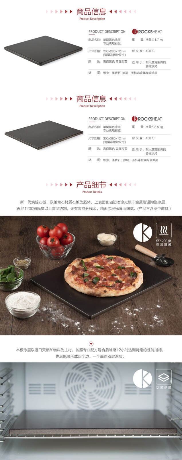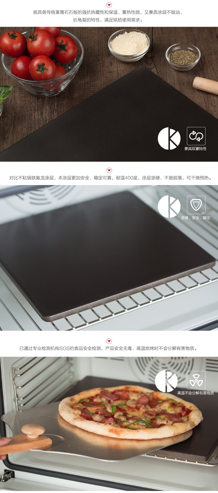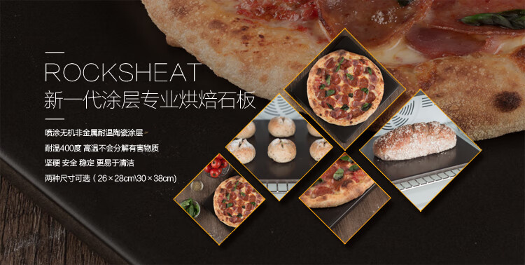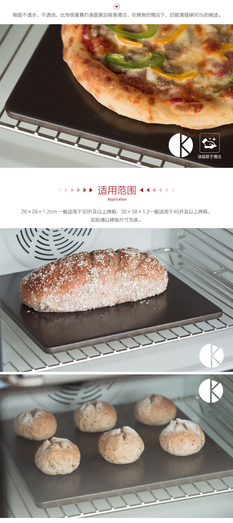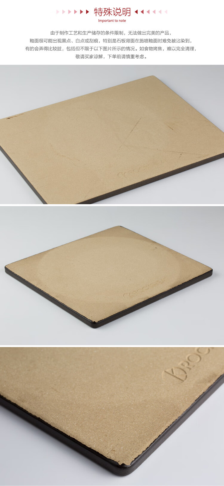ROCKSHEAT single-sided black ceramic glazed high temperature resistant baking stone slab pizza and European bread oven stone slab 26X28X1.2cm black glazed