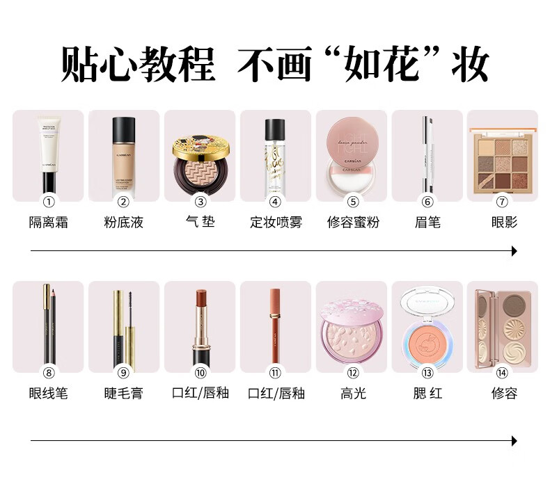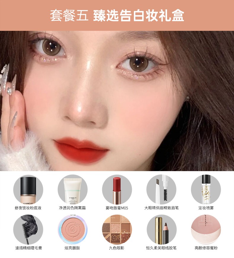 Carslan Makeup Set Gift Box Novice Beginner Cosmetic Set Complete Makeup Gift Box New Year Gift Official Flagship Package Three 28.5g Beginner Basic 7-piece Set