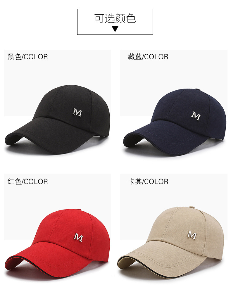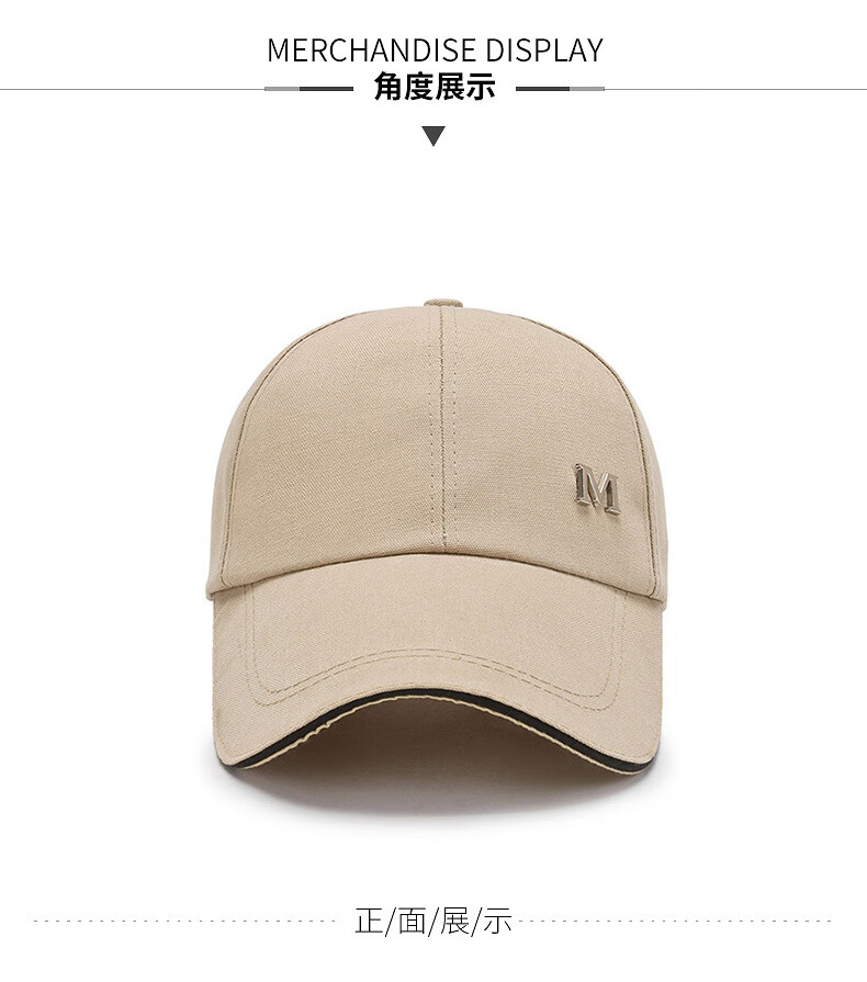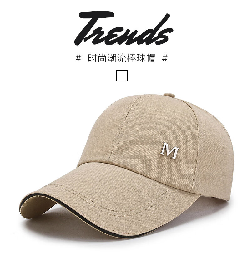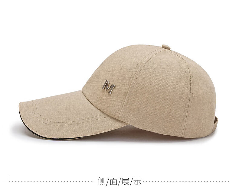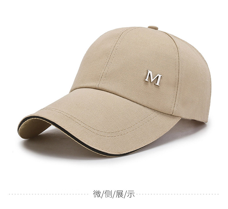 Kissed Baseball Cap Men's Spring and Autumn M Iron Label Large Brim Peaked Cap Sun Protection Sports Leisure Simple Fishing Sun Hat Khaki One Size