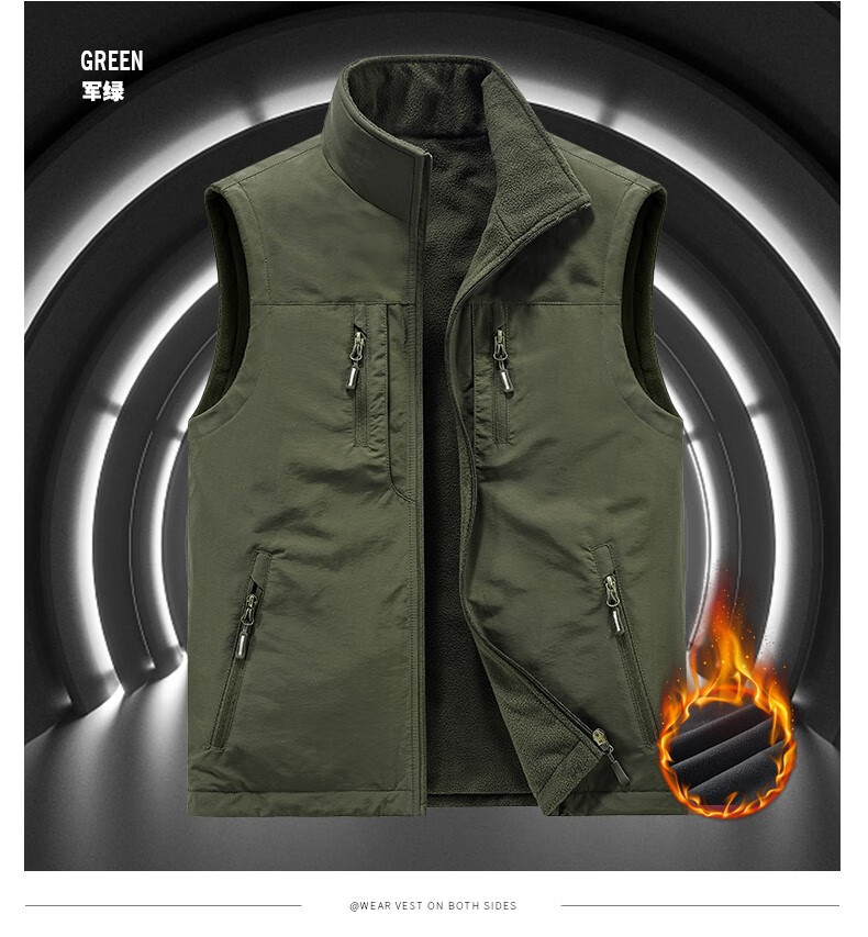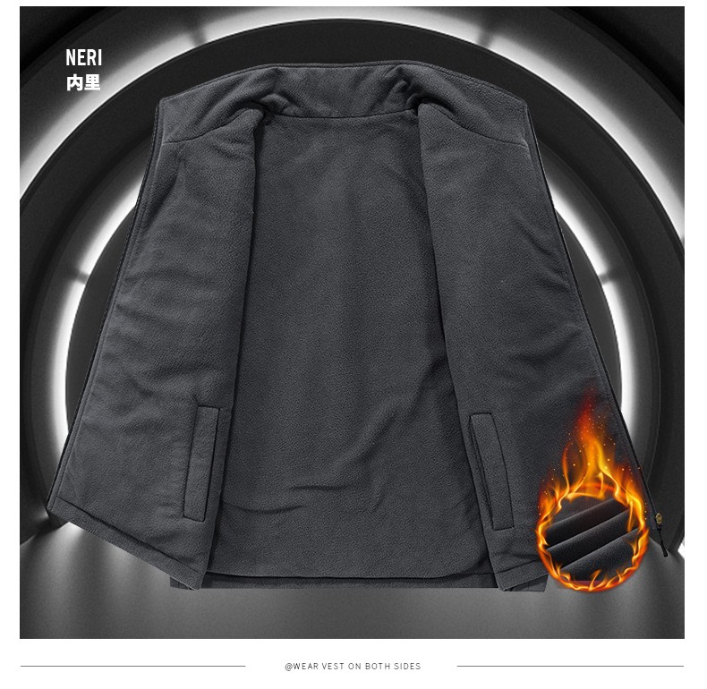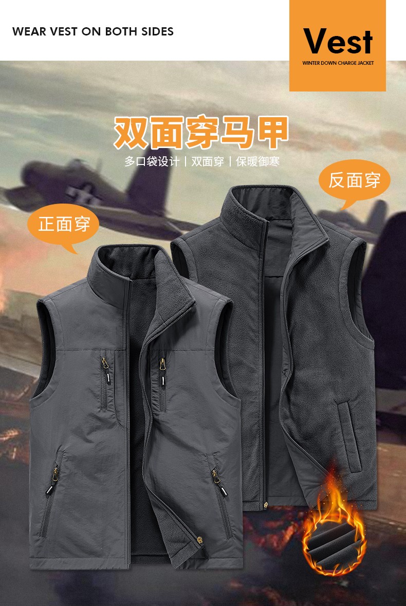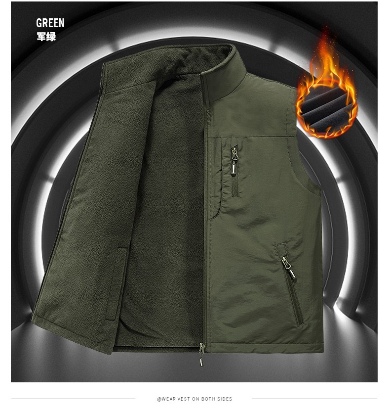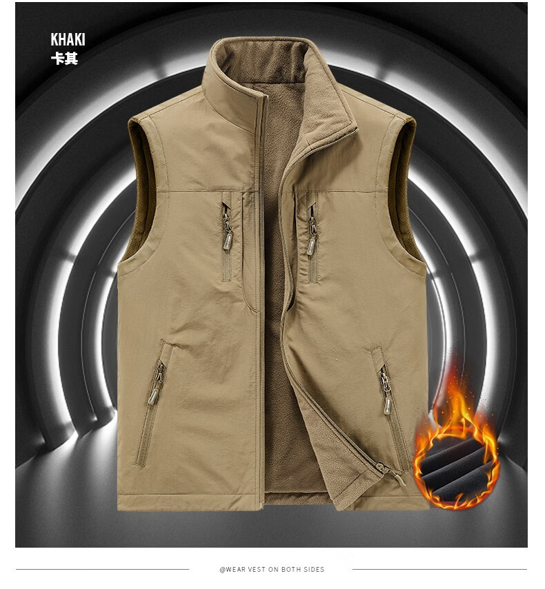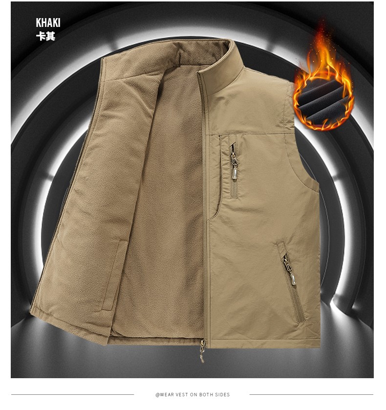 Walking Dragon Men's Velvet Vest Casual Reversible Vest Fishing Photography Vest 1806 Khaki Velvet L (125Jin Jin is equal to 0.5kg -140Jin Jin is equal to 0.5kg)