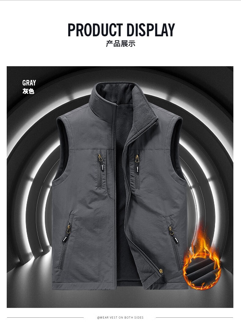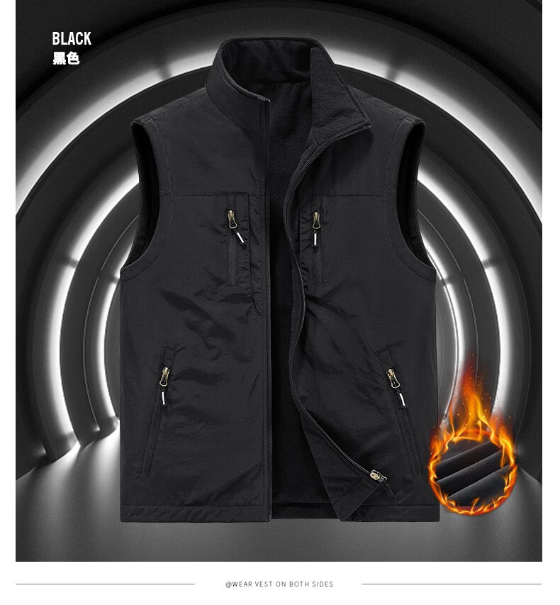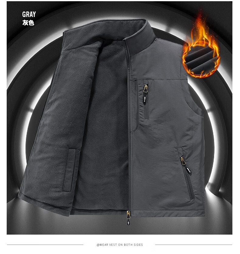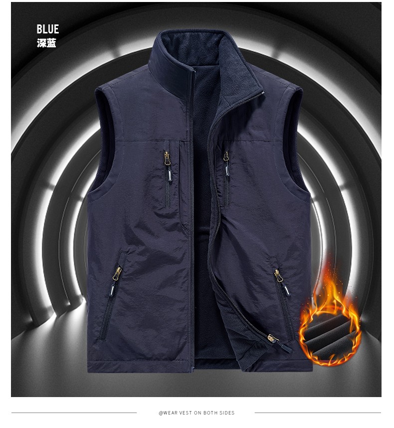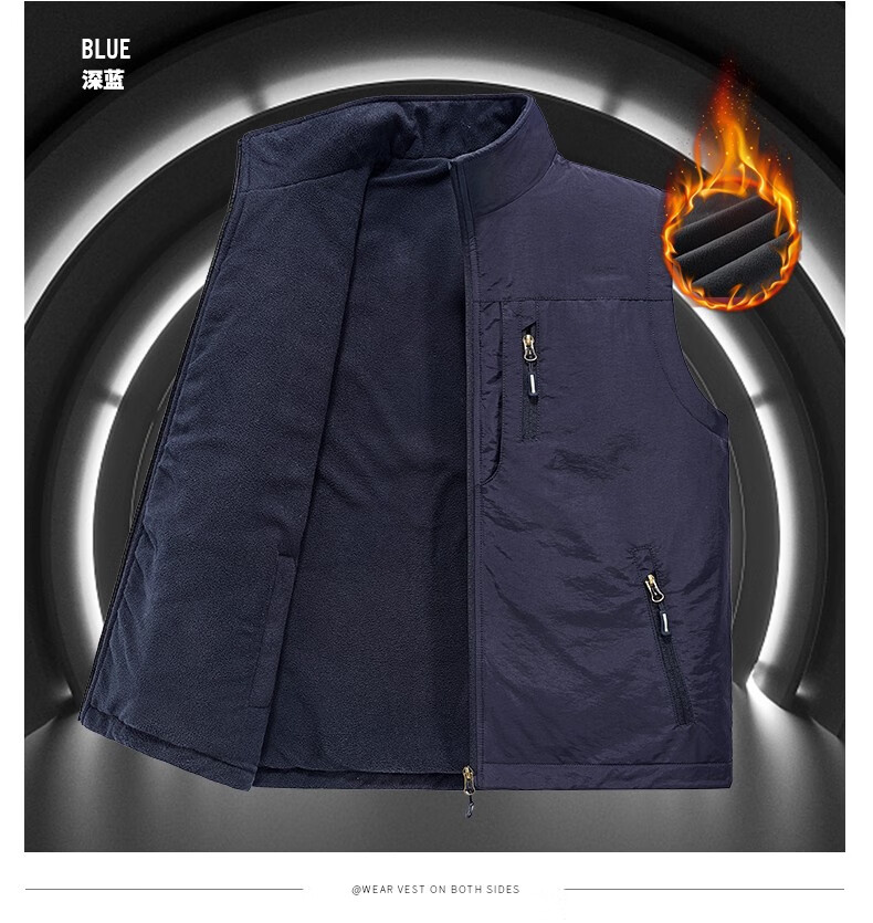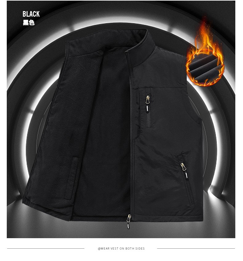Walking Dragon Men's Velvet Vest Casual Reversible Vest Fishing Photography Vest 1806 Khaki Velvet L (125Jin Jin is equal to 0.5kg -140Jin Jin is equal to 0.5kg)