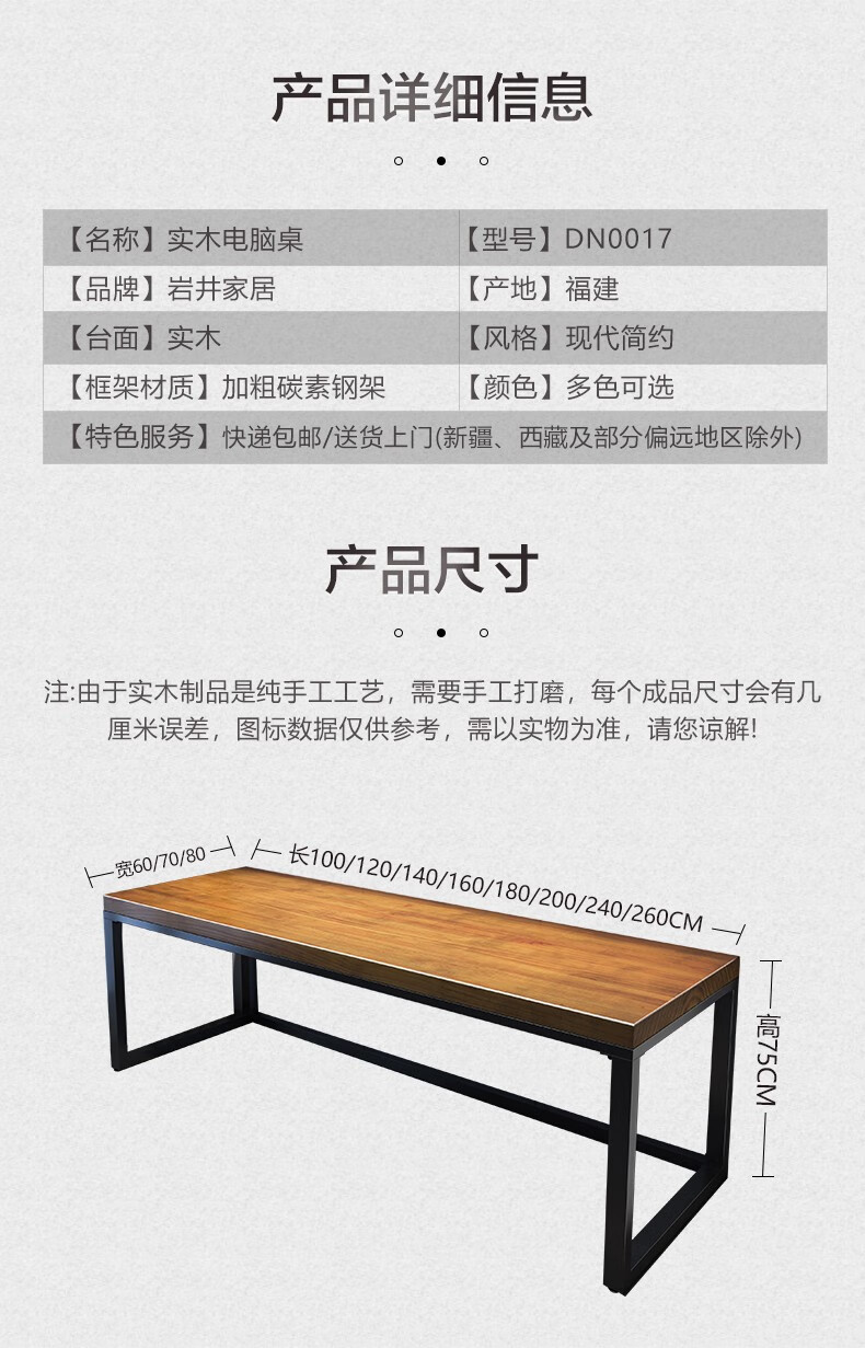 Changyueting solid wood computer desk desktop modern bedroom simple study desk home log office writing desk standard single table 120*60*75 thick 5cm
