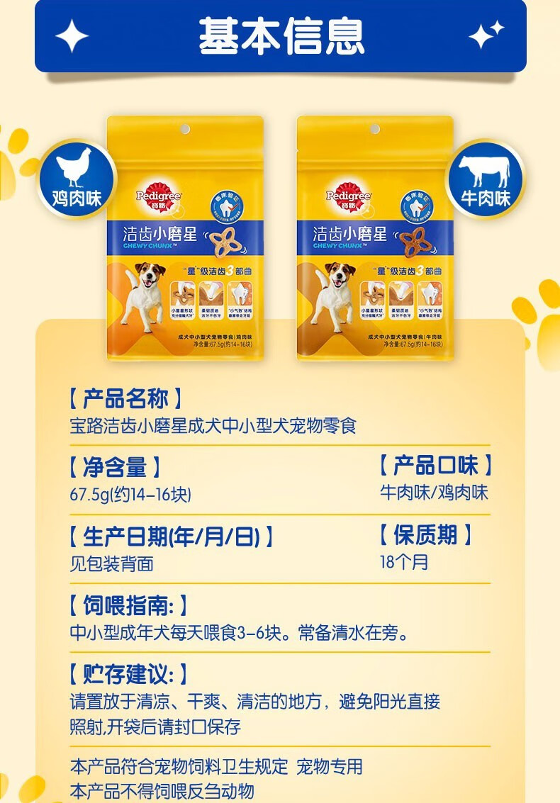 Pedigree Dog Snacks Dog Teeth Cleaning Stick Small and Medium Adult Dog Teeth Cleaning Stick Chicken 67.5g