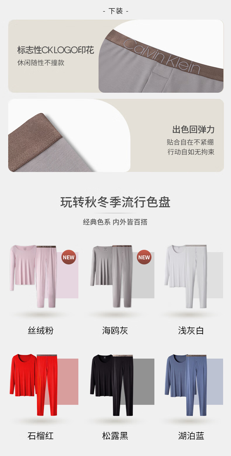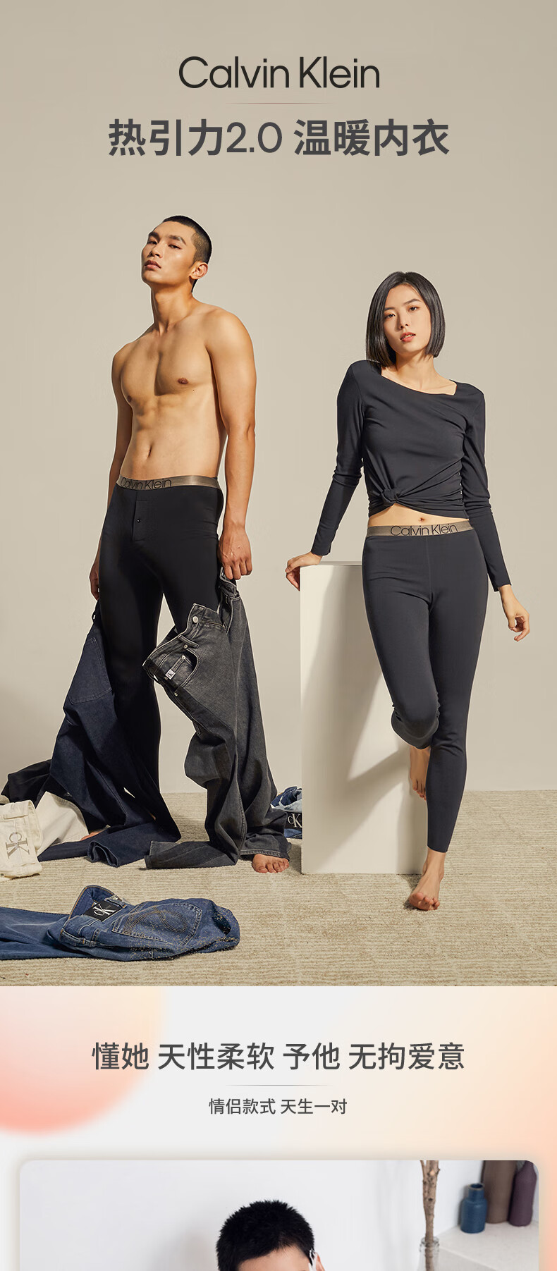 Calvin Klein Christmas Gift CK Thermal Gravity Thermal Underwear Zodiac Year New Year Red Sweat-wicking and Heating Autumn Clothes as You Like AD0002-UB1-Men's Thermal Trousers Truffle Black L