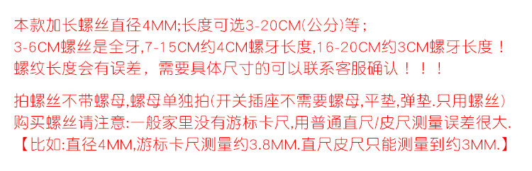 Switch and socket panel extension screws M4 round head 4 5 6 8 10 12 15cm special installation screws 4 centimeters (cm)-20 pieces/pack
