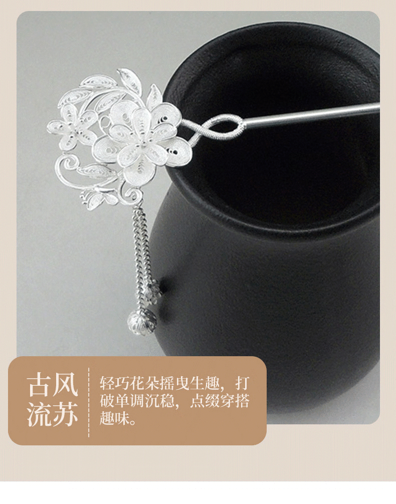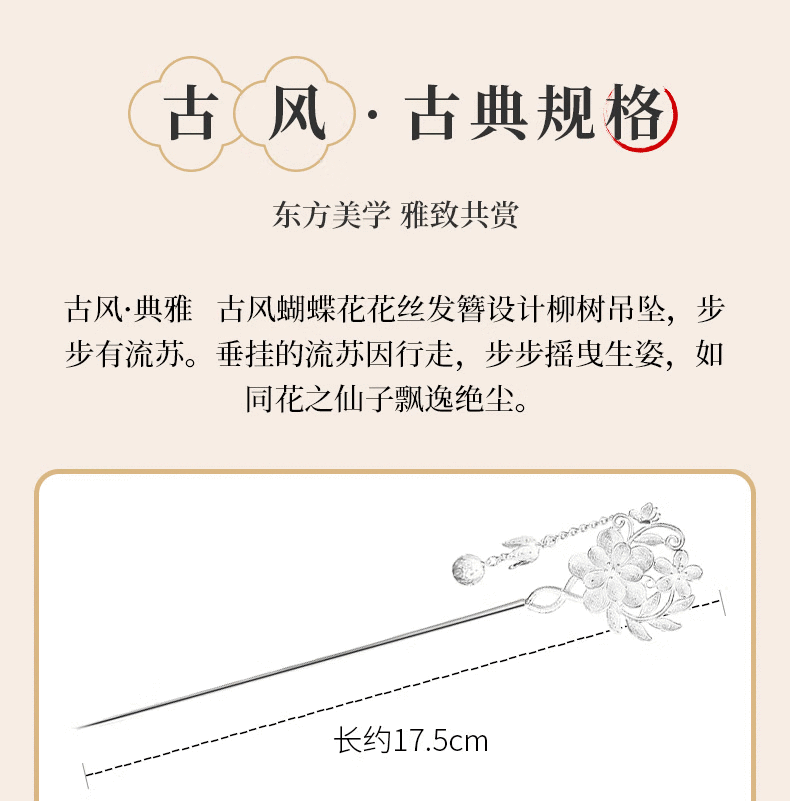 Dingjing 999 pure silver hairpin, elegant high-end hairpin, ancient style Hanfu horse-faced skirt, birthday gift for girlfriend, butterfly flower 999 pure silver hairpin