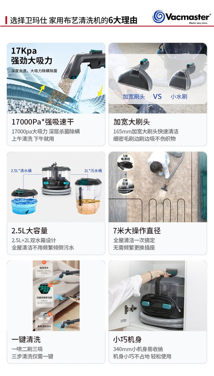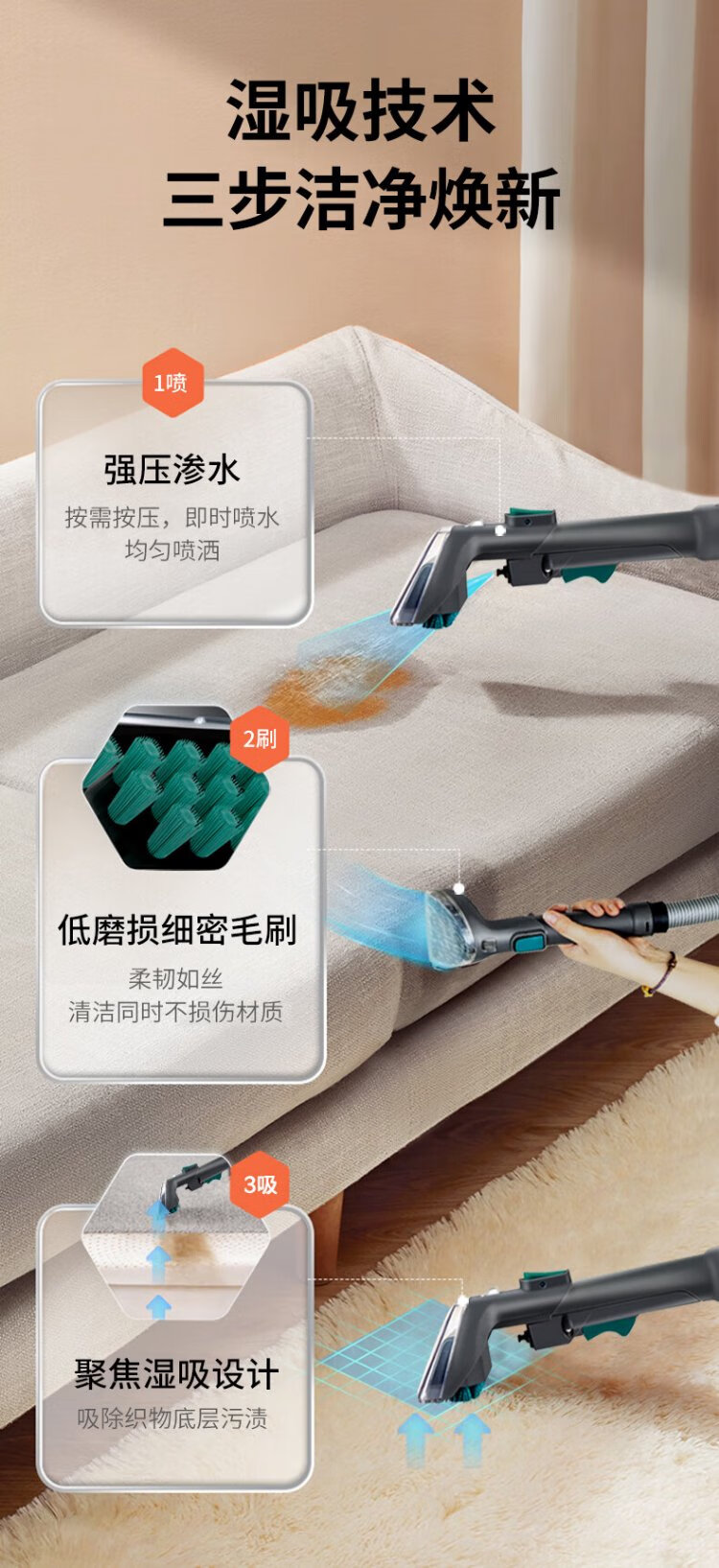 Vacmaster fabric sofa cleaning machine household floor washing machine carpet cleaning artifact fabric mattress curtain car cleaning machine multi-functional spray and suction integrated mite removal vacuum cleaning machine fabric fabric sofa carpet curtain bed kitchen pet dedicated