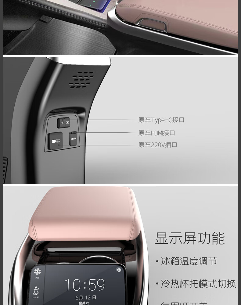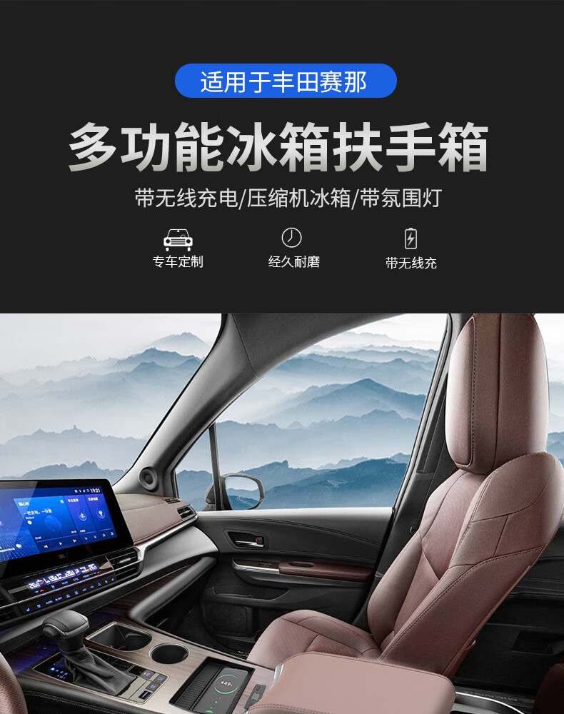 Bellini is suitable for Toyota Sienna/Grevia armrest box, refrigerator central control wireless charging storage box armrest box, refrigerator armrest box, customized red model