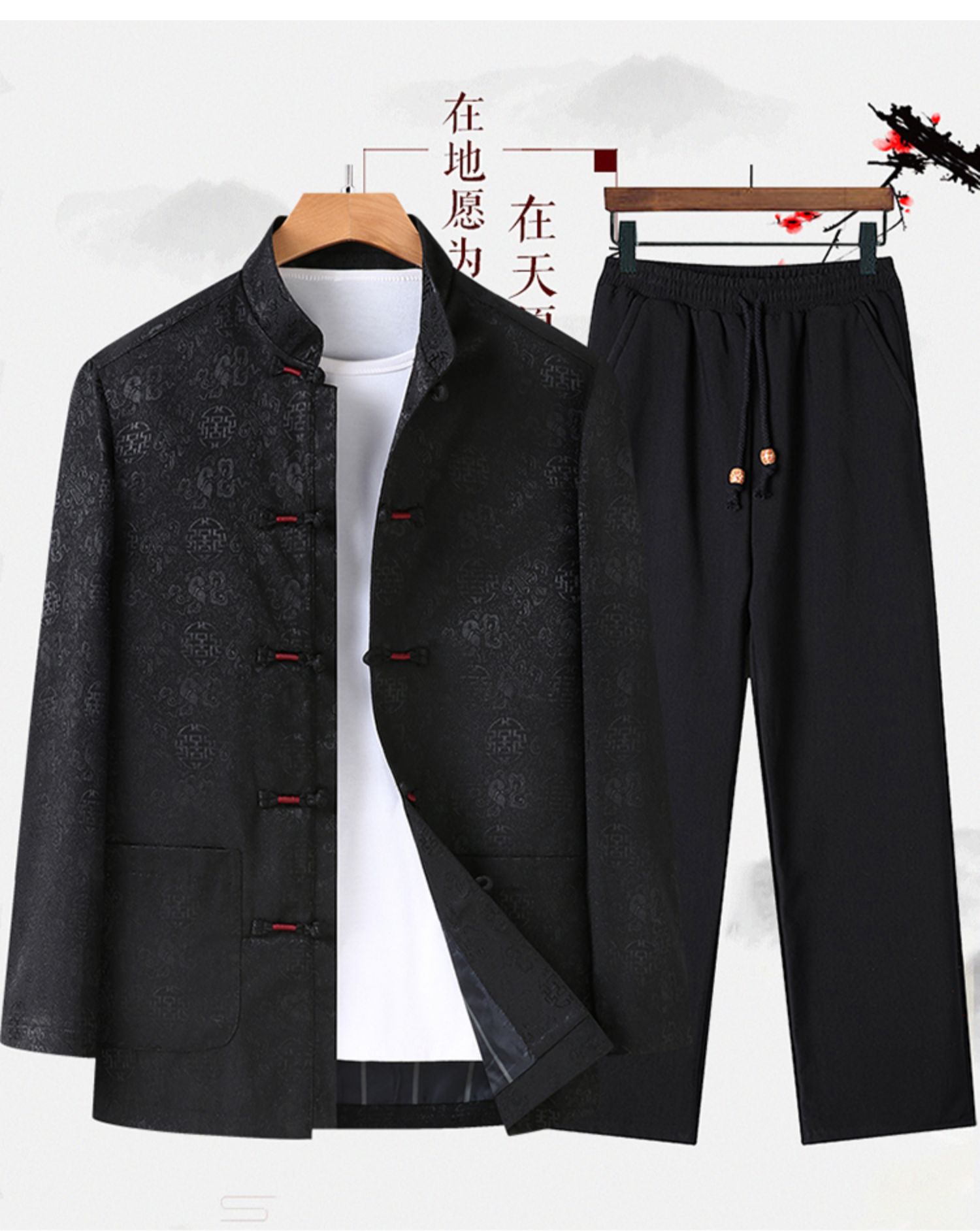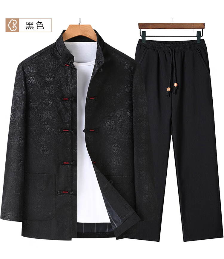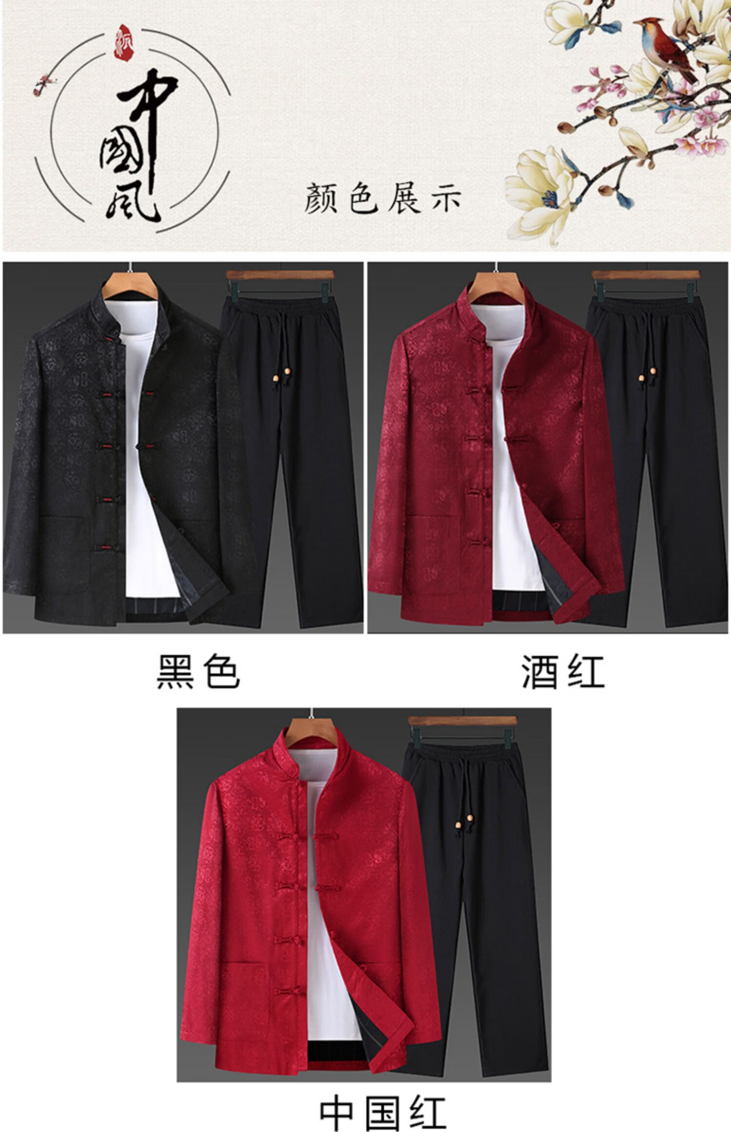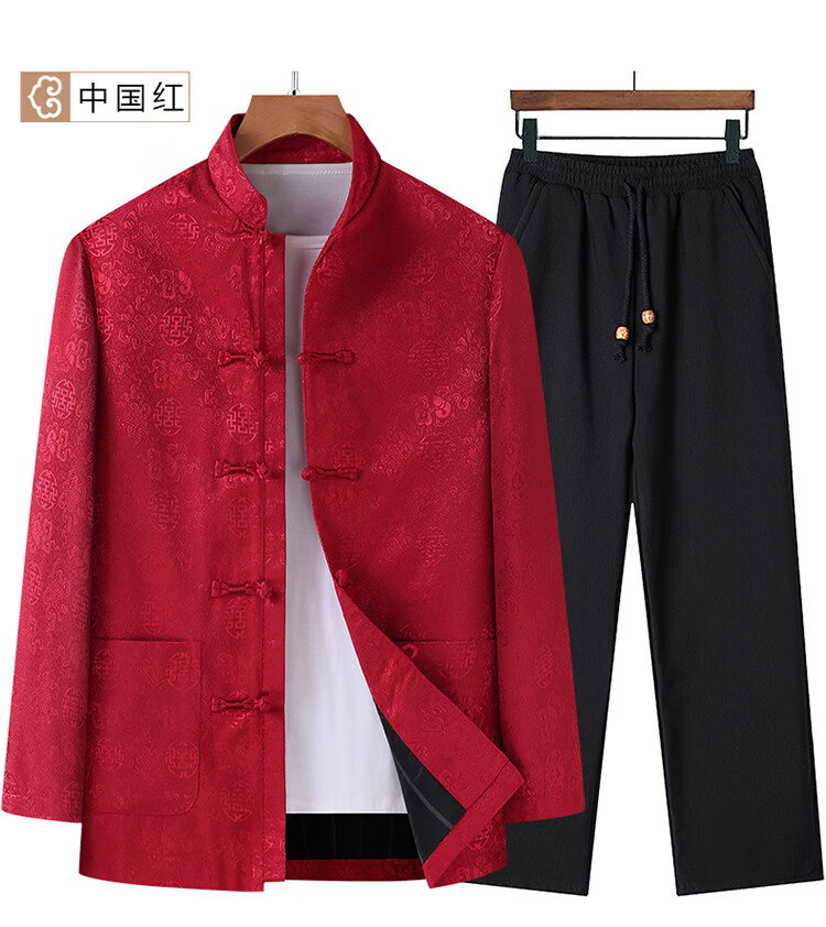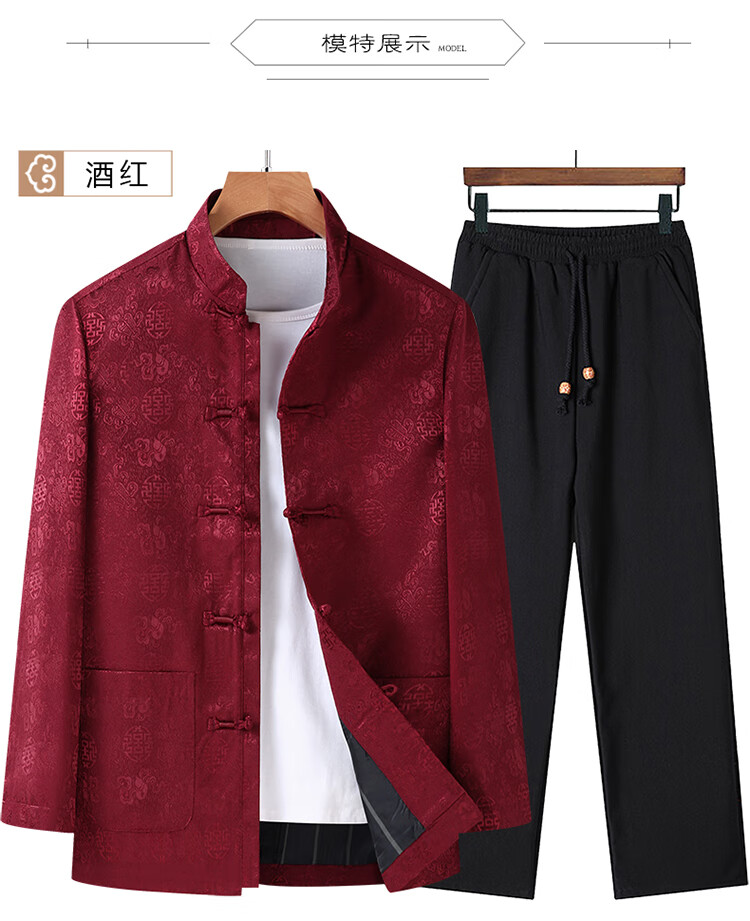 Pierre Cardin (pierre cardin) light luxury men's Chinese style Tang suit men's jacket suit elderly birthday birthday spring and autumn middle-aged and elderly large size red burgundy suit with black pants 180 suitable for 140 to 155 Jin Jin is equal to 0.5 kg