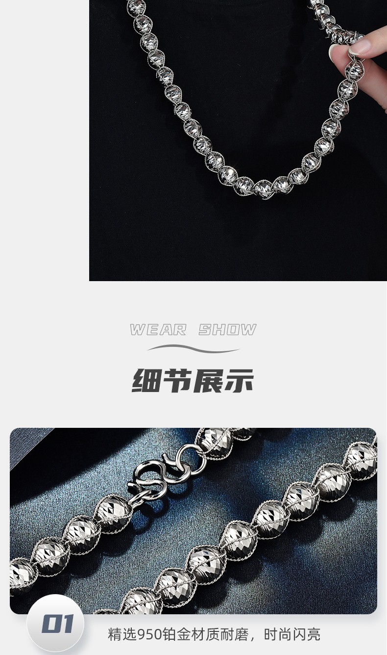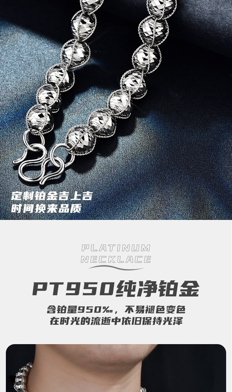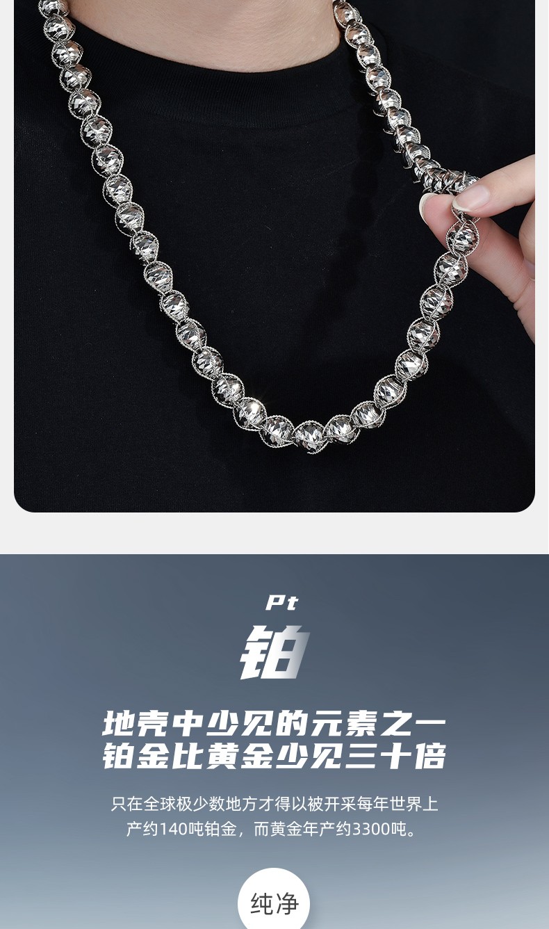 GsunG platinum men's necklace new line wrapped beads PT950 necklace men's large platinum bead chain priced by gram contact before bidding