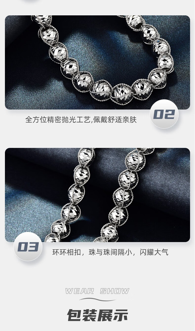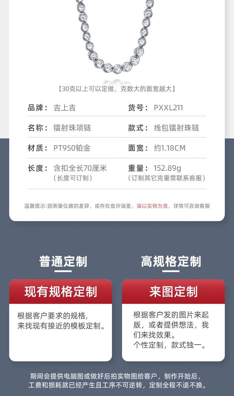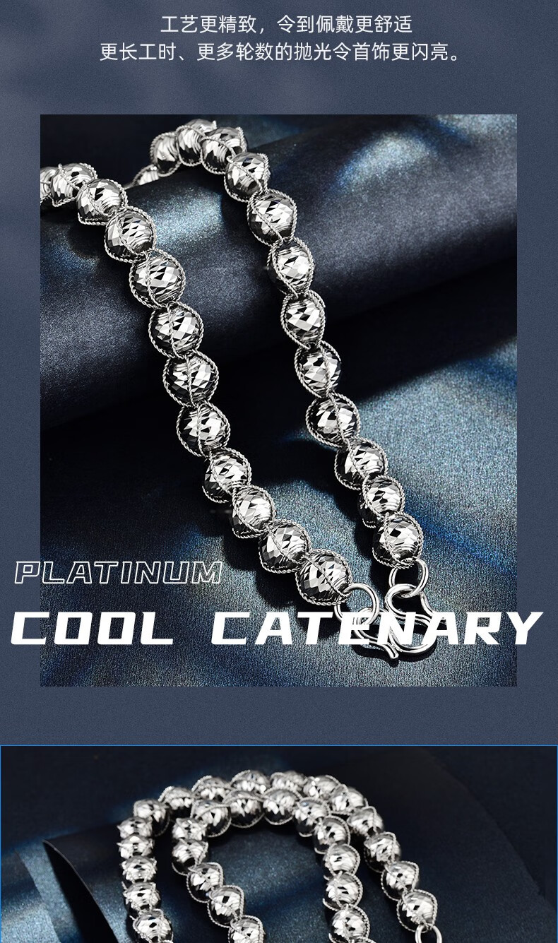 GsunG platinum men's necklace new line wrapped beads PT950 necklace men's large platinum bead chain priced by gram contact before bidding