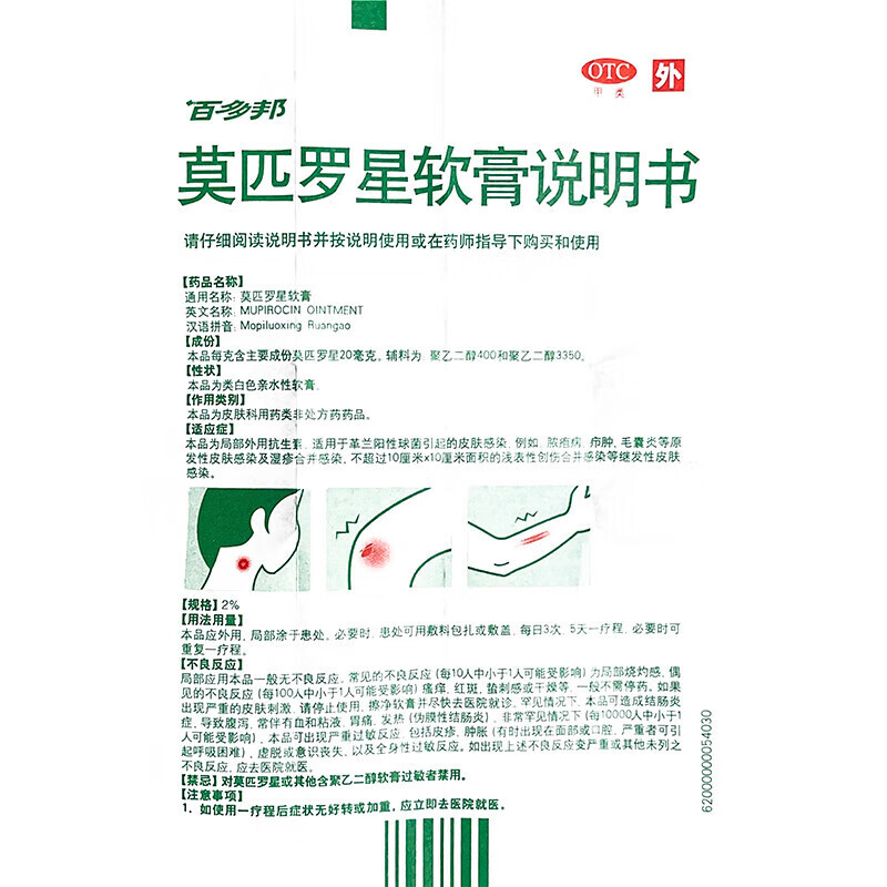 Baiduoban mupirocin ointment 2% pustule furuncle folliculitis skin infection eczema combined infection Sino-American SmithKline 3 boxes 10g