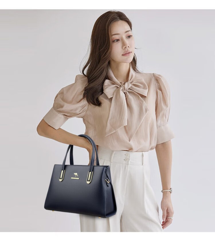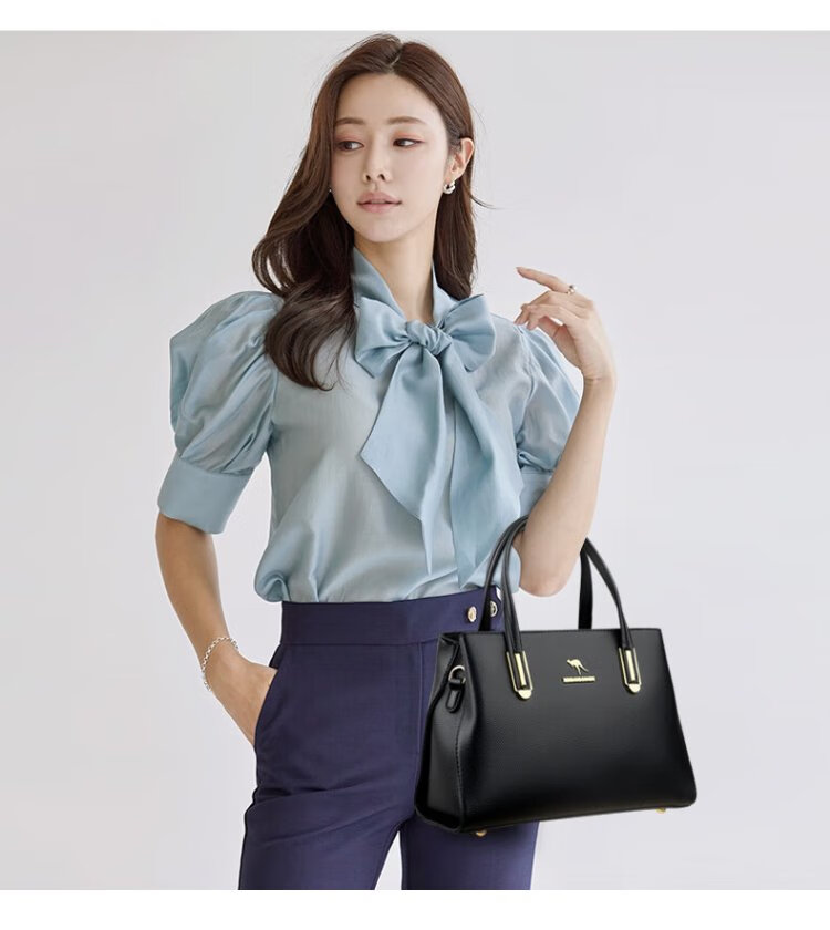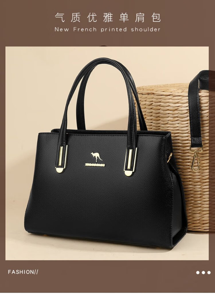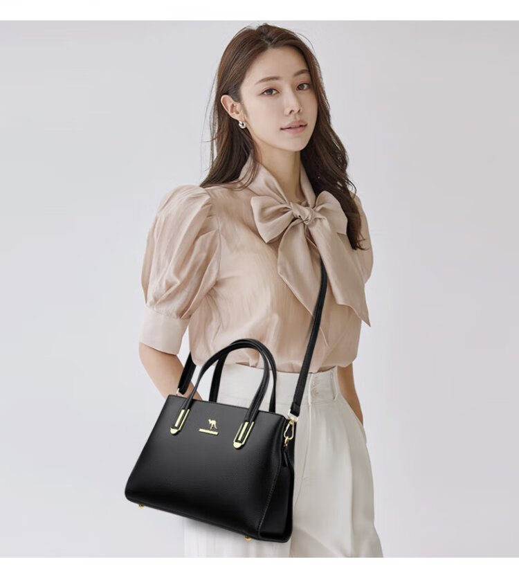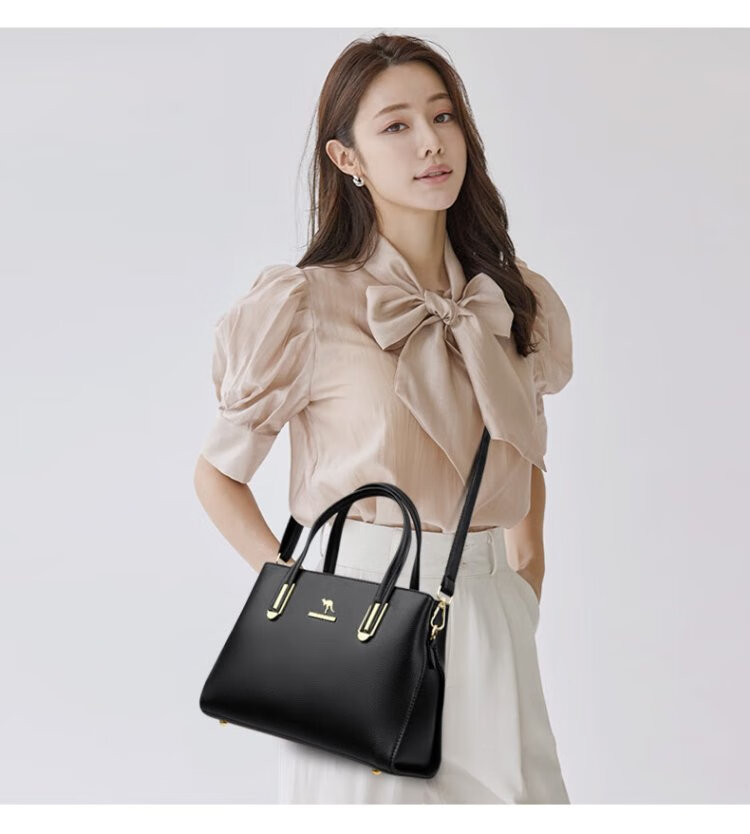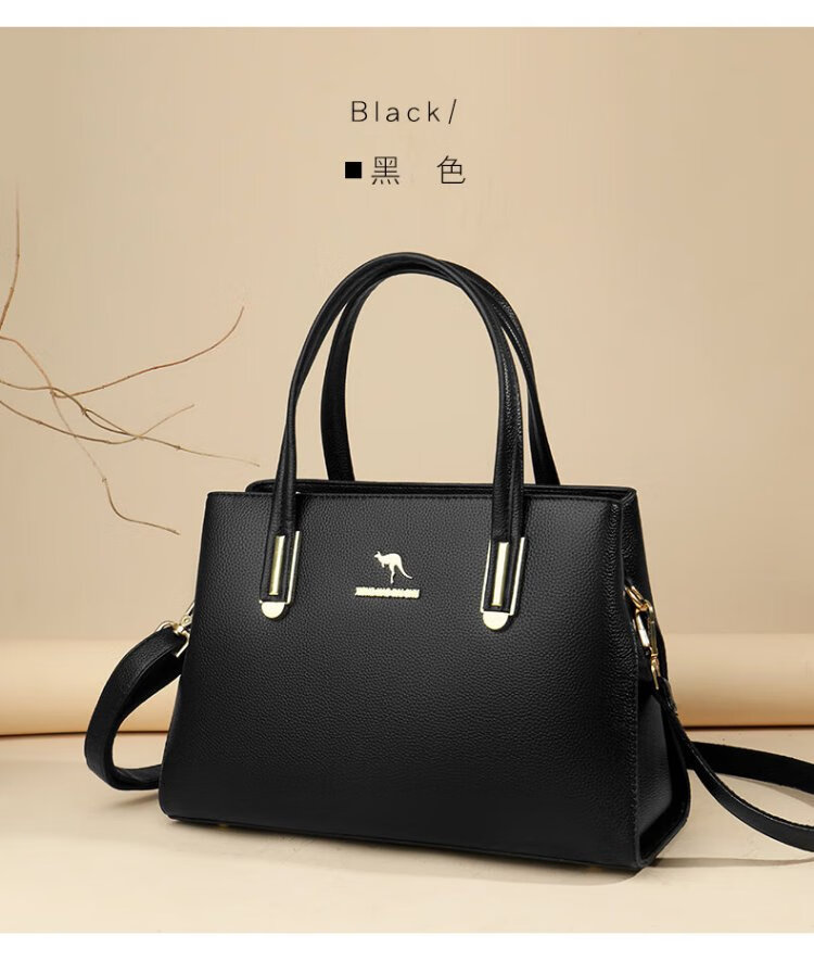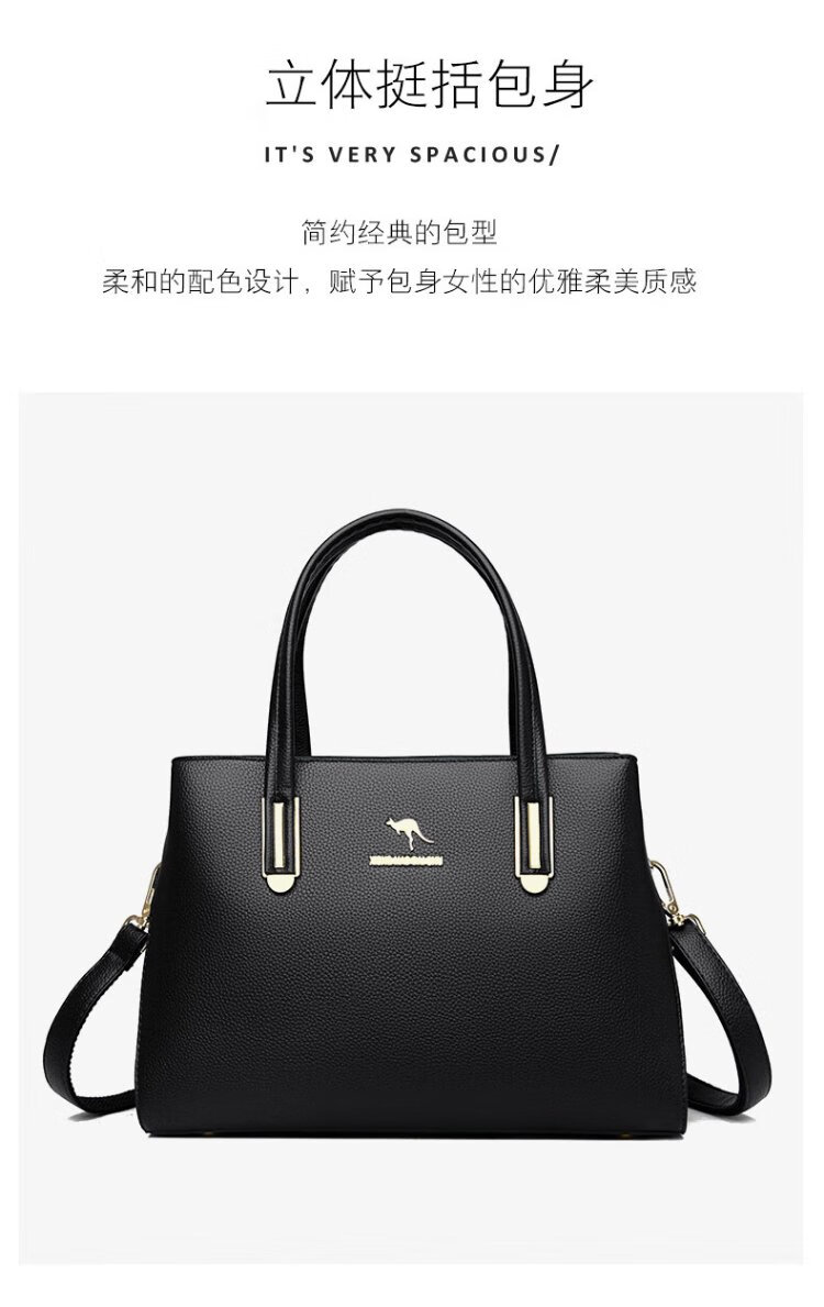 Kangaroo Kara genuine leather women's bag cowhide handbag crossbody bag large capacity gift for wife and mother middle-aged women's bag black gift box + hand bag