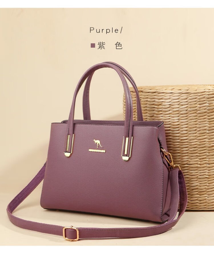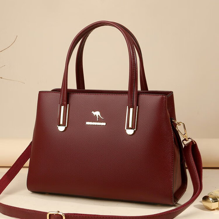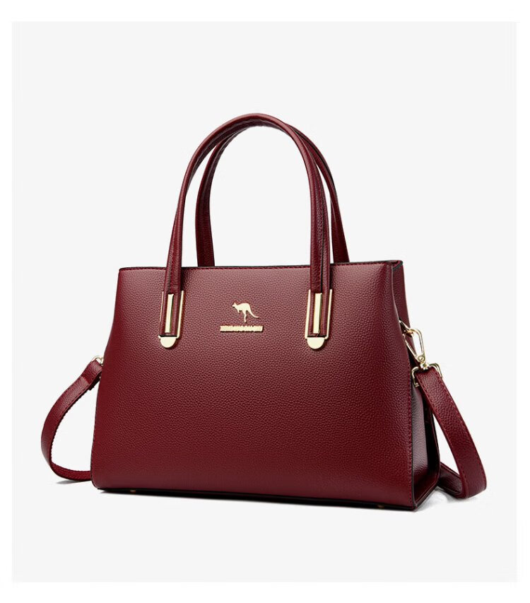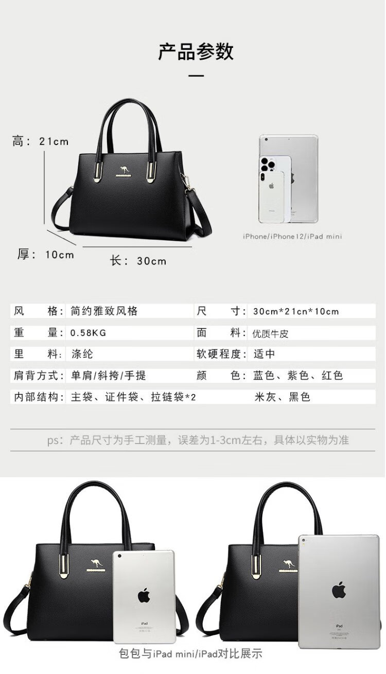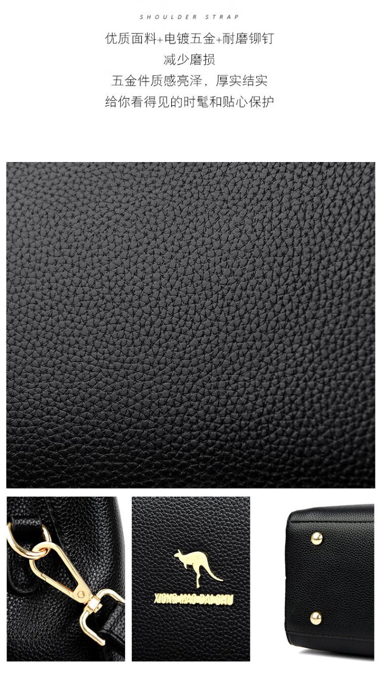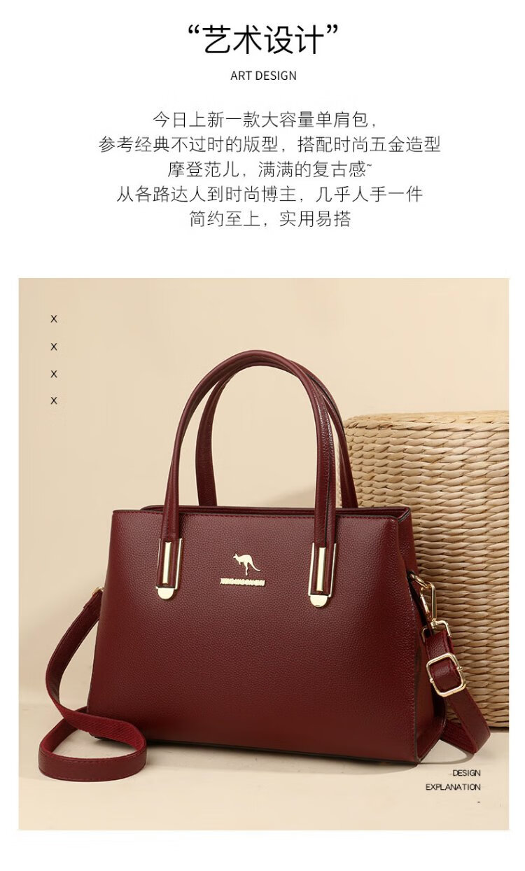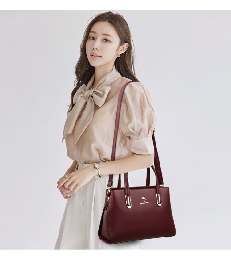 Kangaroo Kara genuine leather women's bag cowhide handbag crossbody bag large capacity gift for wife and mother middle-aged women's bag black gift box + hand bag
