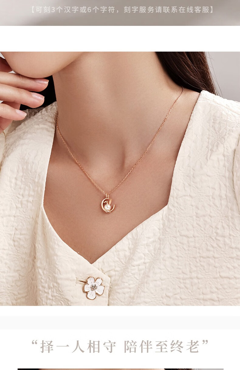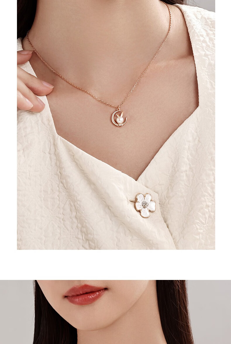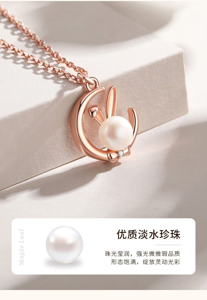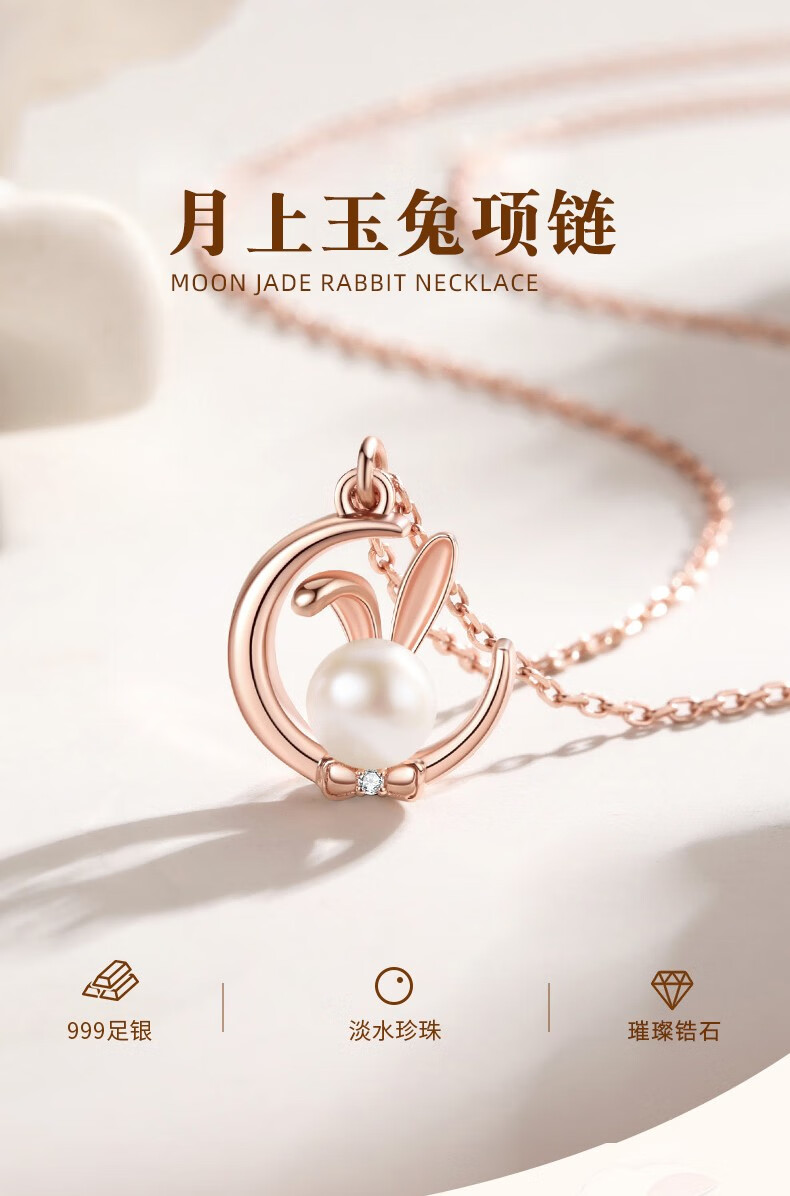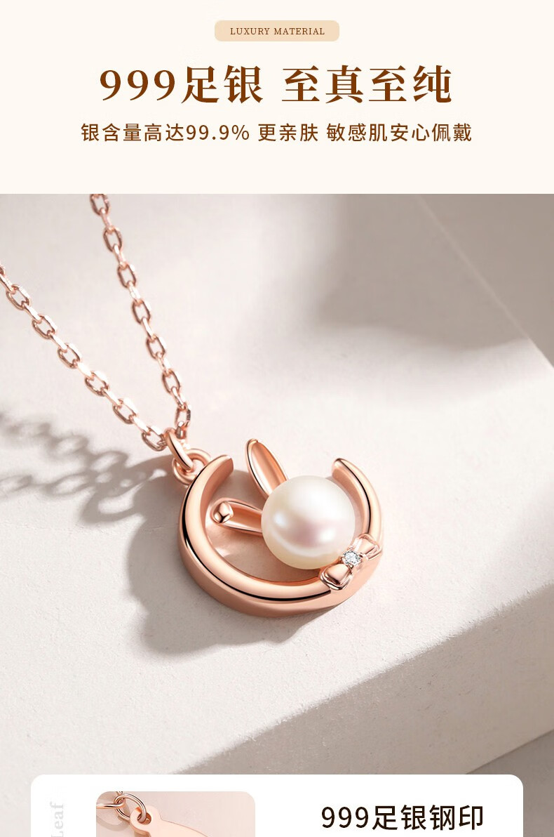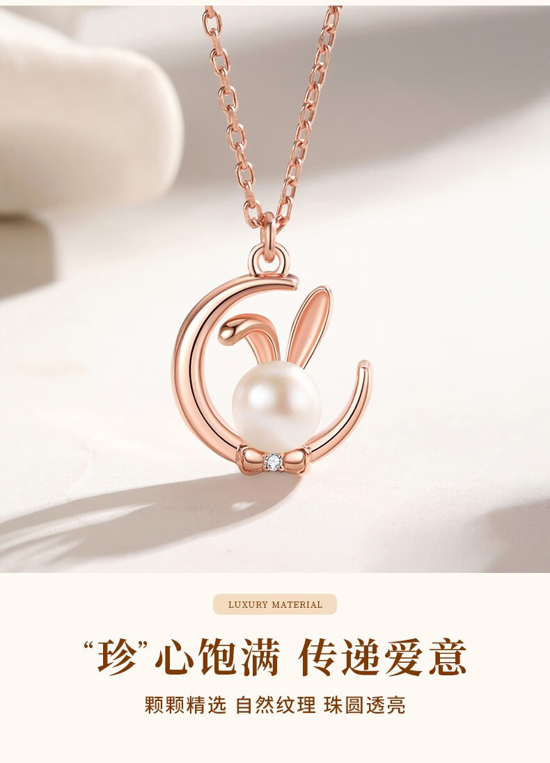 Vana Moon Rabbit Silver Pearl Necklace Female Pendant Birthday Gift for Girlfriend and Wife Moon Jade Rabbit Necklace丨Rose Exquisite Gift Box