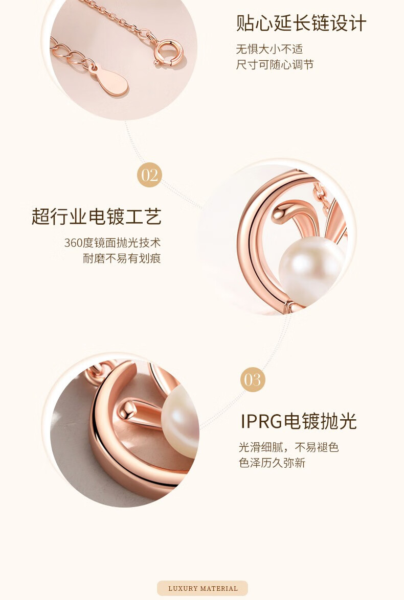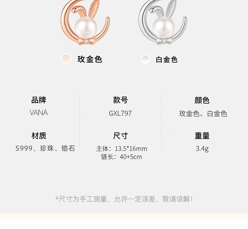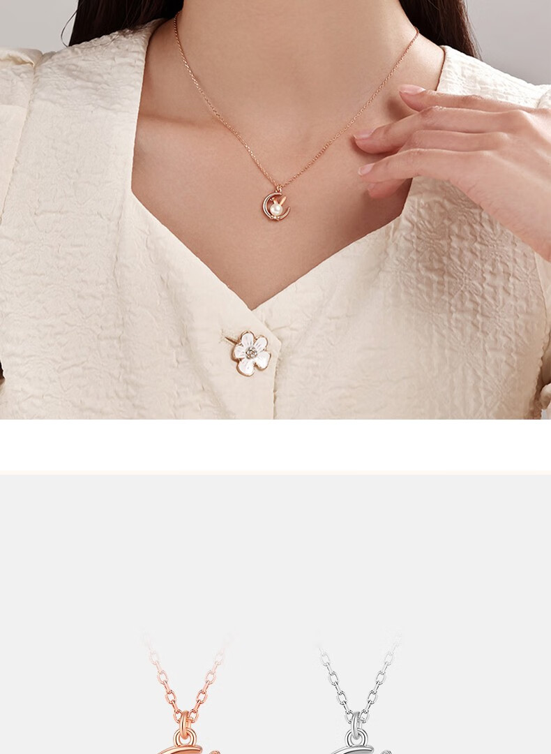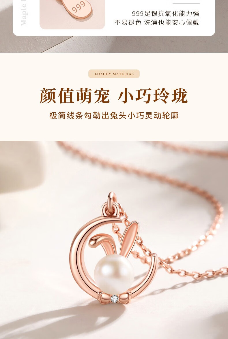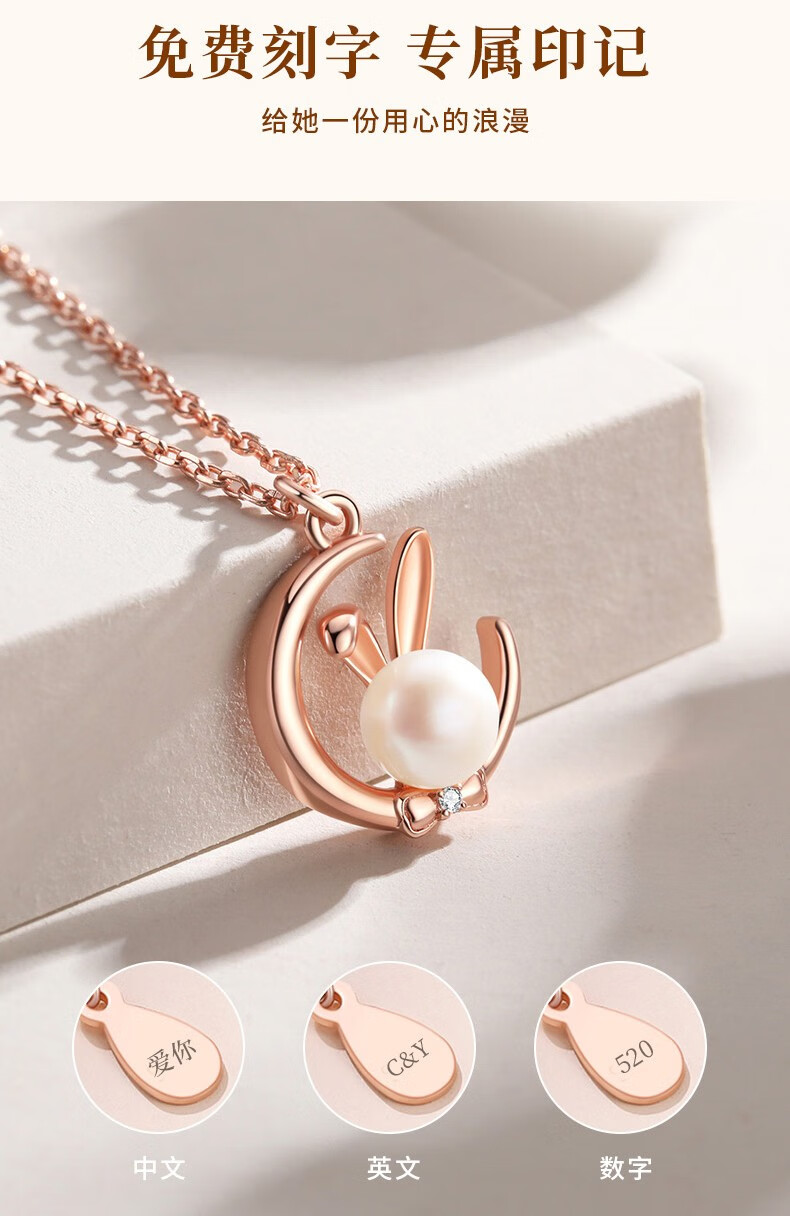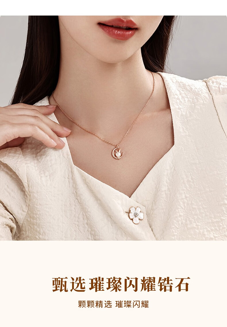 Vana Moon Rabbit Silver Pearl Necklace Female Pendant Birthday Gift for Girlfriend and Wife Moon Jade Rabbit Necklace丨Rose Exquisite Gift Box