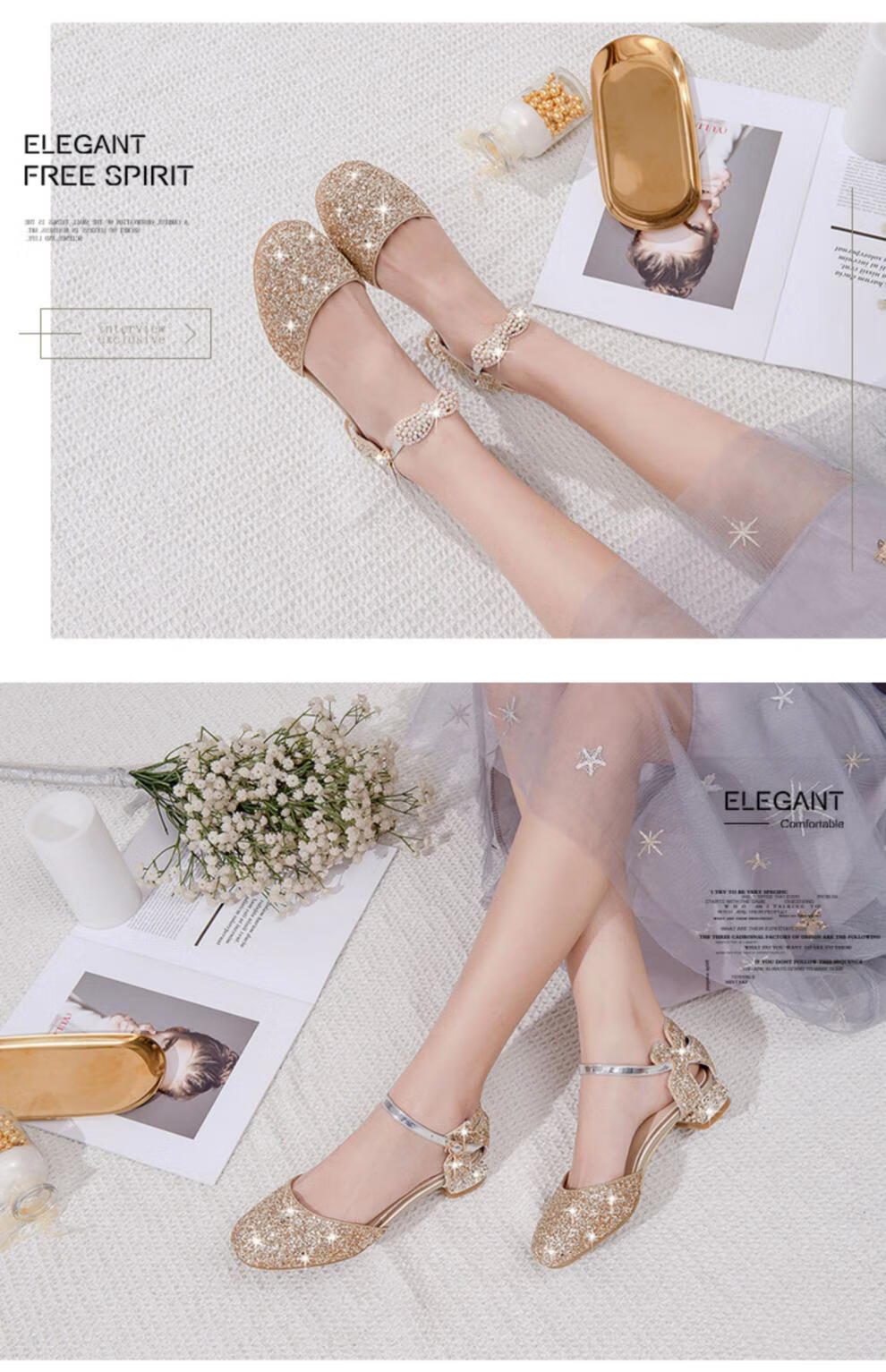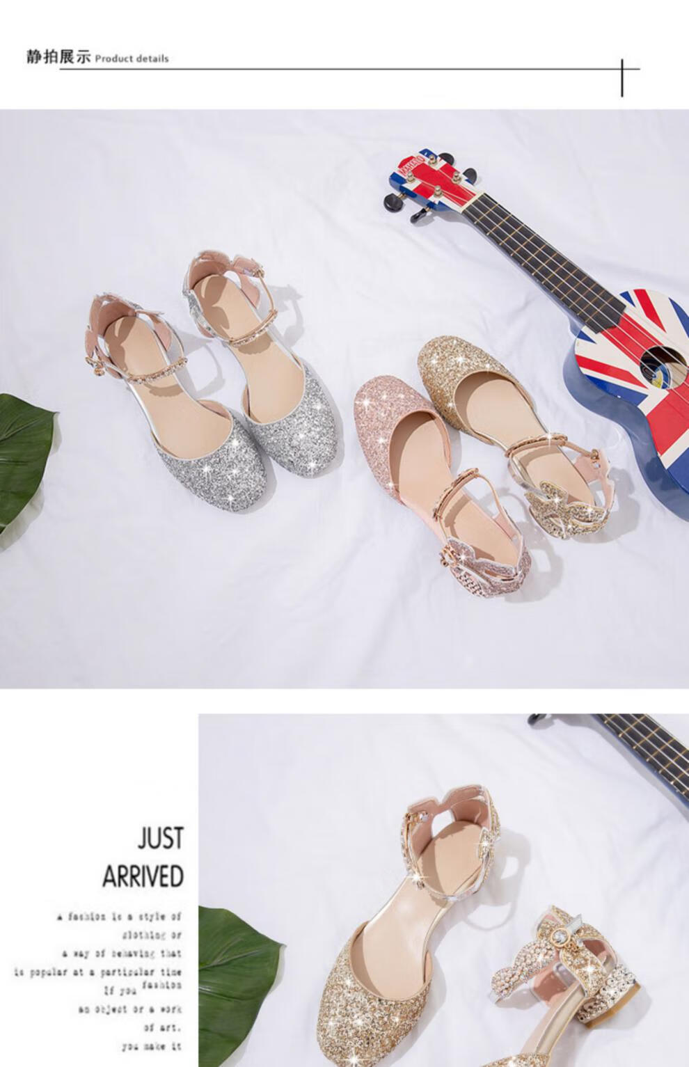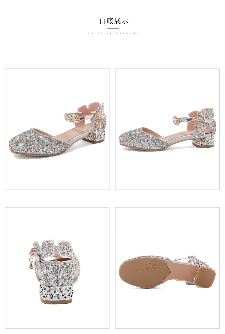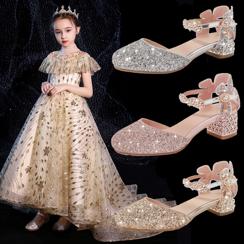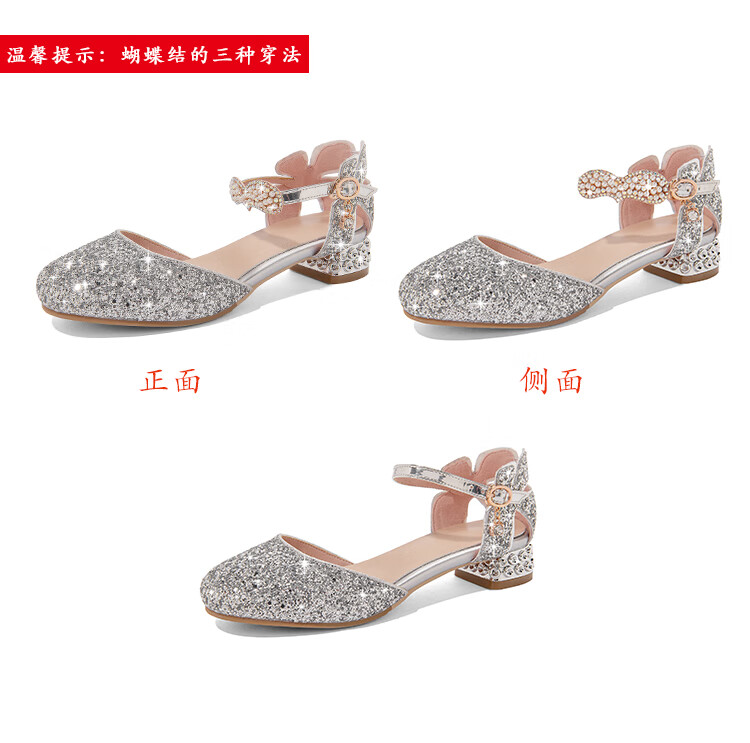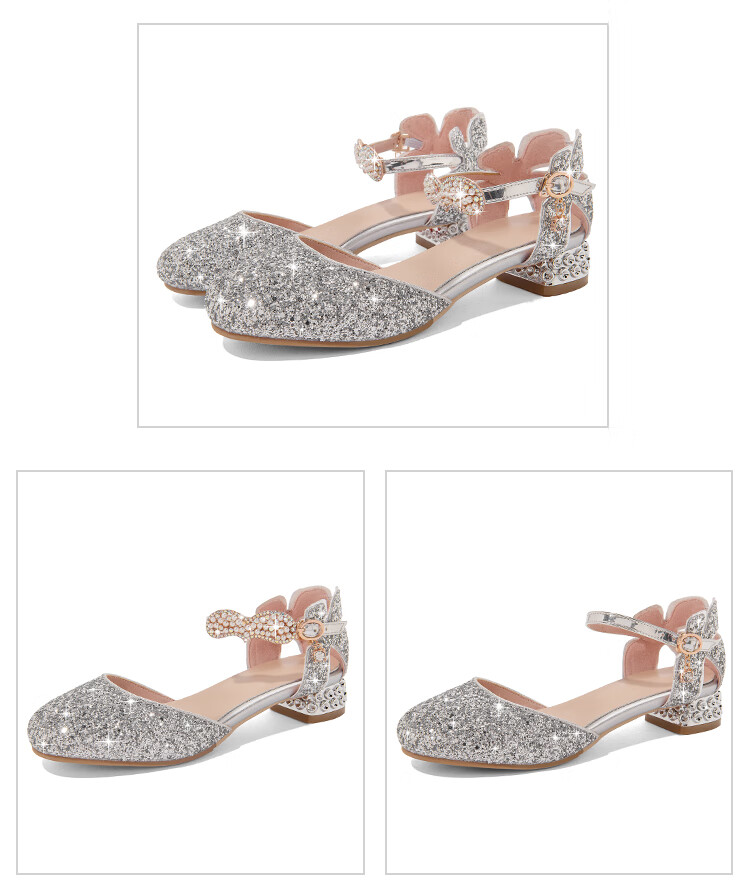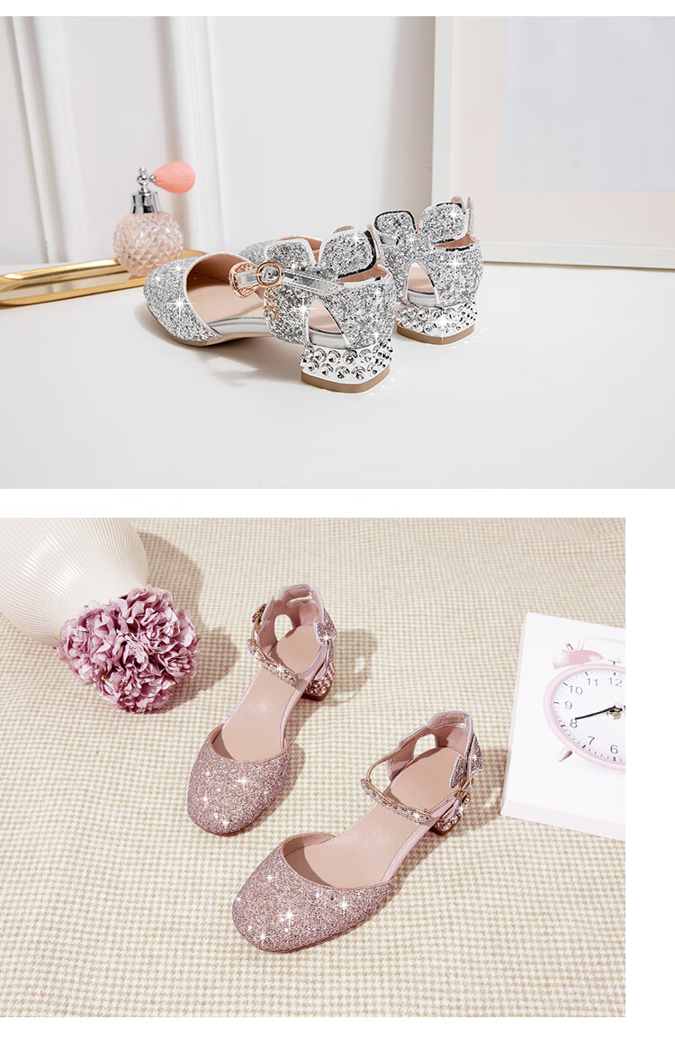 Bulianmao Children's High Heels Autumn Season Girls Princess Shoes New Style Crystal Baotou Dress Shoes for Middle and Large Children 3-12 Years Old Silver Heel Height 4.5cm 30 Inner Length 20CM