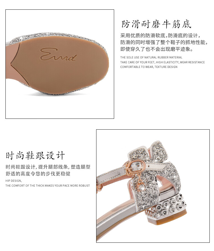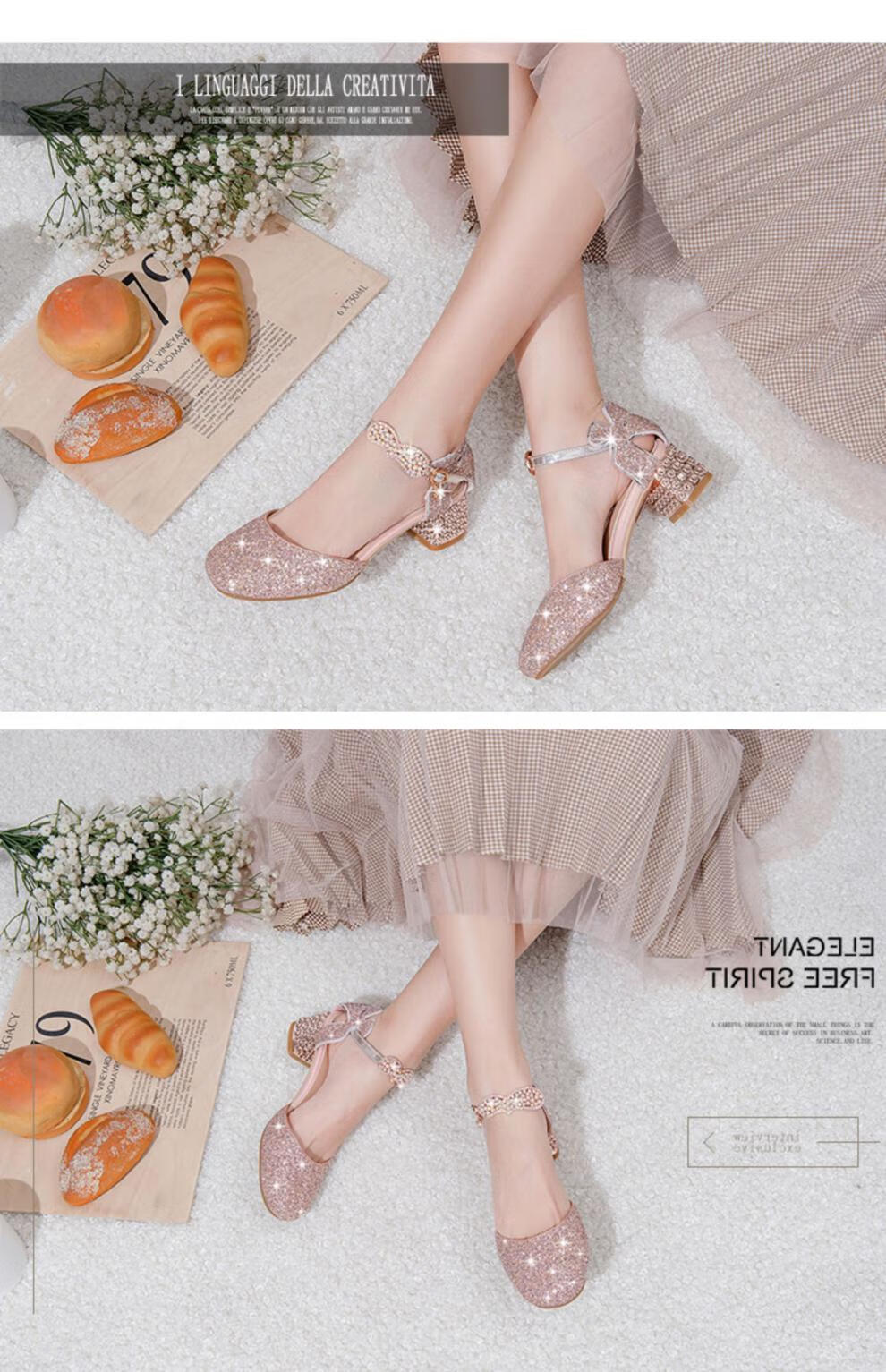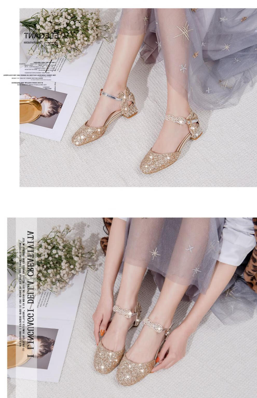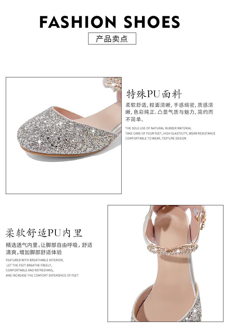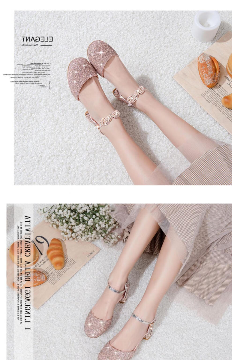 Bulianmao Children's High Heels Autumn Season Girls Princess Shoes New Style Crystal Baotou Dress Shoes for Middle and Large Children 3-12 Years Old Silver Heel Height 4.5cm 30 Inner Length 20CM