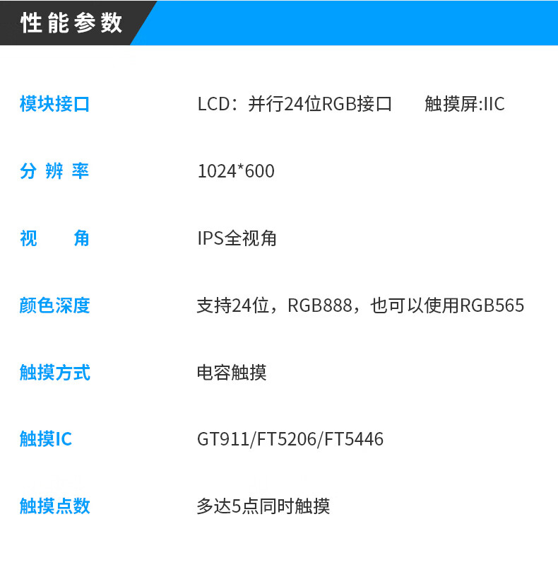 1024*600 RGB capacitive screen Punctual 7-inch RGB LCD module capacitive touch LCD color 7-inch RG screen (IPS version, 600*1024)