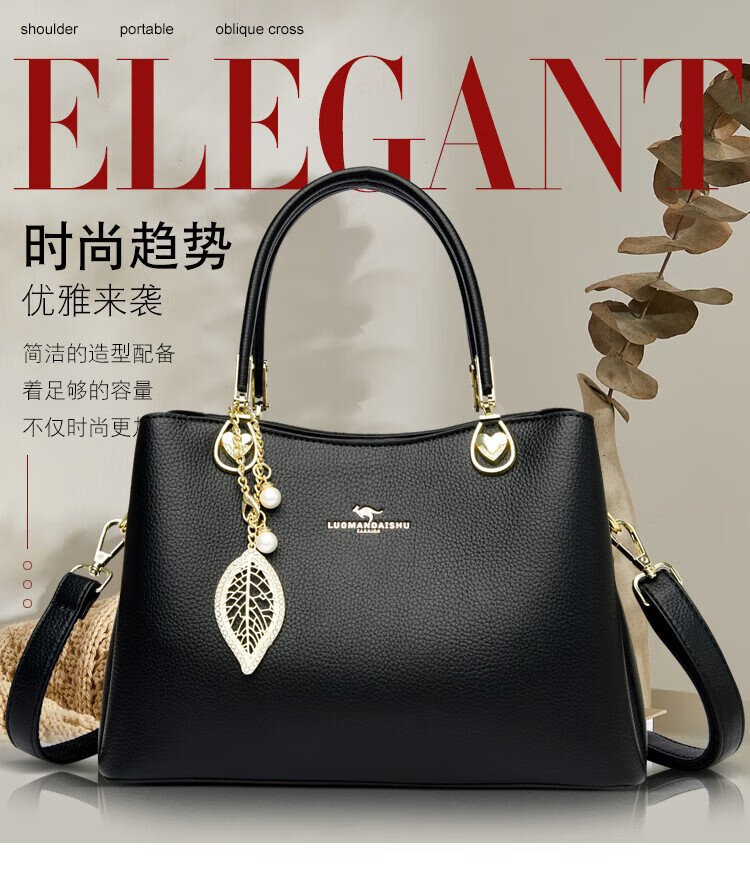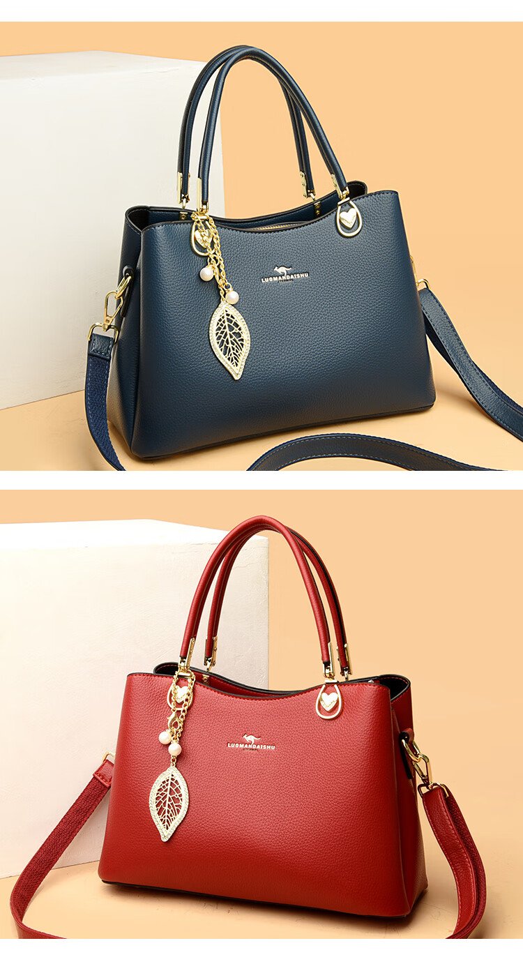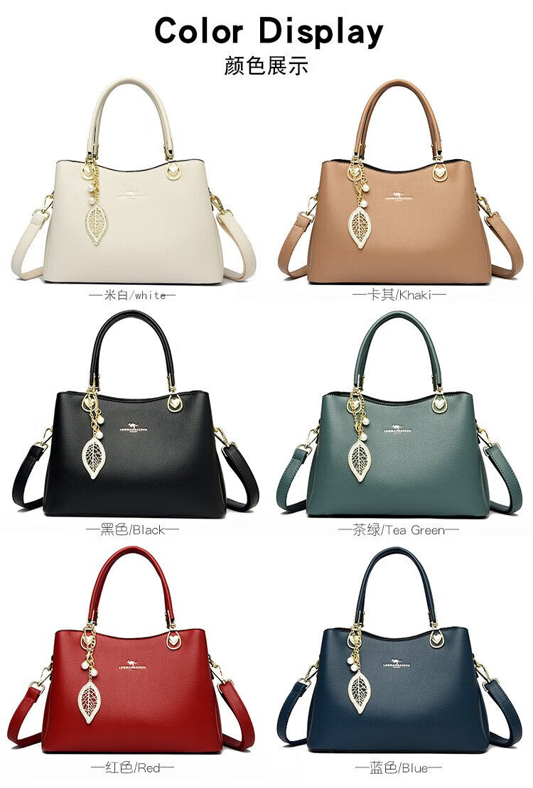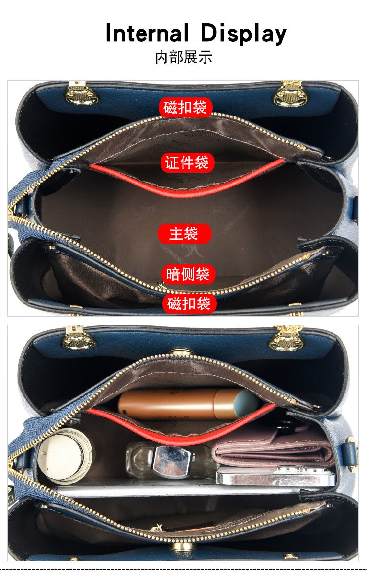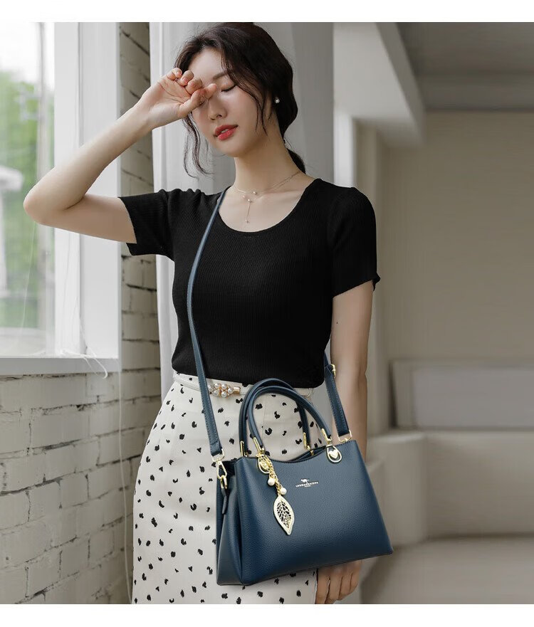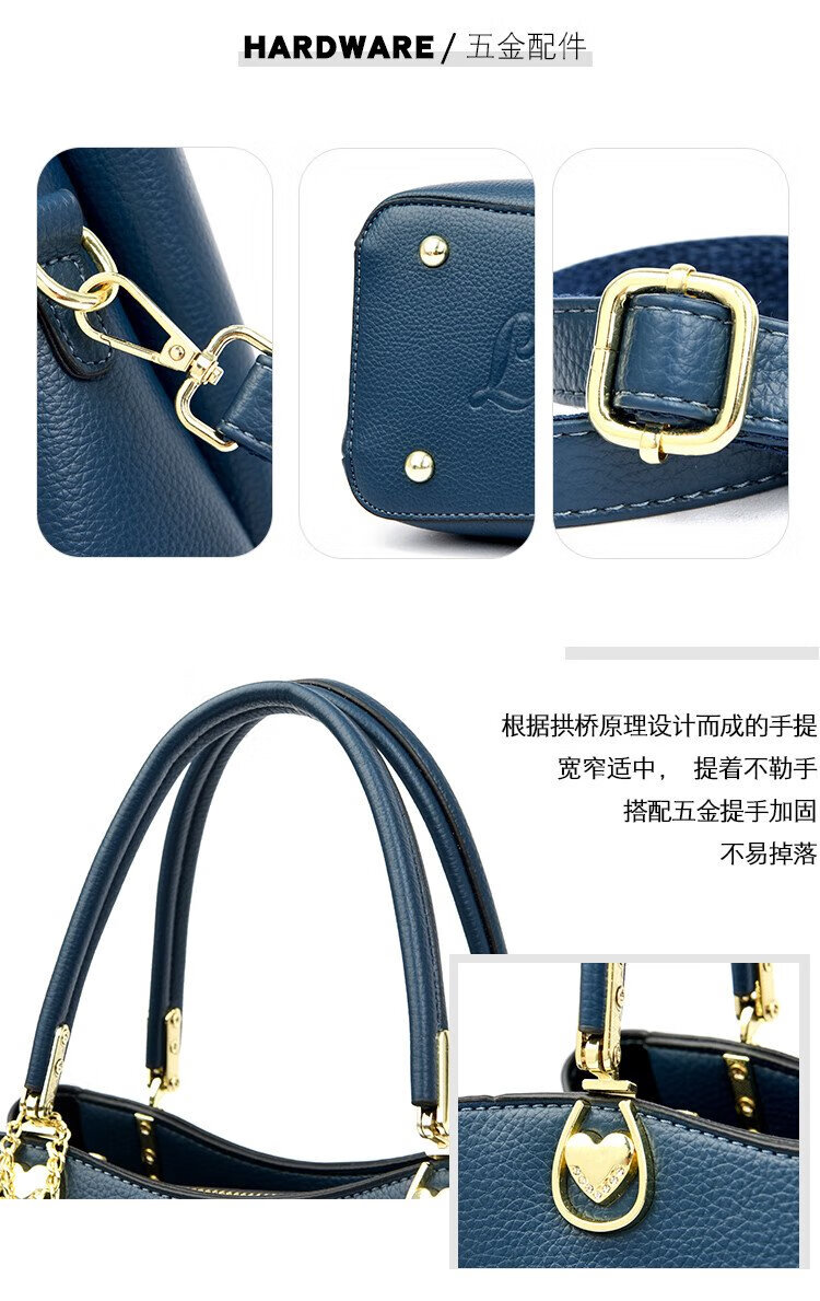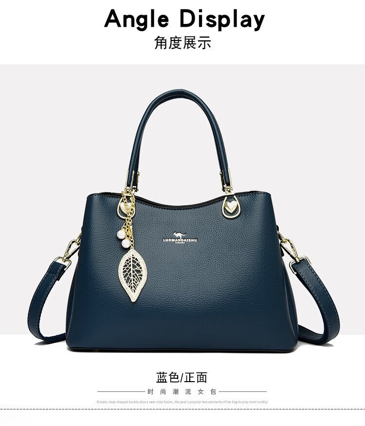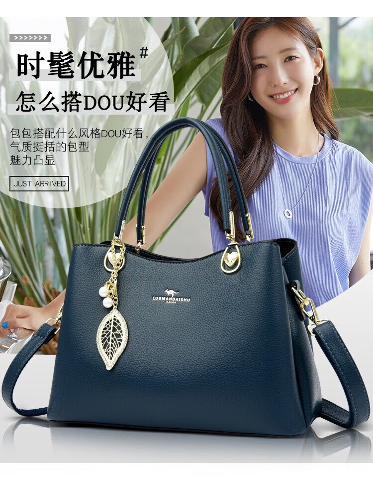 Kangaroo Kara brand genuine leather women's bag for holiday gift to mother cowhide bag for women 2025 new middle-aged ladies crossbody bag handbag dark blue (gift box + hand bag card bag pendant)