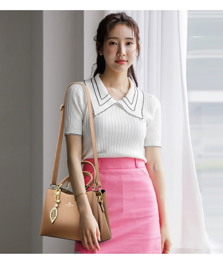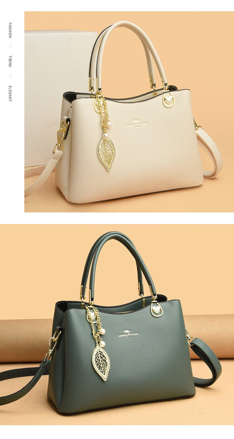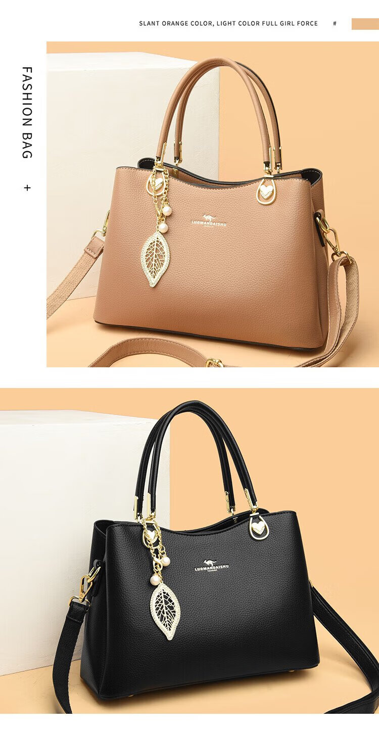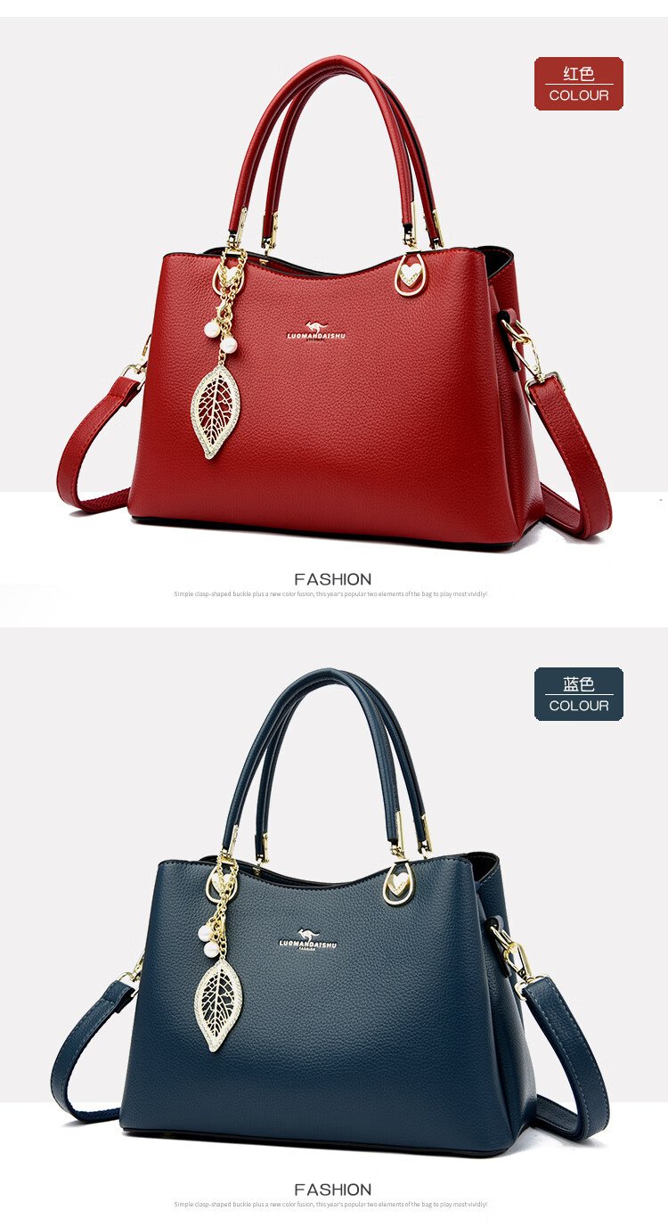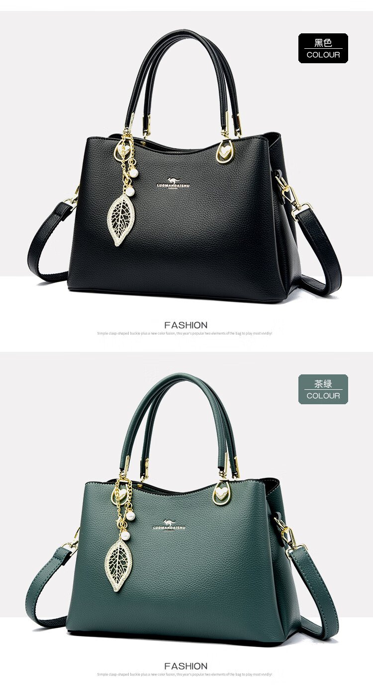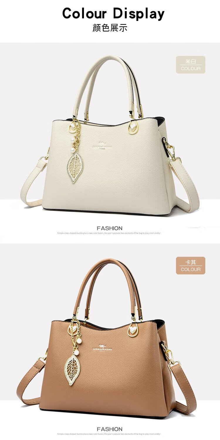 Kangaroo Kara brand genuine leather women's bag for holiday gift to mother cowhide bag for women 2025 new middle-aged ladies crossbody bag handbag dark blue (gift box + hand bag card bag pendant)