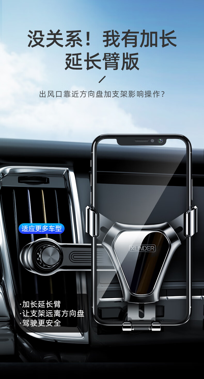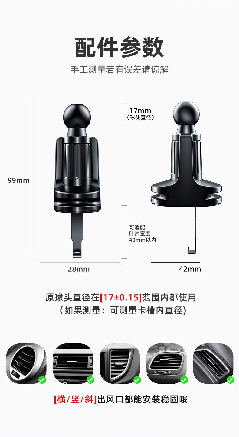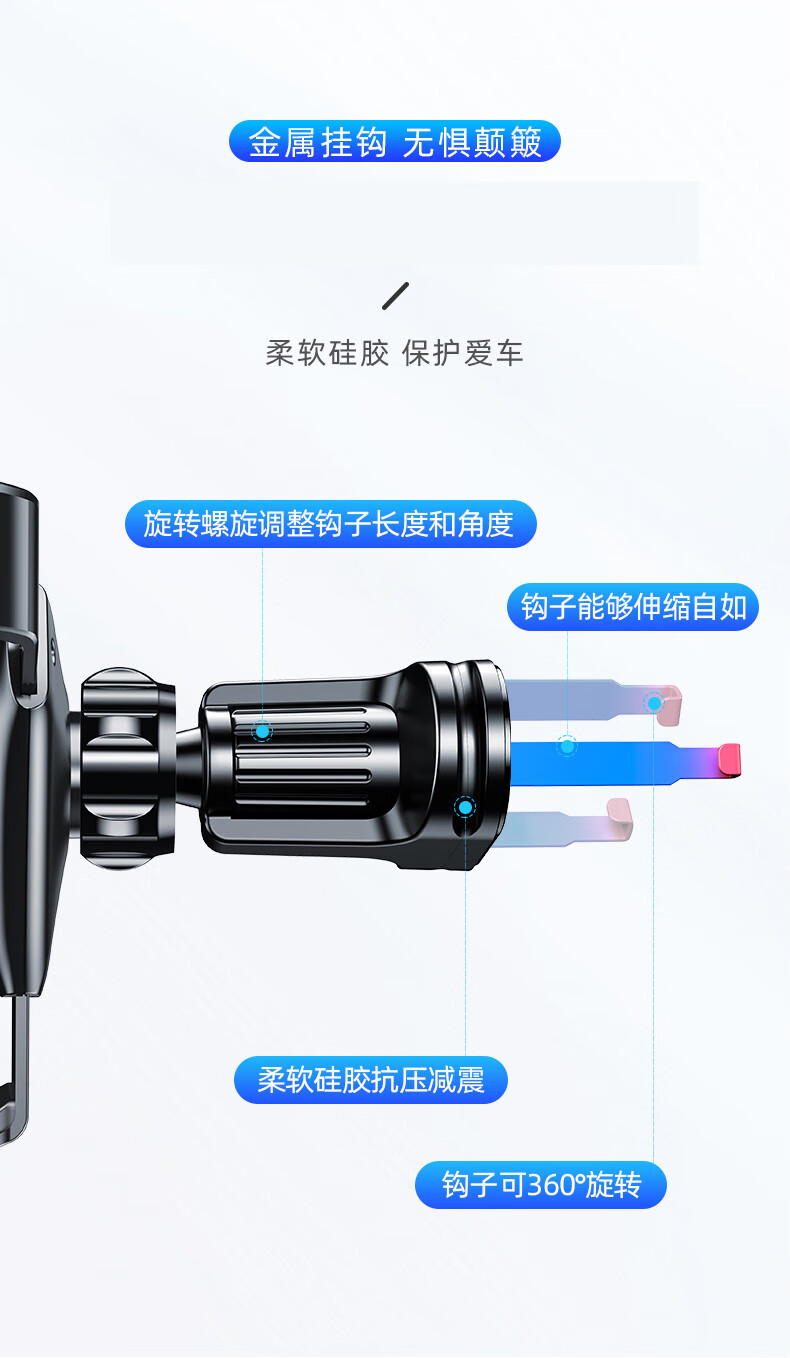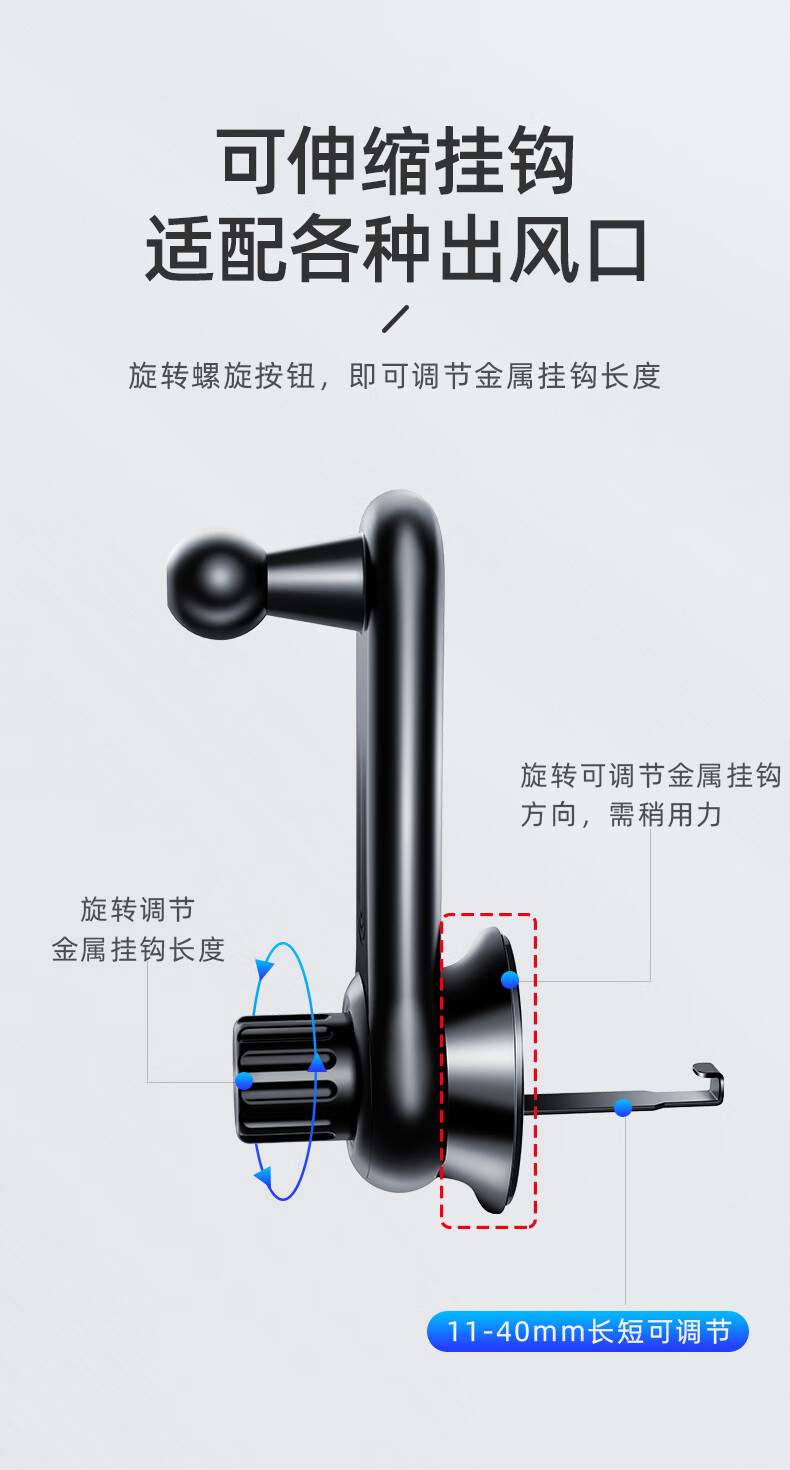 Suitable for car mobile phone holder air outlet buckle hook type accessories vertical hook clip car suitable for navigation support base base extension arm round/horizontal/vertical/oblique_-_air outlet without