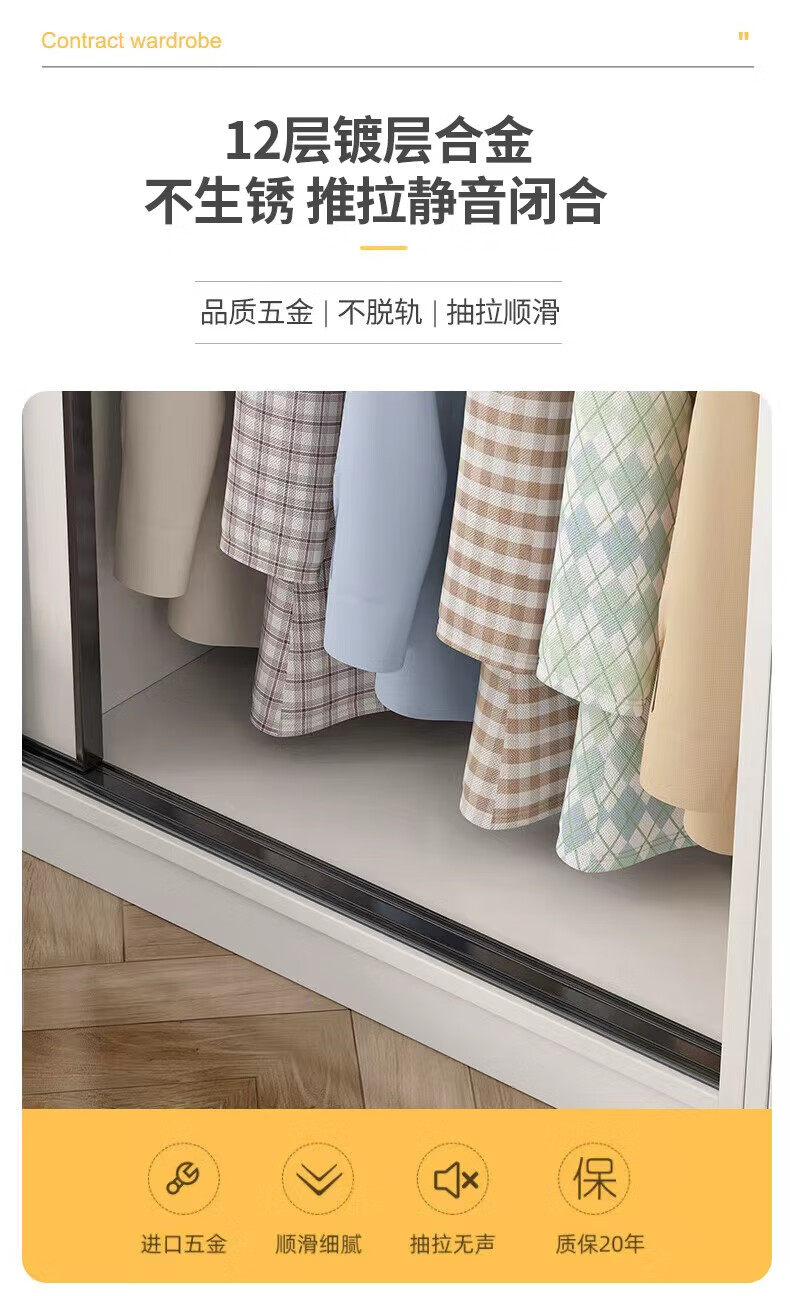 Bai Qian Free Installation Wardrobe Bedroom Storage Cabinet Sliding Door Wardrobe Simple Sliding Door Large Wardrobe Three Doors 1.8 Meter Main Cabinet + Top Cabinet + Side Cabinet