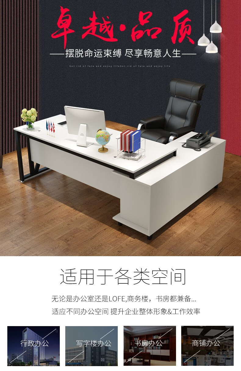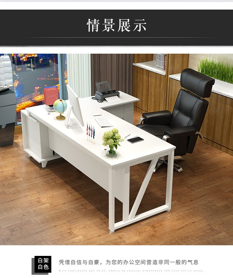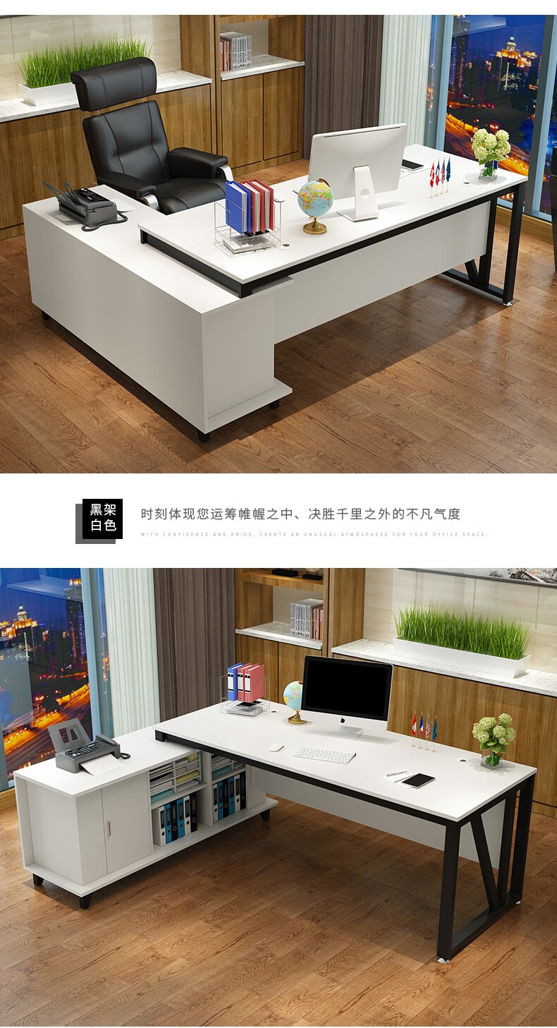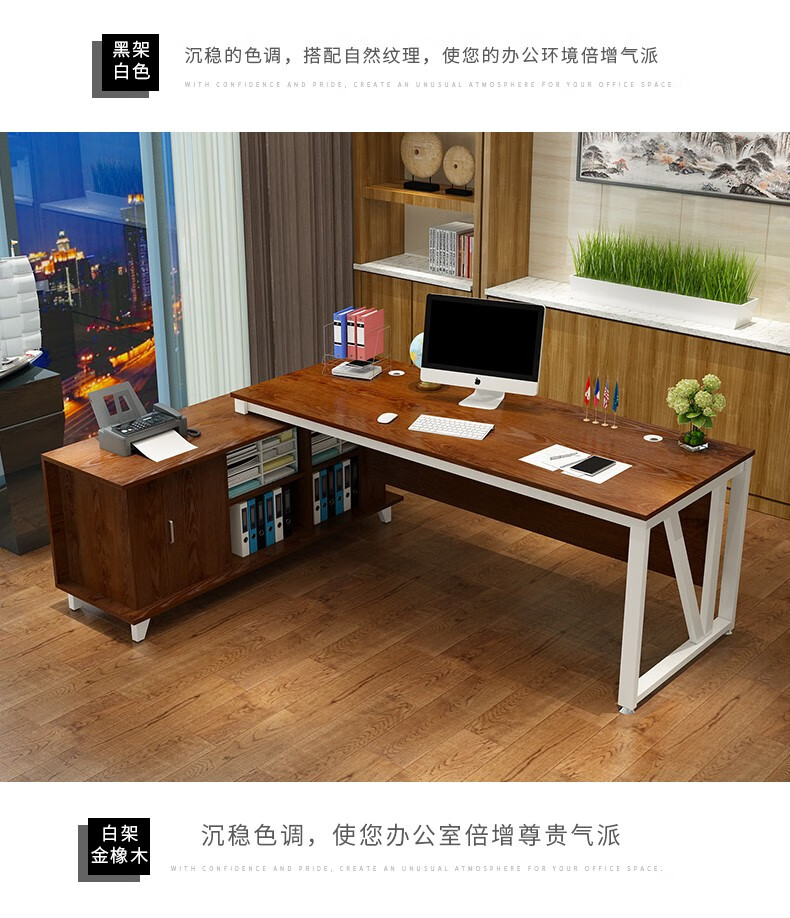 Zimulin boss desk office desk and chair combination president desk office computer desk executive desk modern simple home atmosphere 1.8 meters white frame + golden oak color with warm white
