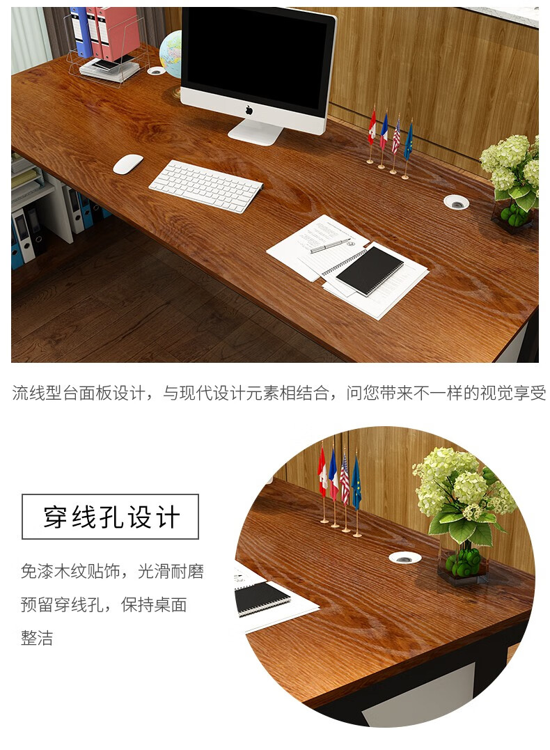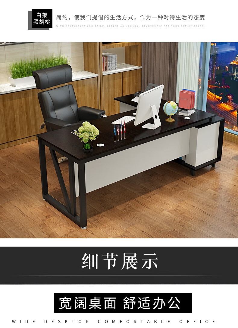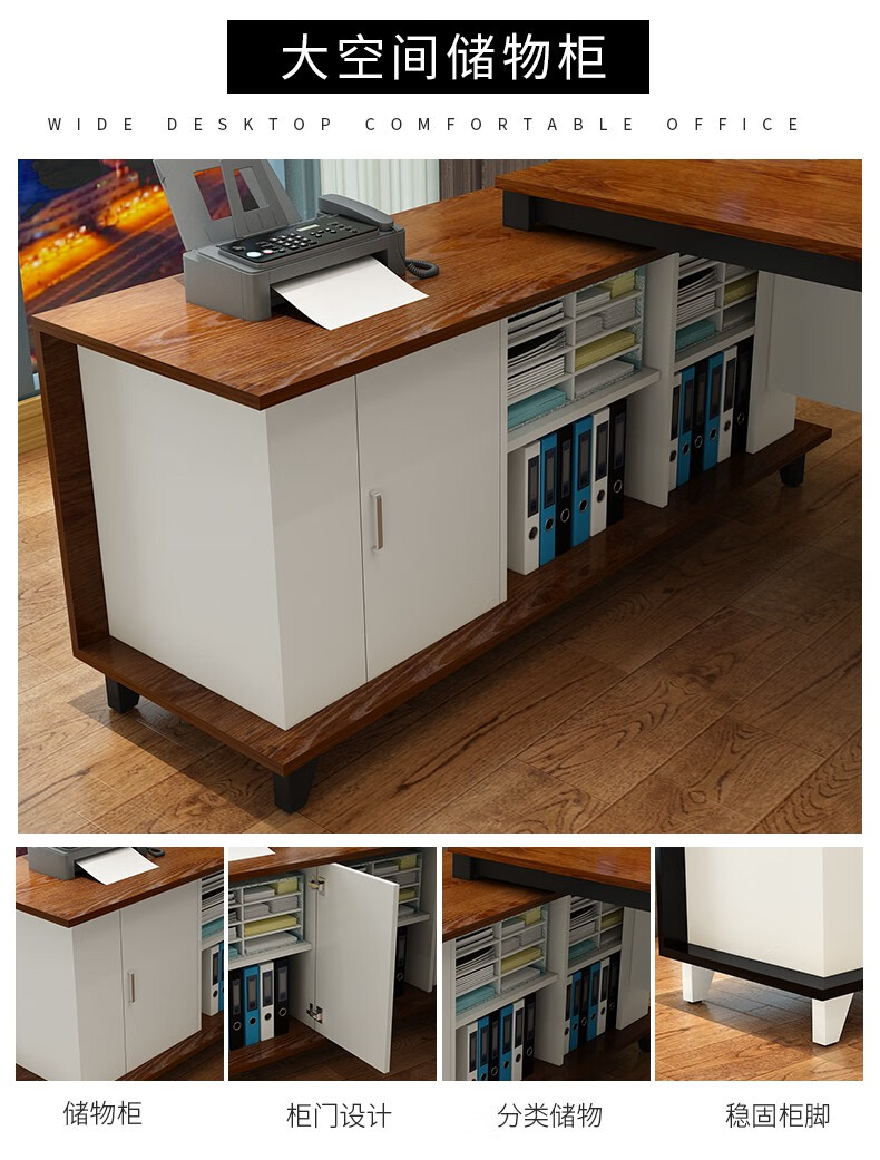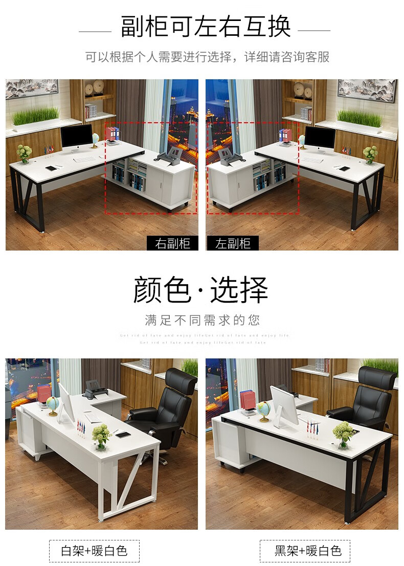 Zimulin boss desk office desk and chair combination president desk office computer desk executive desk modern simple home atmosphere 1.8 meters white frame + golden oak color with warm white