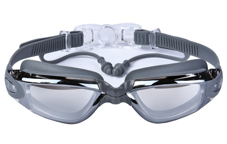 High-definition waterproof and anti-fog swimming goggles for men and women, adult goggles, swimming caps and earplugs set, new black set (swimming goggles, swimming caps, nose clip earplugs)