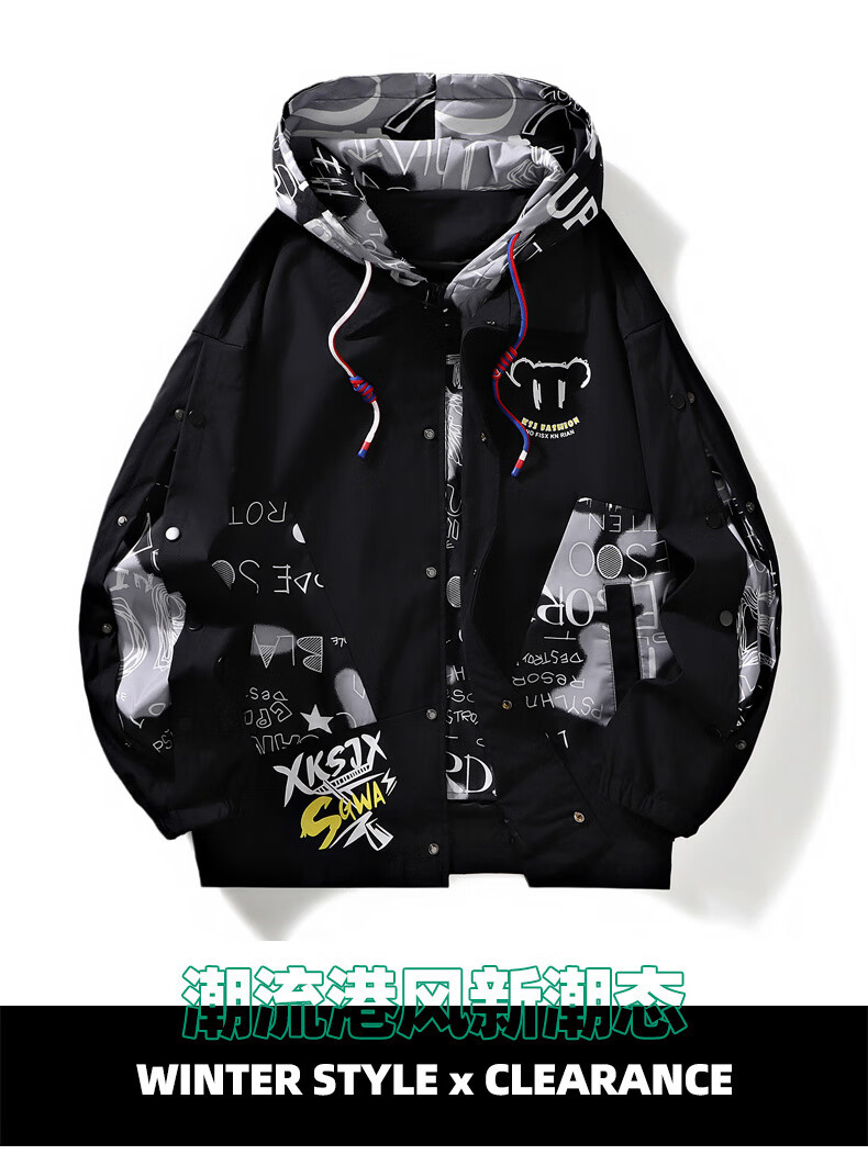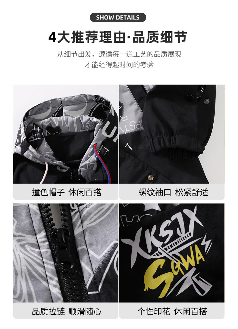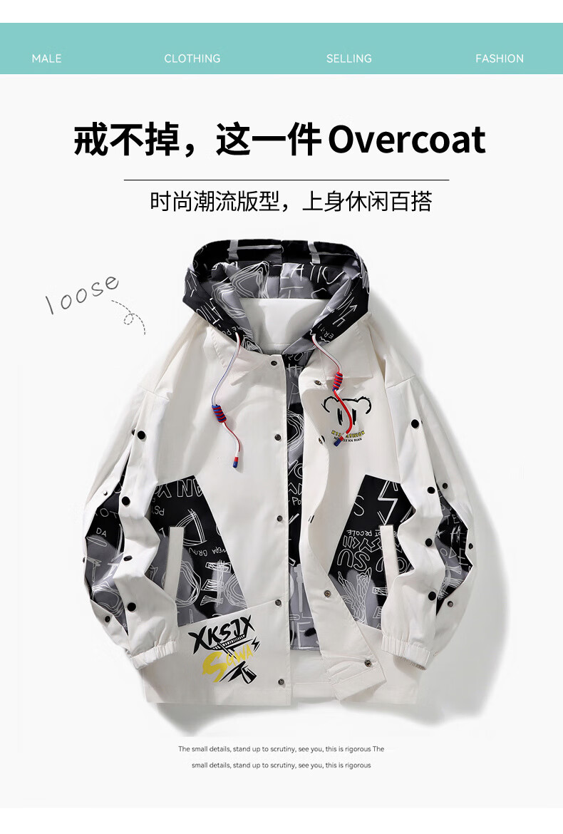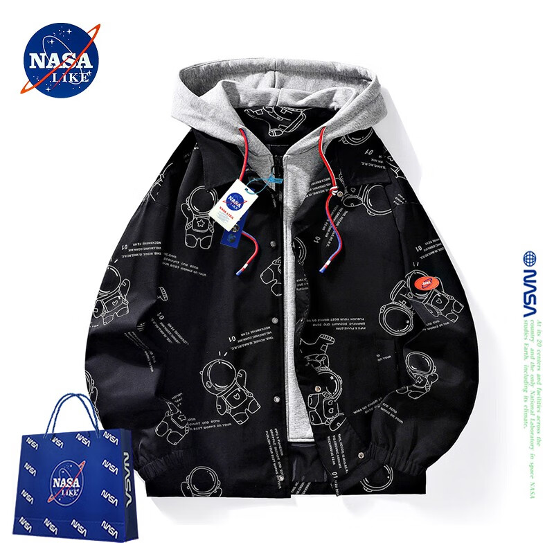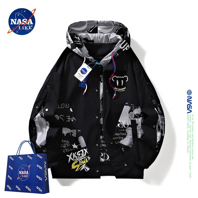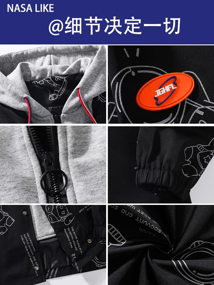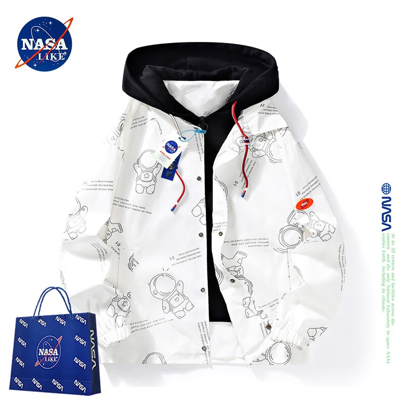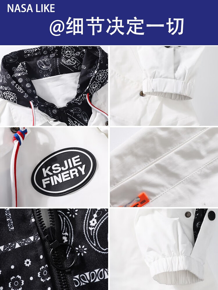 NASALIKE official jacket men's autumn and winter vacation two-piece hooded jacket men's casual baseball uniform loose workwear assault top white XL (recommended 120-140Jin Jin equals 0.5 kg)
