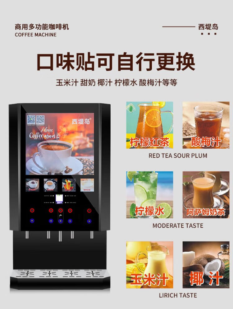 Ile de la Cité commercial beverage machine instant coffee machine fully automatic coffee milk tea all-in-one machine office convenience store scan code touch screen control cafeteria hot and cold juice machine hot drink soy milk (electronic refrigeration) 5 cold 5 hot models - turbine model vertical