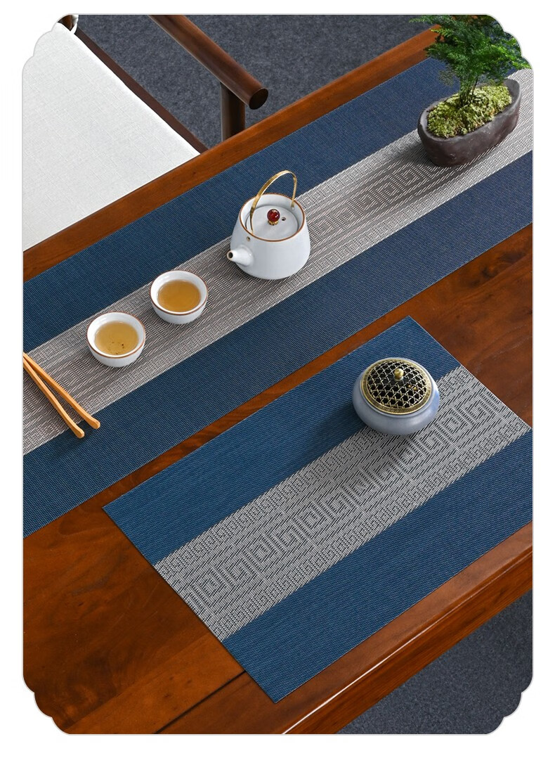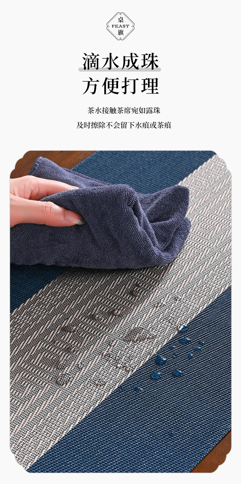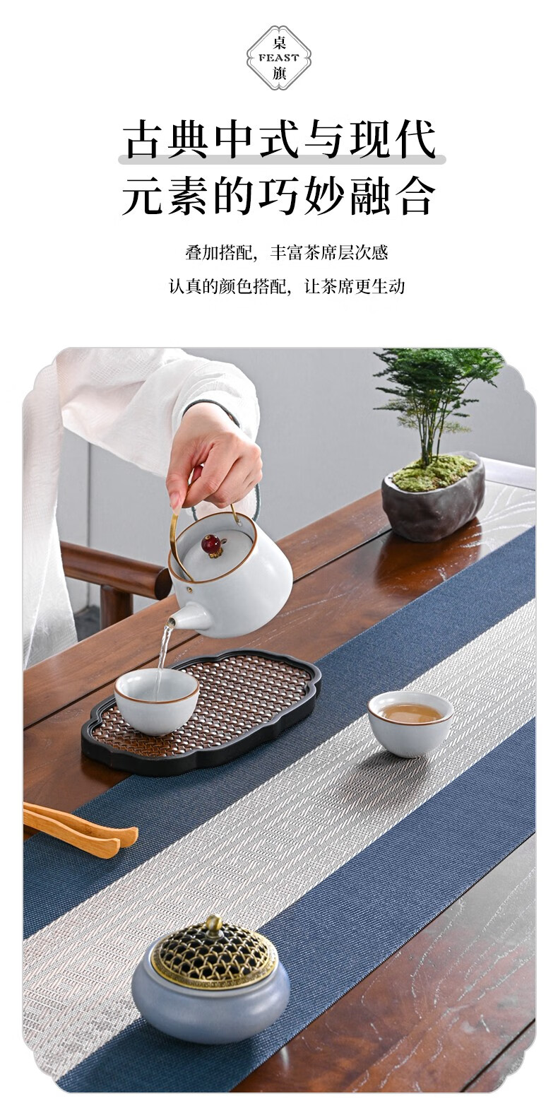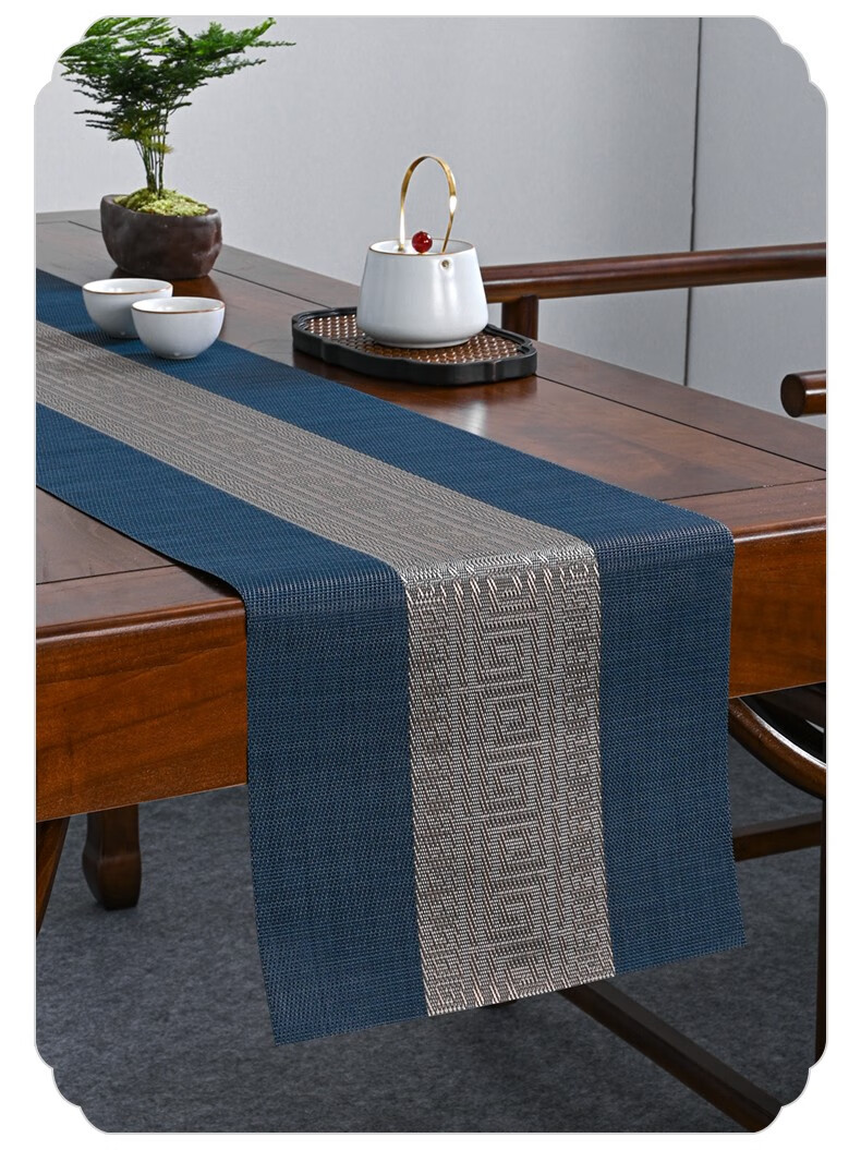 Baipinliang Tea Seat New Chinese Tea Table Mat Tea Table Flag Chinese Style Coffee Table Table Cloth Waterproof Zen Tea Mat High-End Blue 30*240cm Table Length 1.7m-2.0m