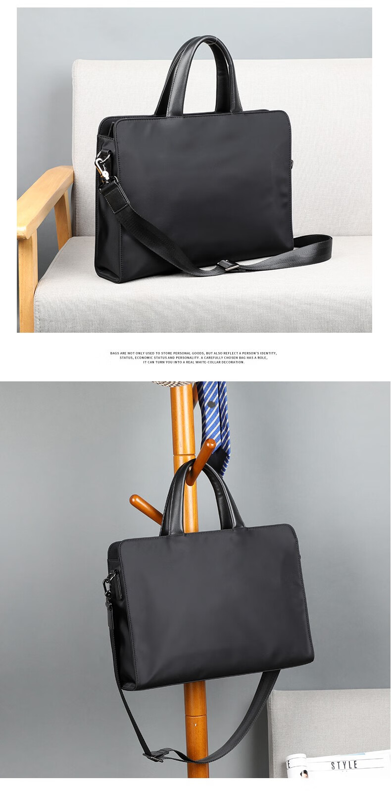 MuLin.Ks Men's Handbag Business Briefcase Men's Canvas Casual Computer Bag Crossbody Document Bag Large Capacity Briefcase Black - Trolley Case Straps on the Back