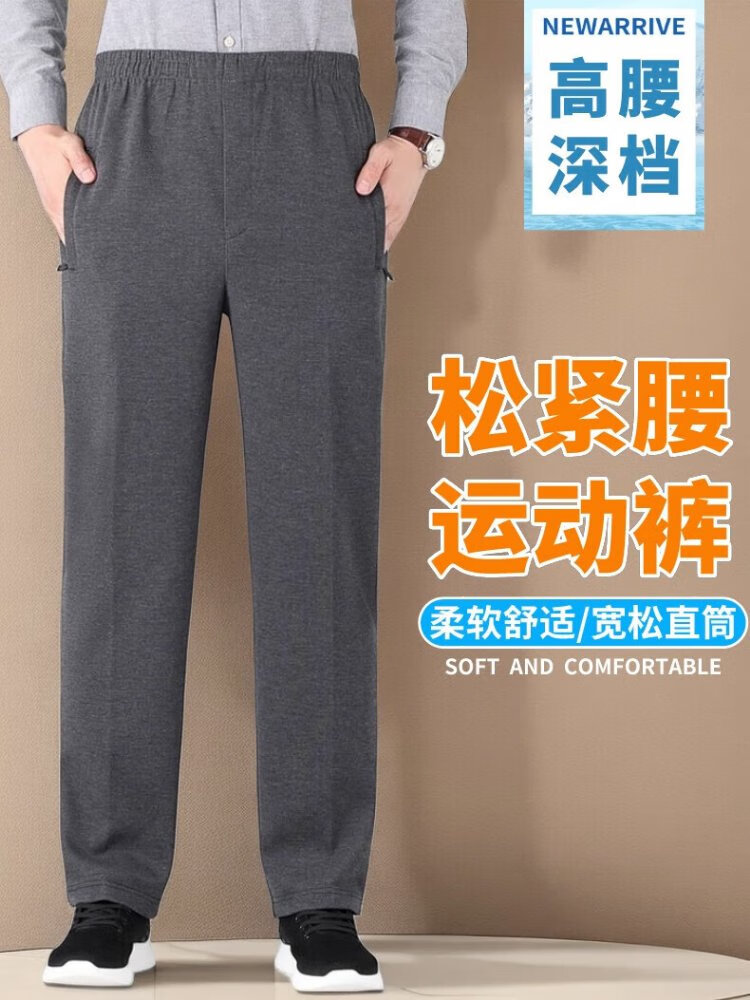 Classic car sports casual pants for men in autumn and winter, middle-aged and elderly loose tight straight pants, spring dad plus fleece pants, dark gray autumn version, 3XL, weight 145-160Jin Jin is equal to 0.5 kg