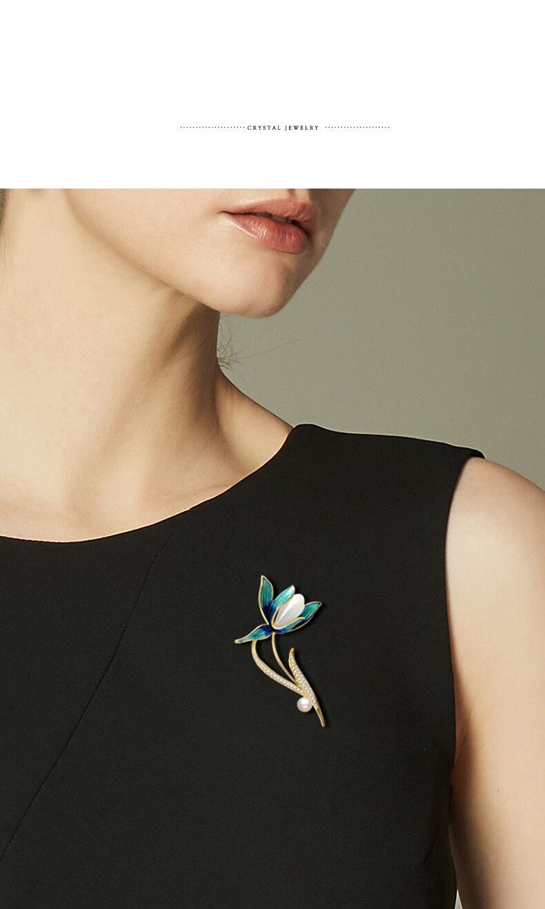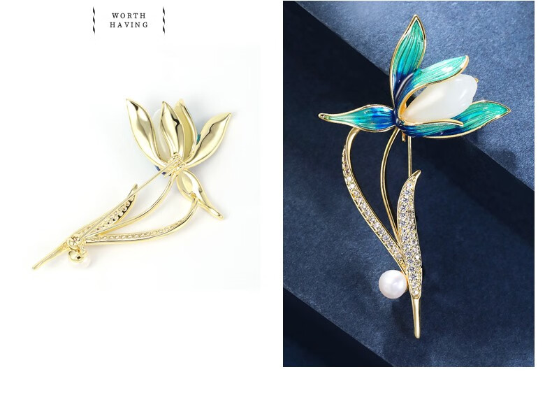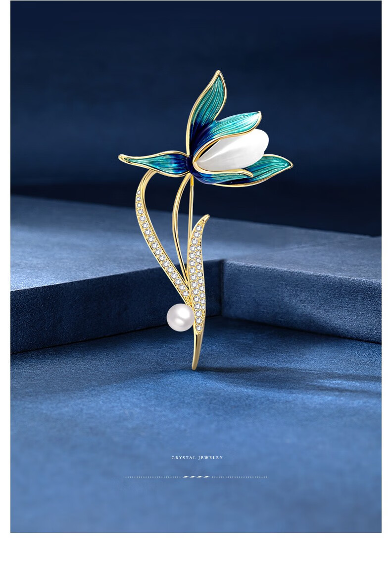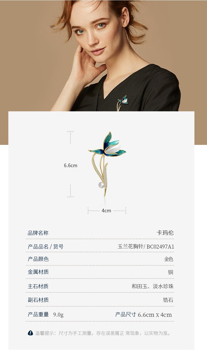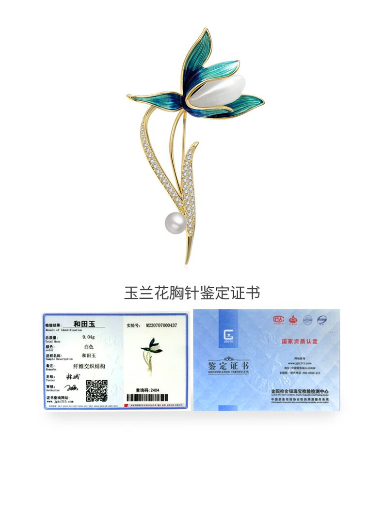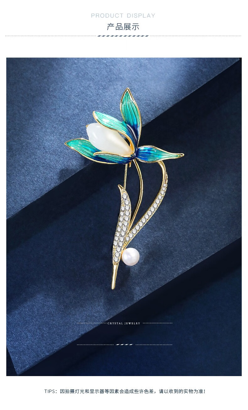 Camalon brand brooch, high-end women's light luxury Hetian jade accessories, anti-exposure temperament pin buckle, fashionable and simple corsage, magnolia flower brooch + brand gift box