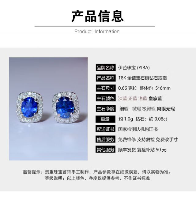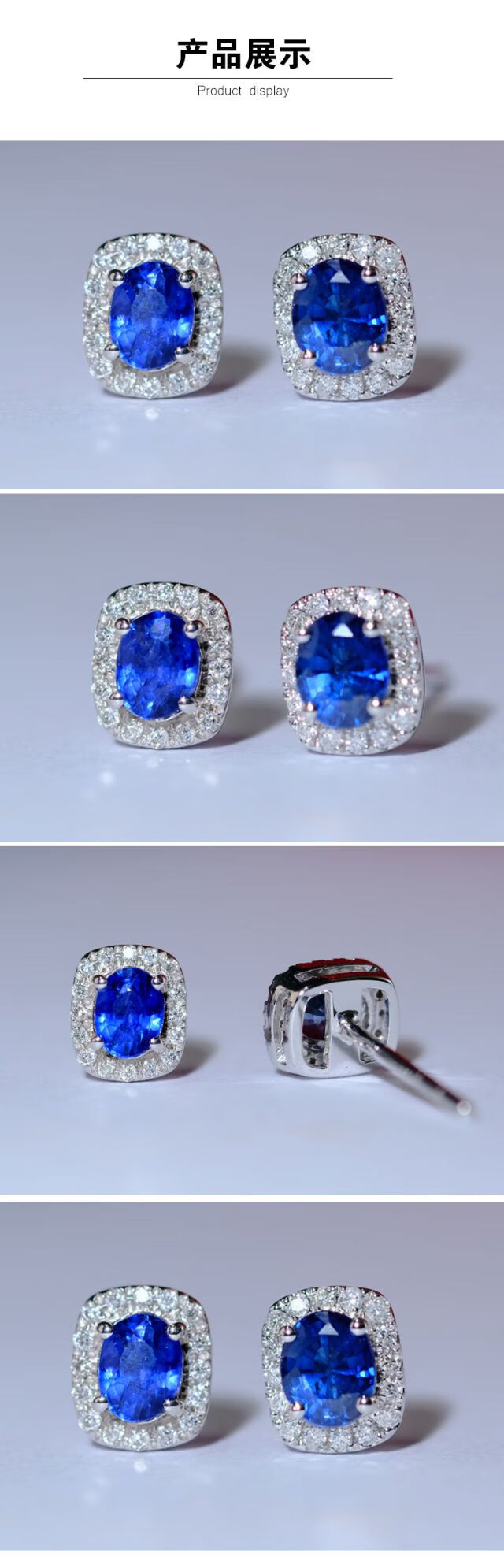 Iba 0.66 carat royal blue sapphire earrings 18K gold set with diamond colored gemstones as a birthday gift for girlfriend 0.6 carat ready stock
