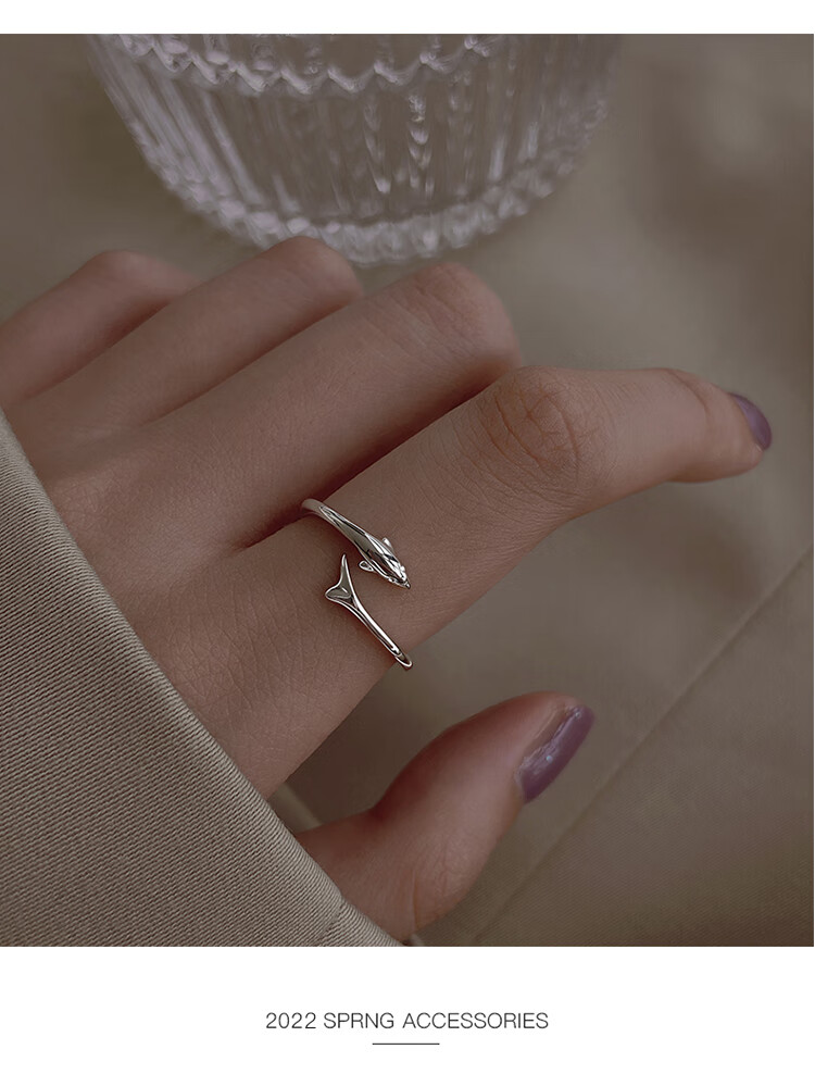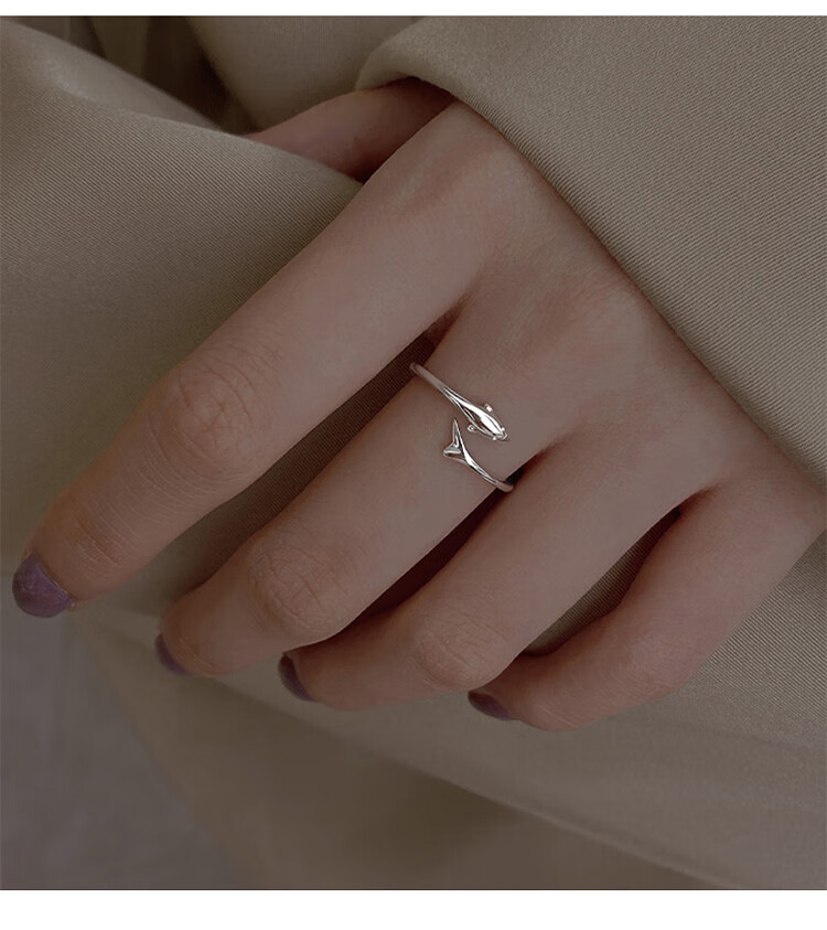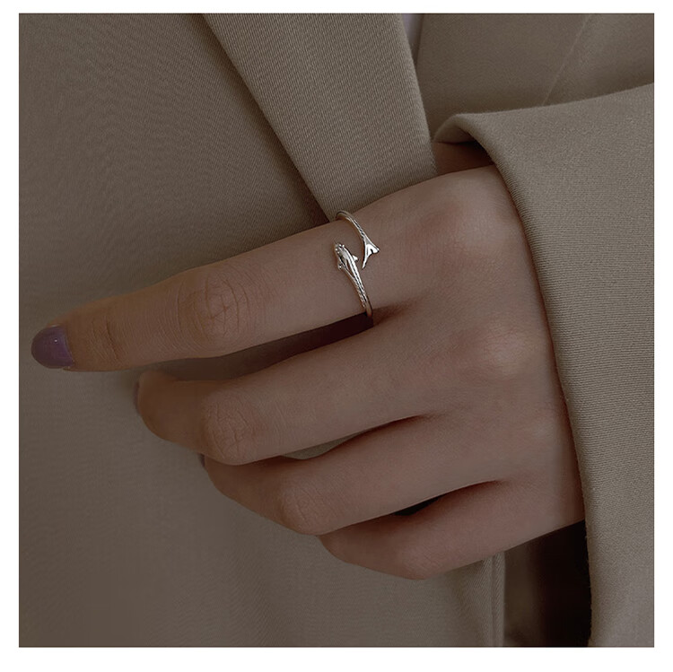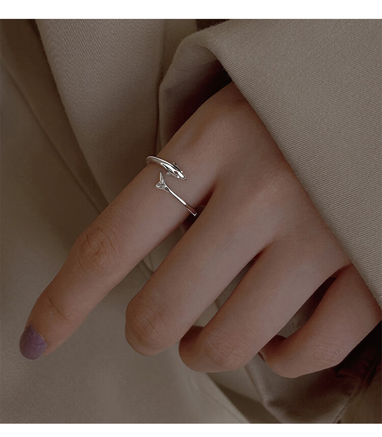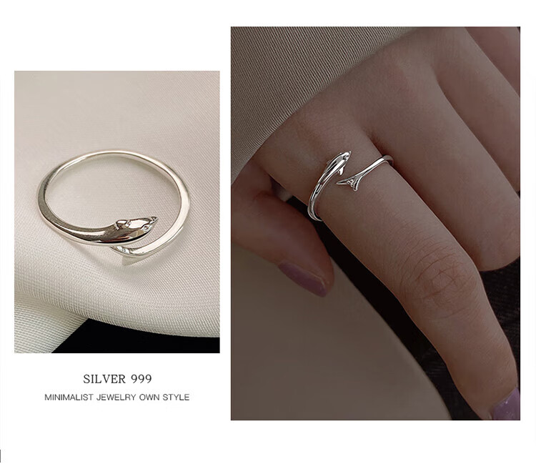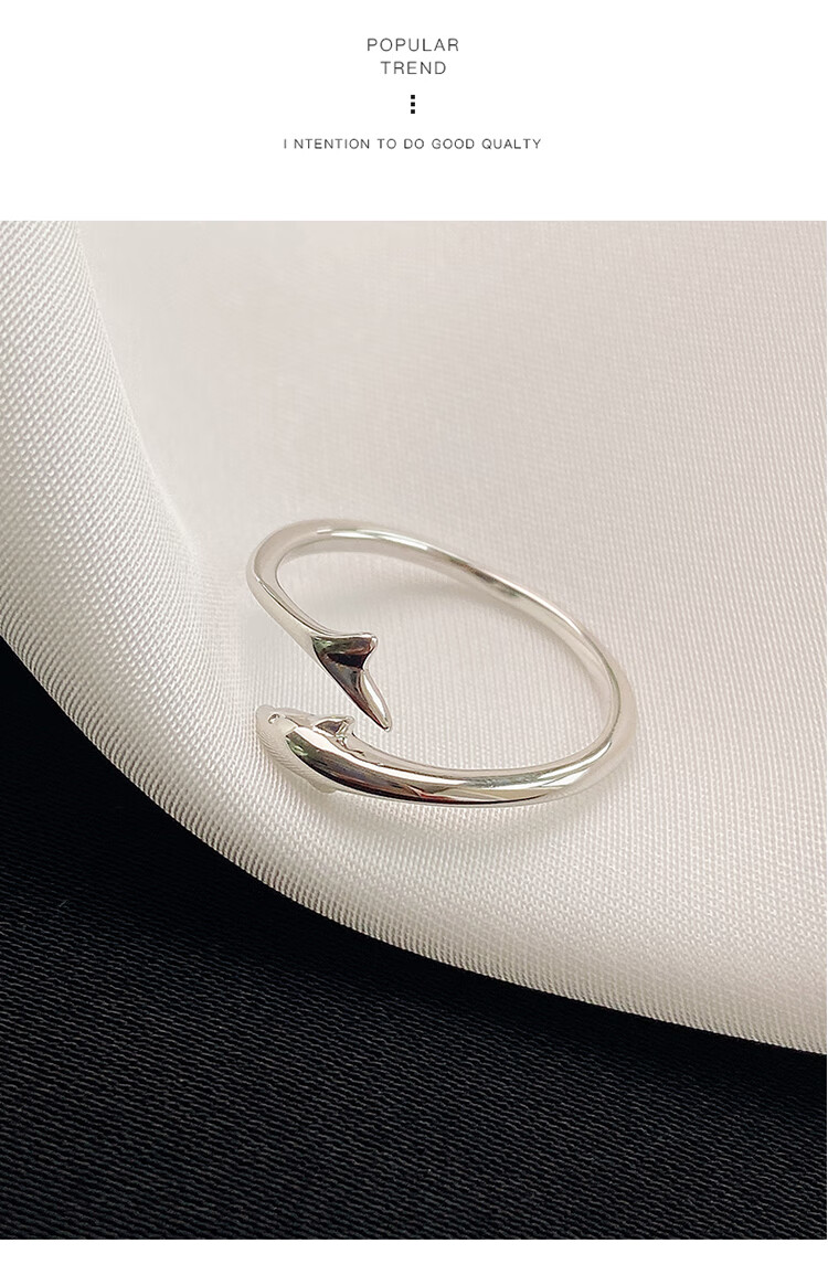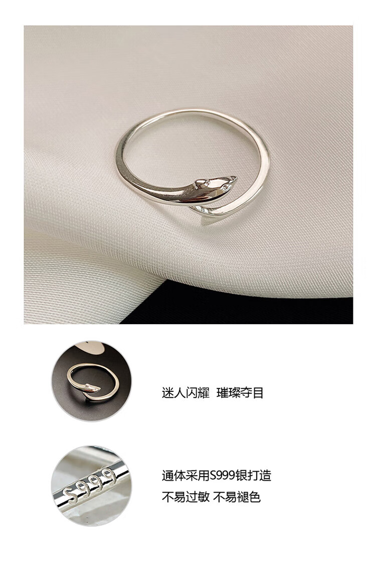 Lnieer999 Pure Silver Dolphin Silver Ring Women's Fishtail Index Finger Ring Open Ring Ring as a Jewelry Gift for Girlfriend and Best Friend S999 Silver Dolphin Ring Gift Box + Gift Bag