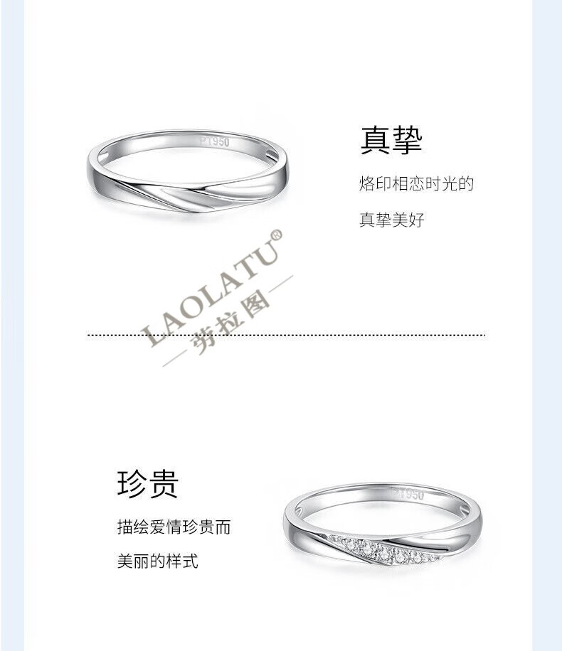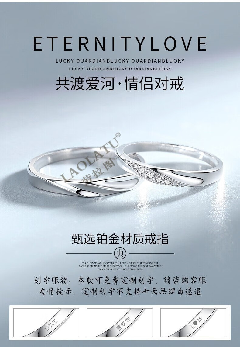 LAOLATU couple ring for women gold diamond PT950 platinum confession commemorative birthday gift for girlfriend and wife light luxury white-zirconia free engraving