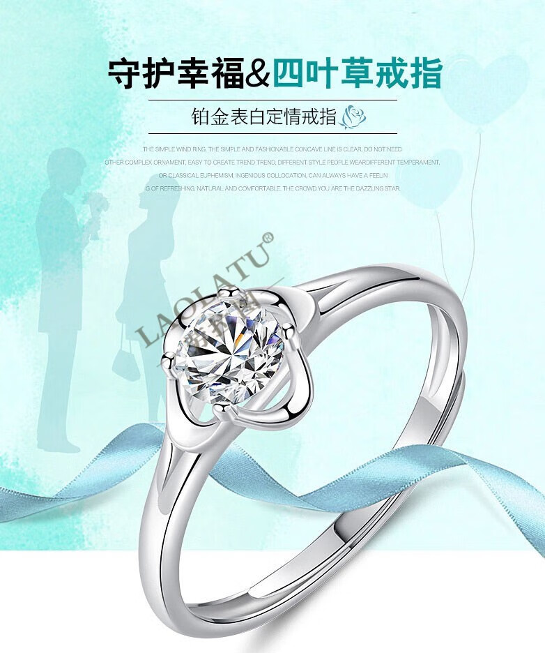 LAOLATU four-leaf clover platinum ring female PT950 live confession commemorative birthday gift for girlfriend and wife, light luxury model - moissanite, free engraving