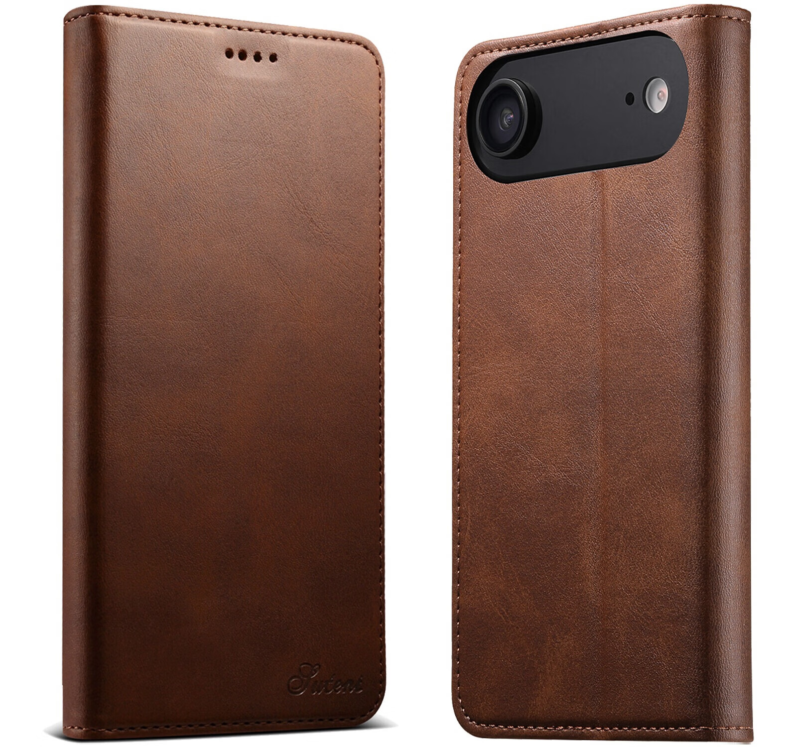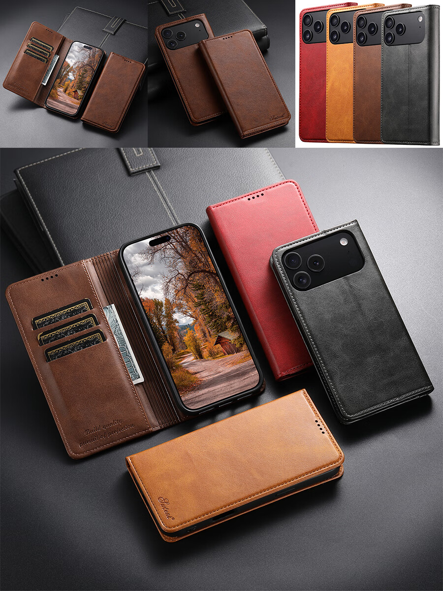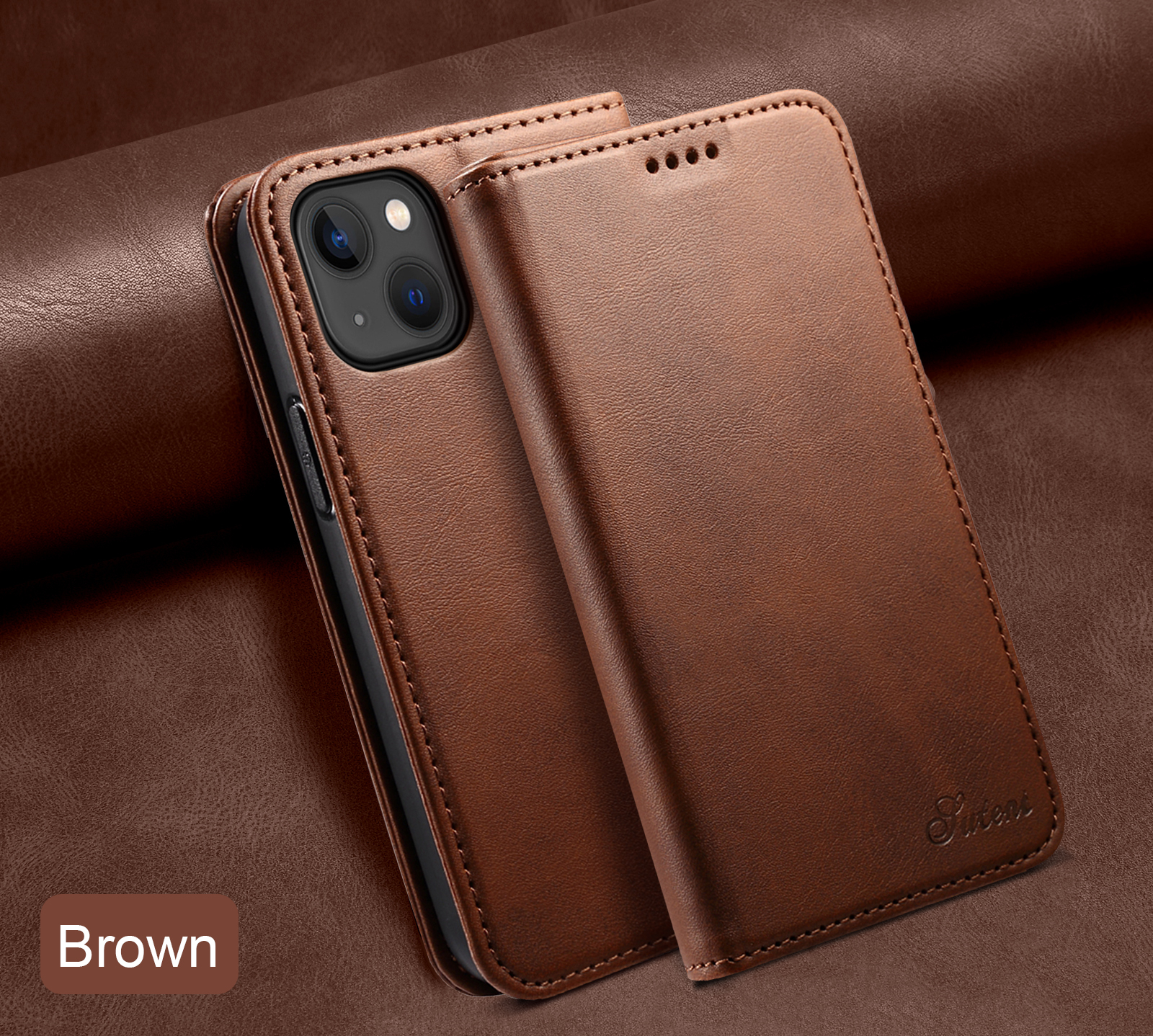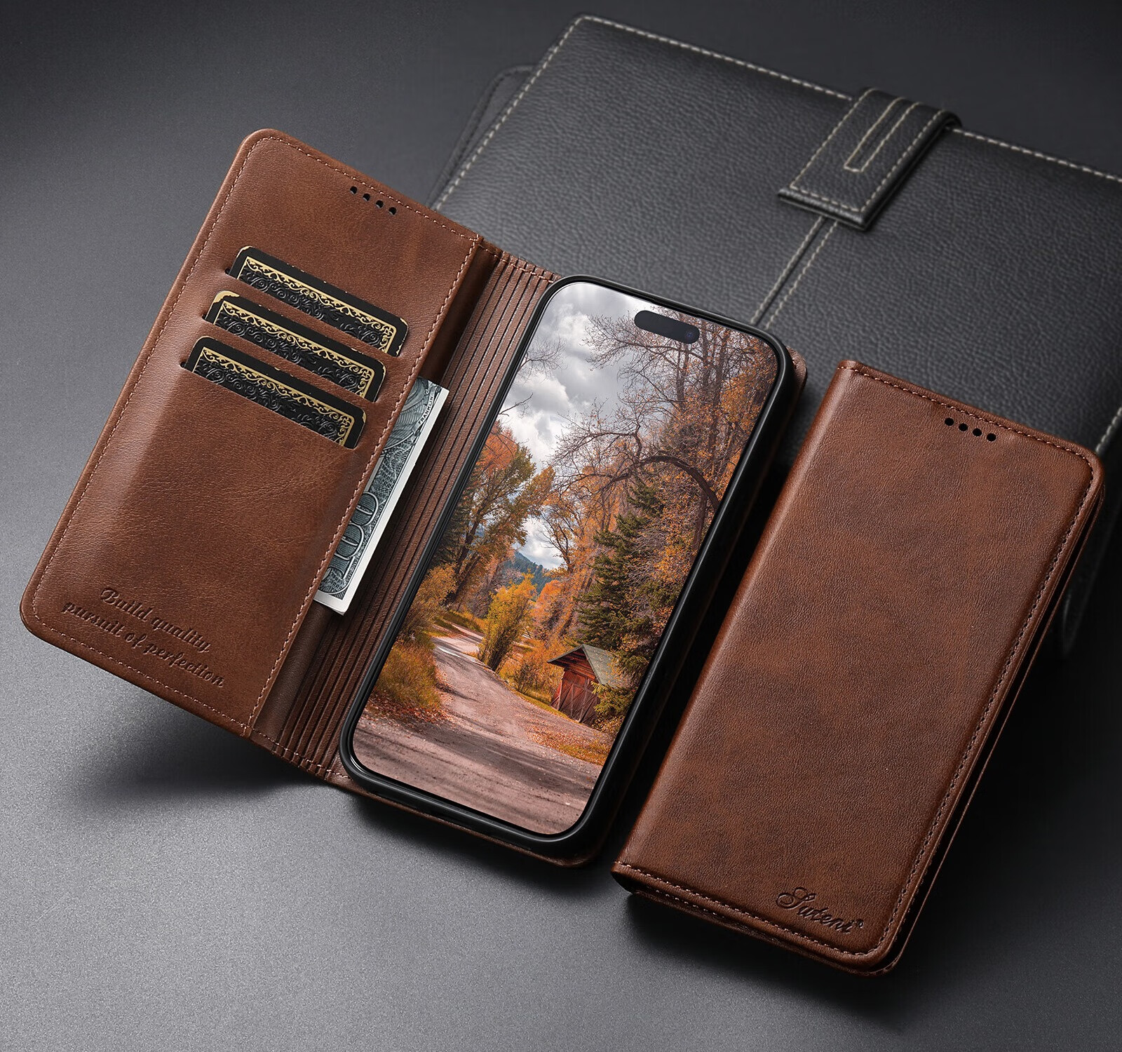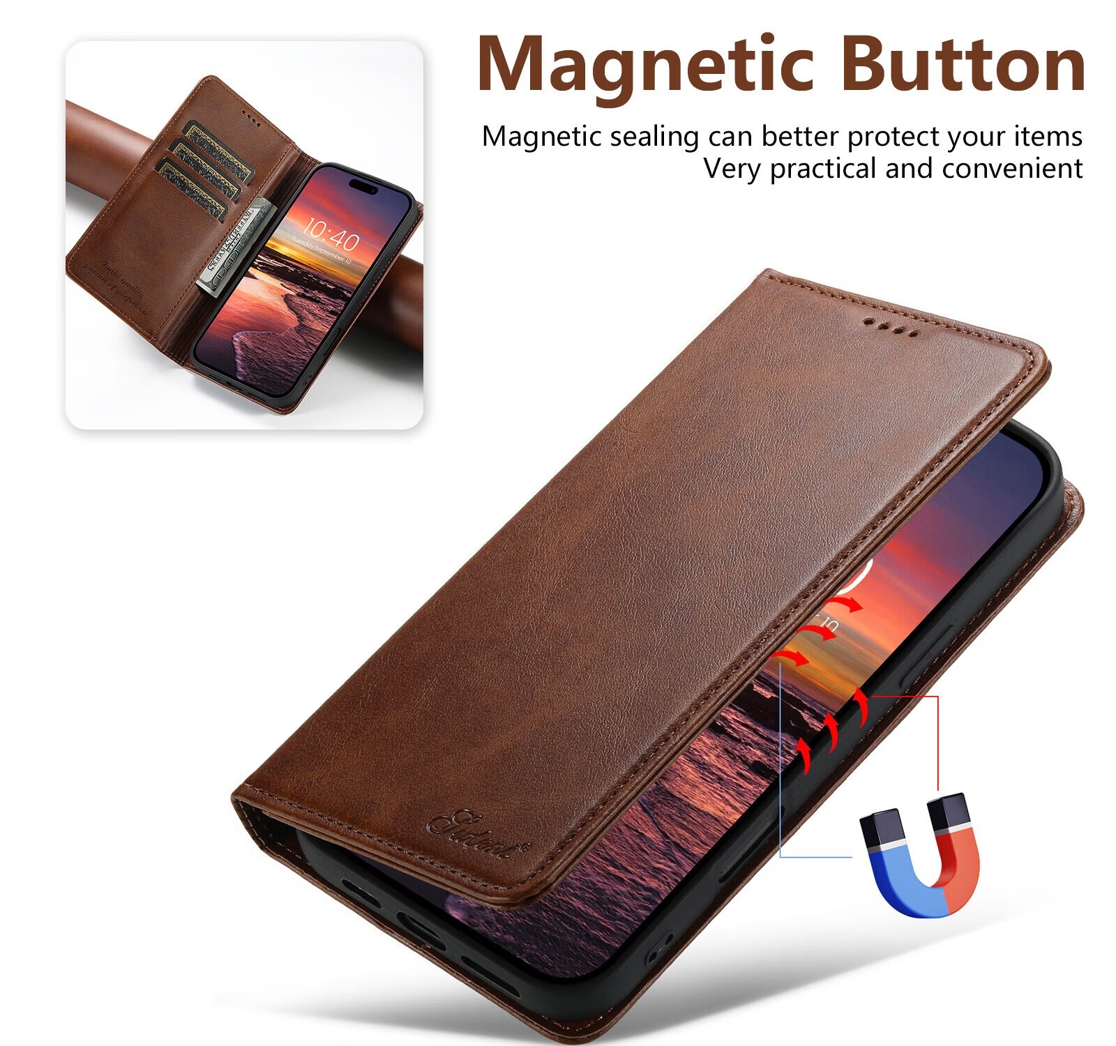 Luo Yi is suitable for Apple 17ProMax mobile phone case iPhone16/15/14/13Pro genuine leather clamshell magnetic leather case all-inclusive anti-fall silicone protective cover for men and women high-end brown calf simple magnetic leather case Apple 15ProMax