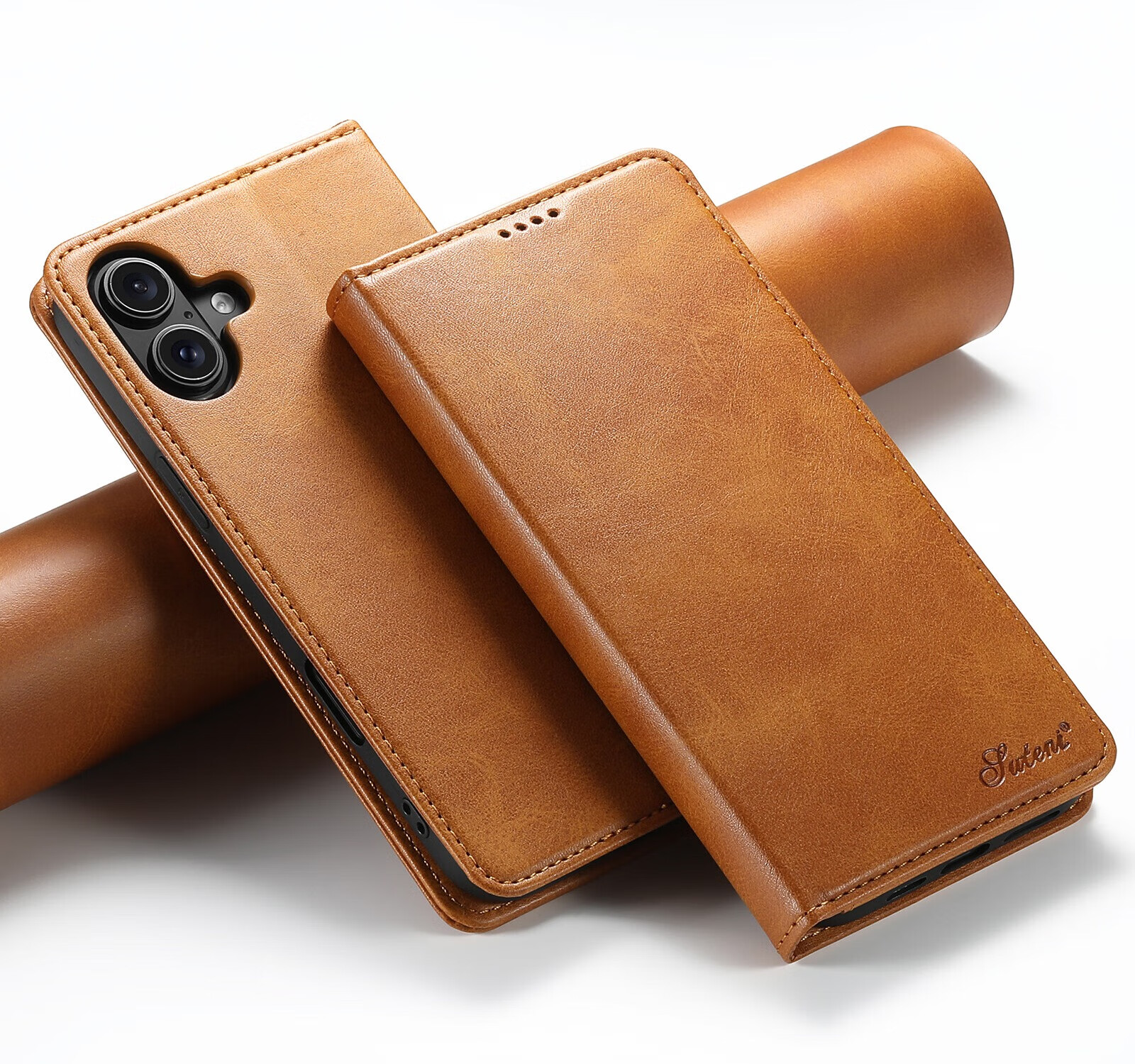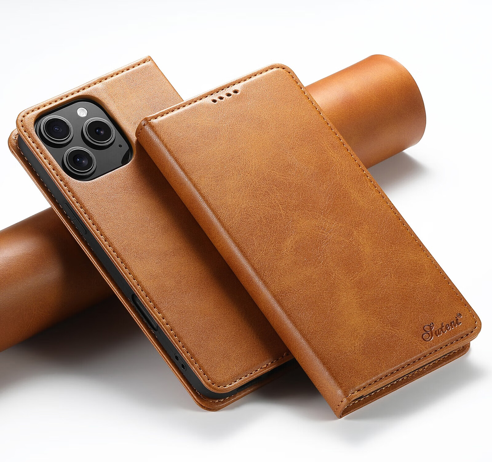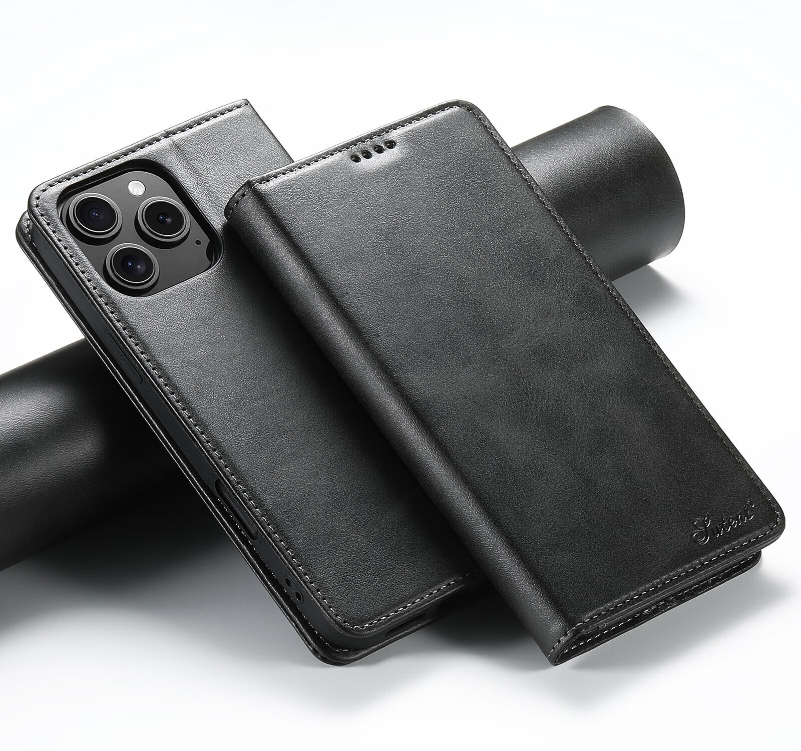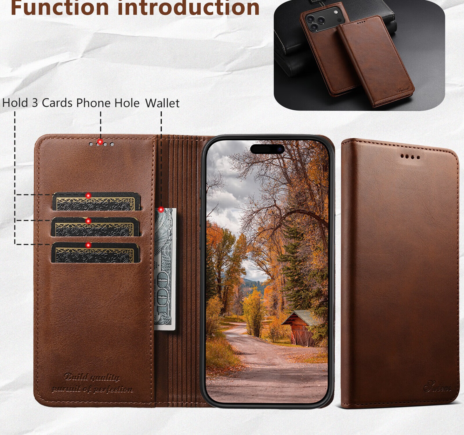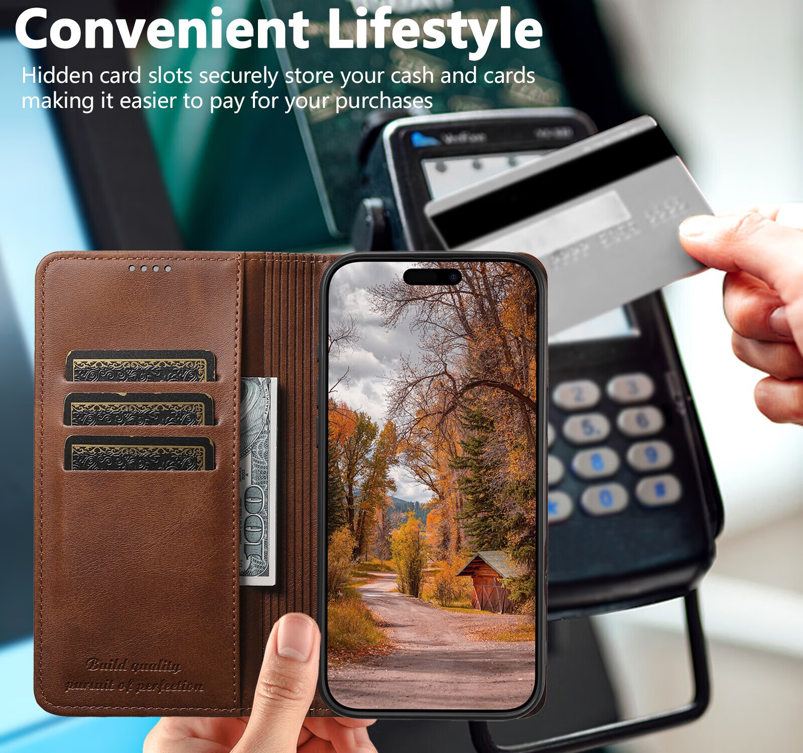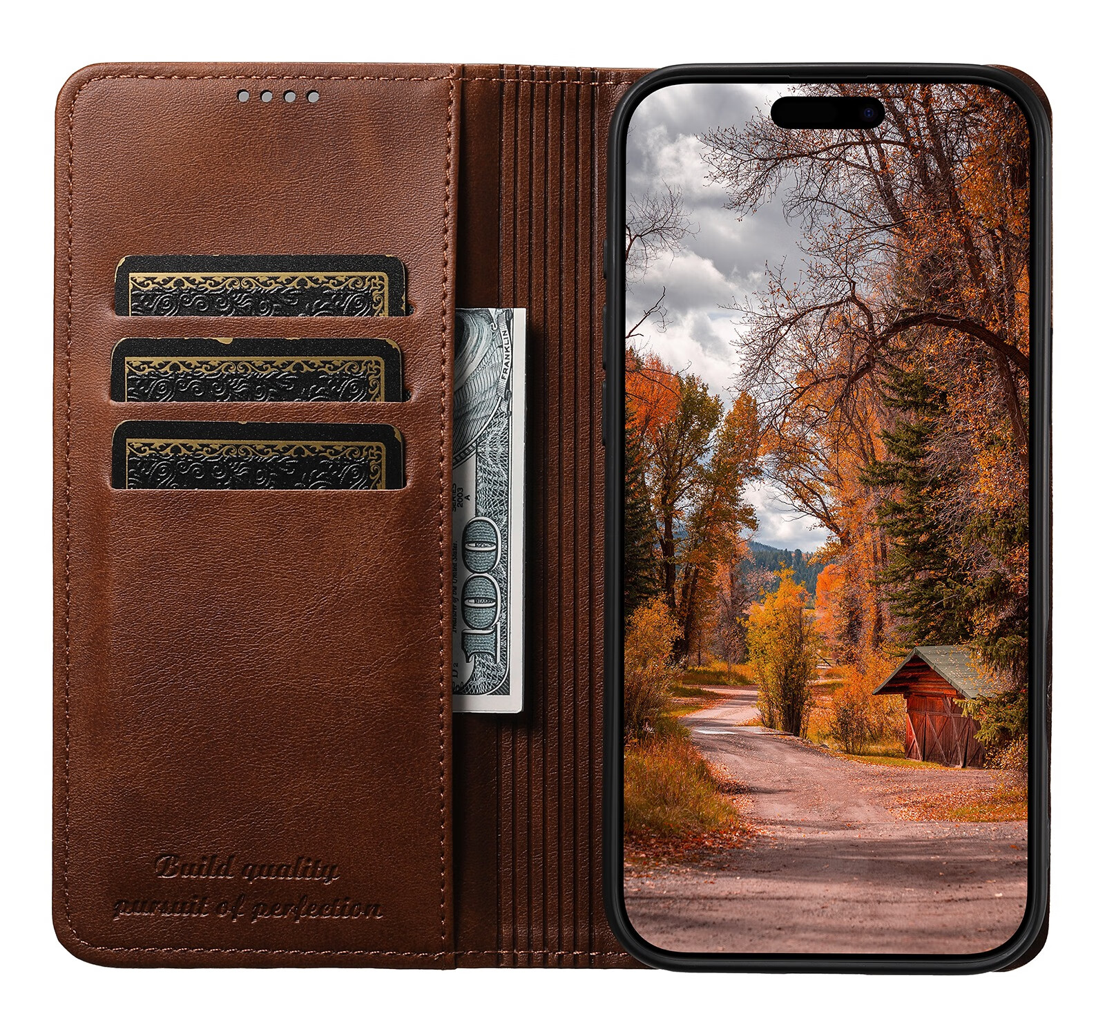 Luo Yi is suitable for Apple 17ProMax mobile phone case iPhone16/15/14/13Pro genuine leather clamshell magnetic leather case all-inclusive anti-fall silicone protective cover for men and women high-end brown calf simple magnetic leather case Apple 15ProMax