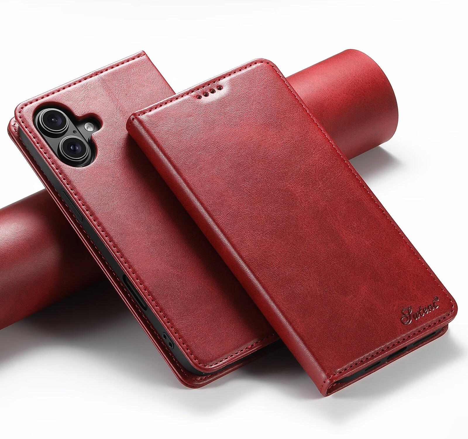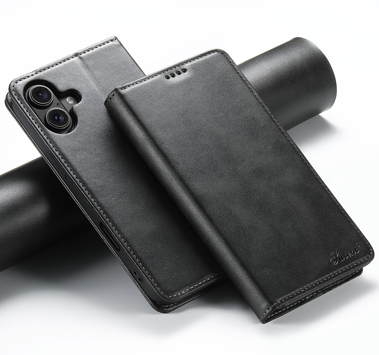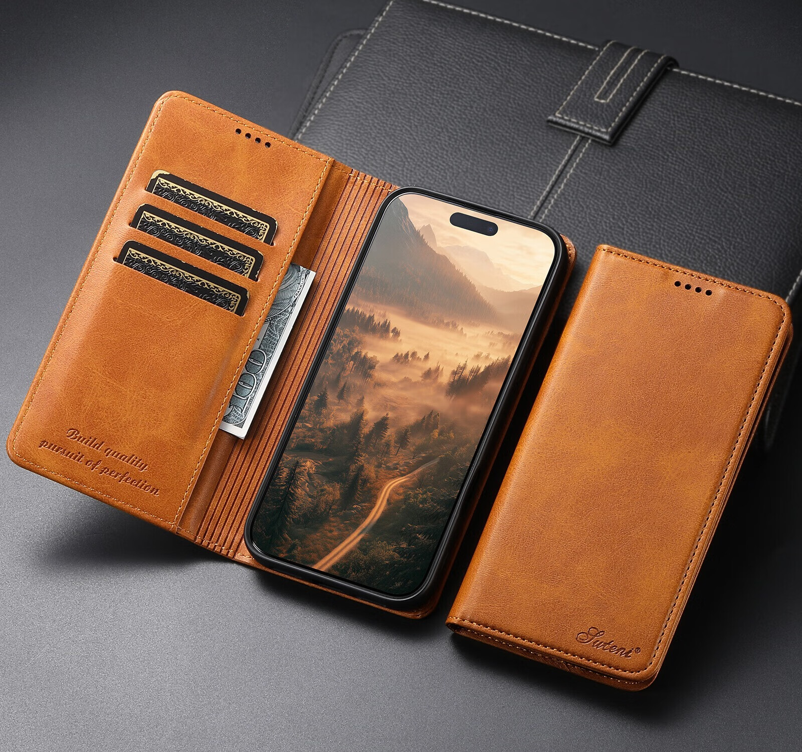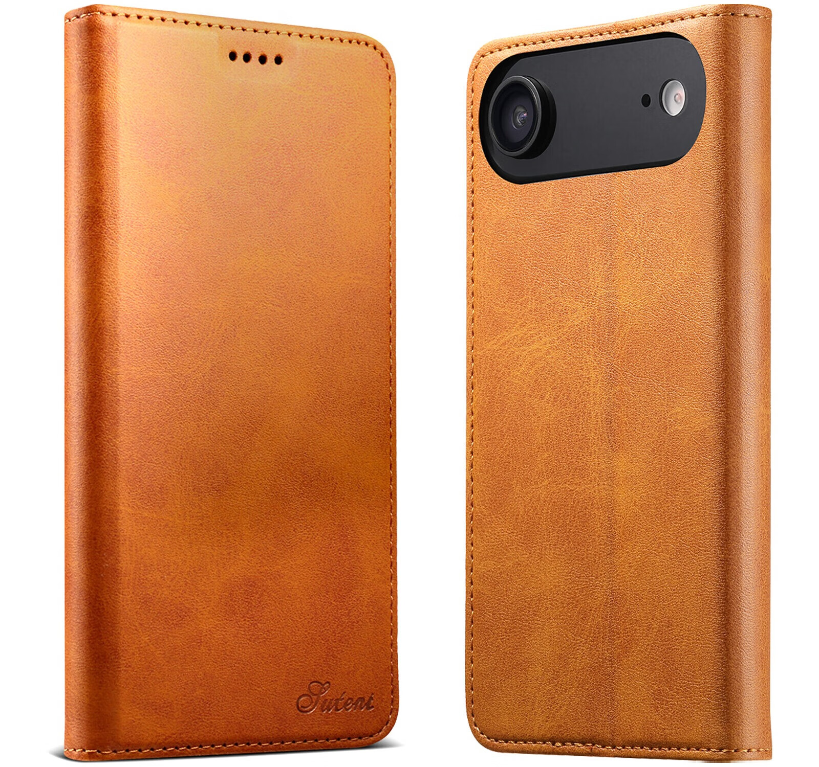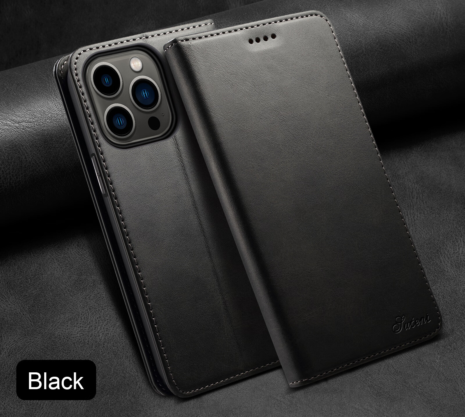 Luo Yi is suitable for Apple 17ProMax mobile phone case iPhone16/15/14/13Pro genuine leather clamshell magnetic leather case all-inclusive anti-fall silicone protective cover for men and women high-end brown calf simple magnetic leather case Apple 15ProMax