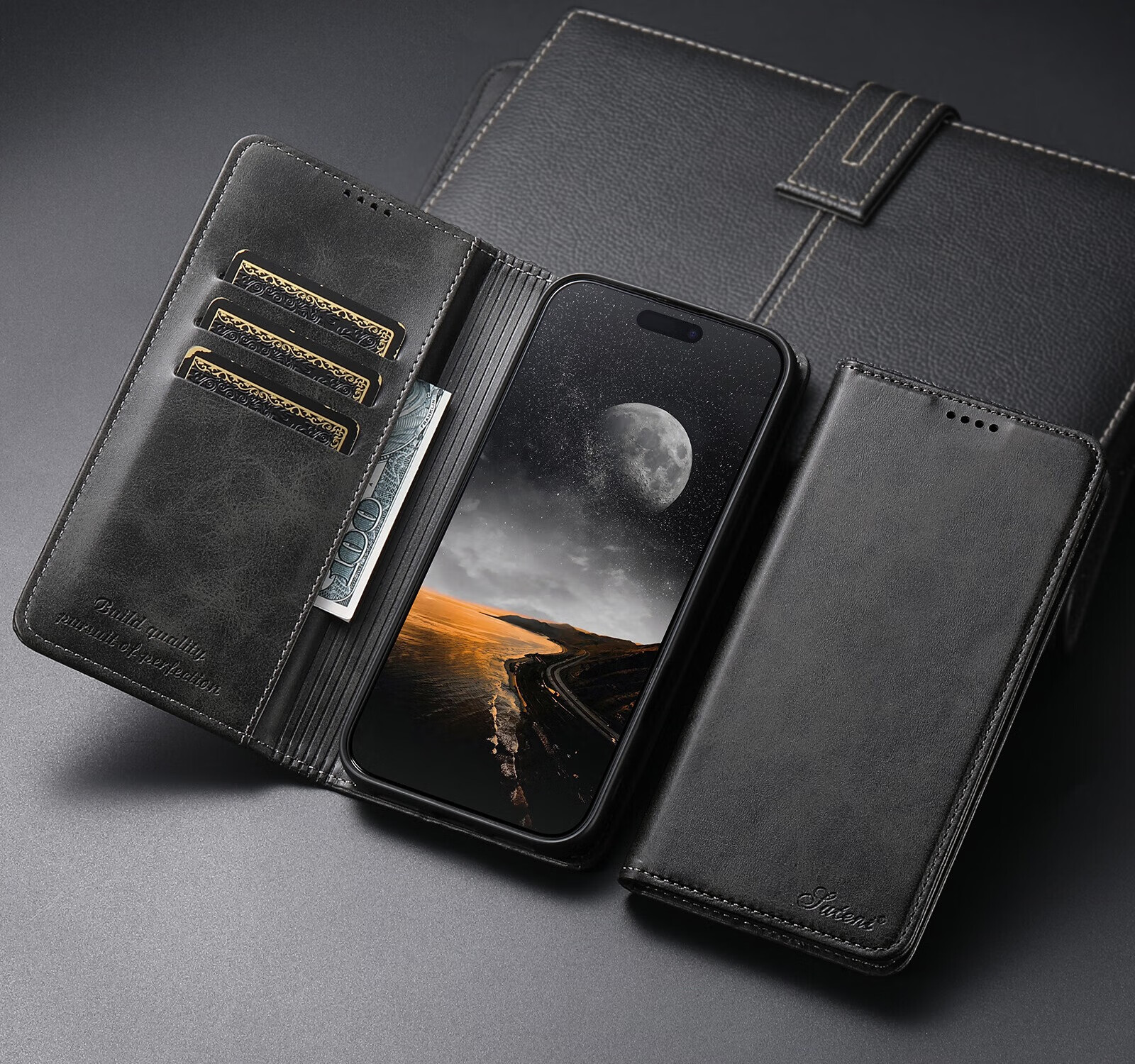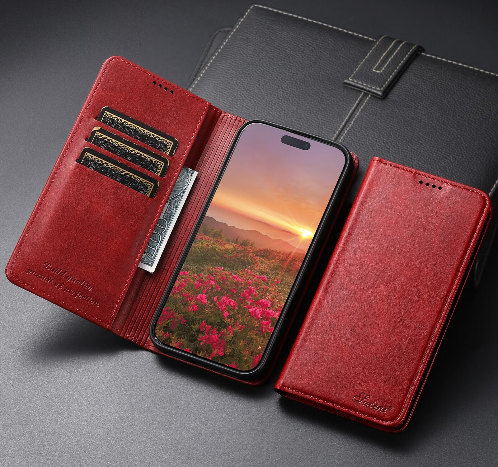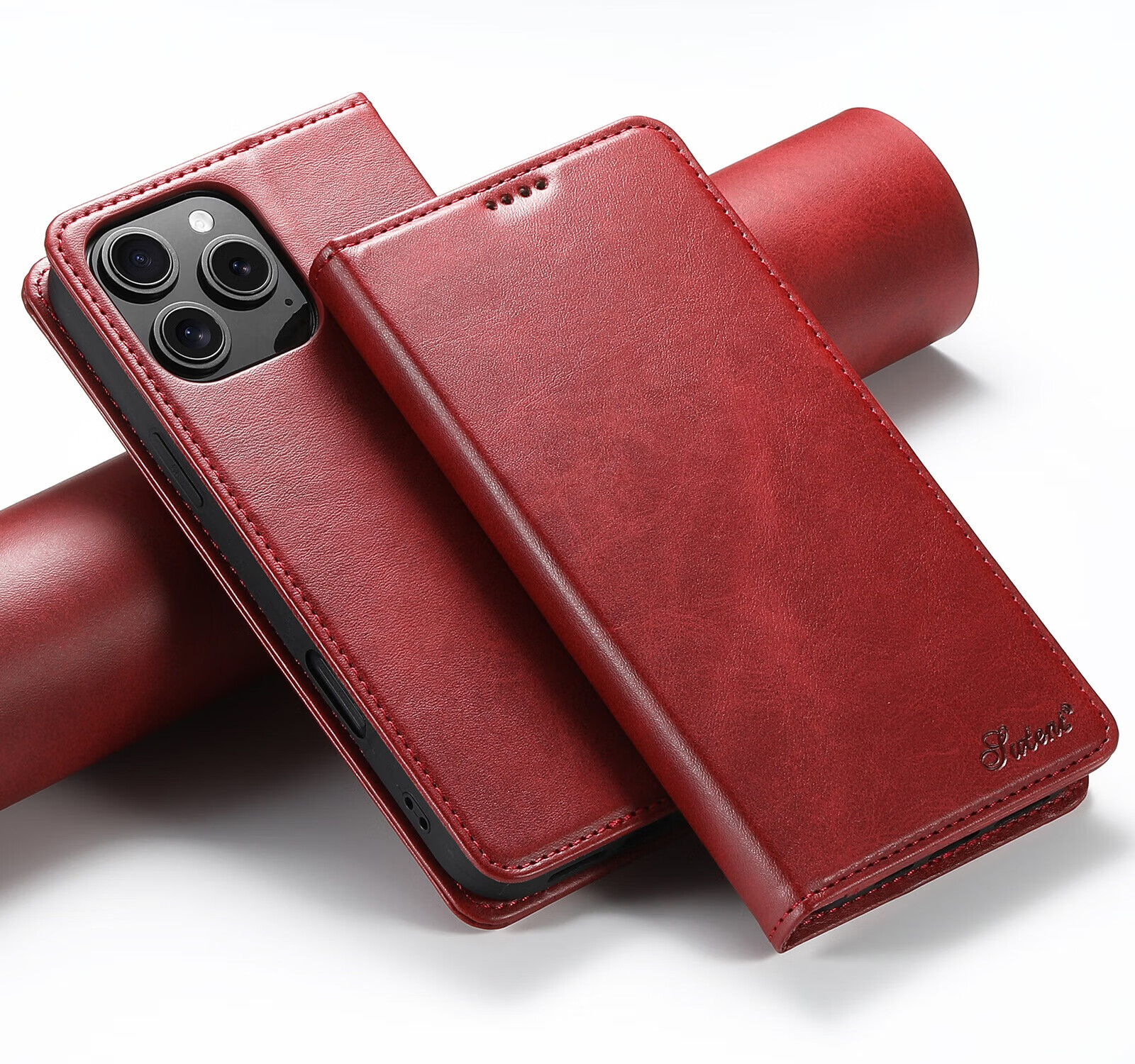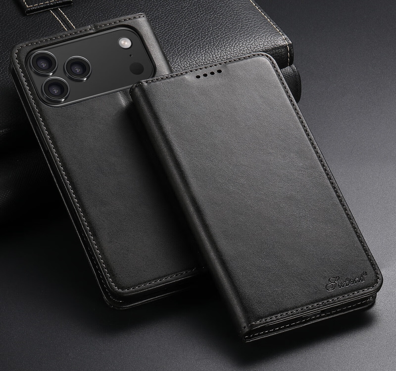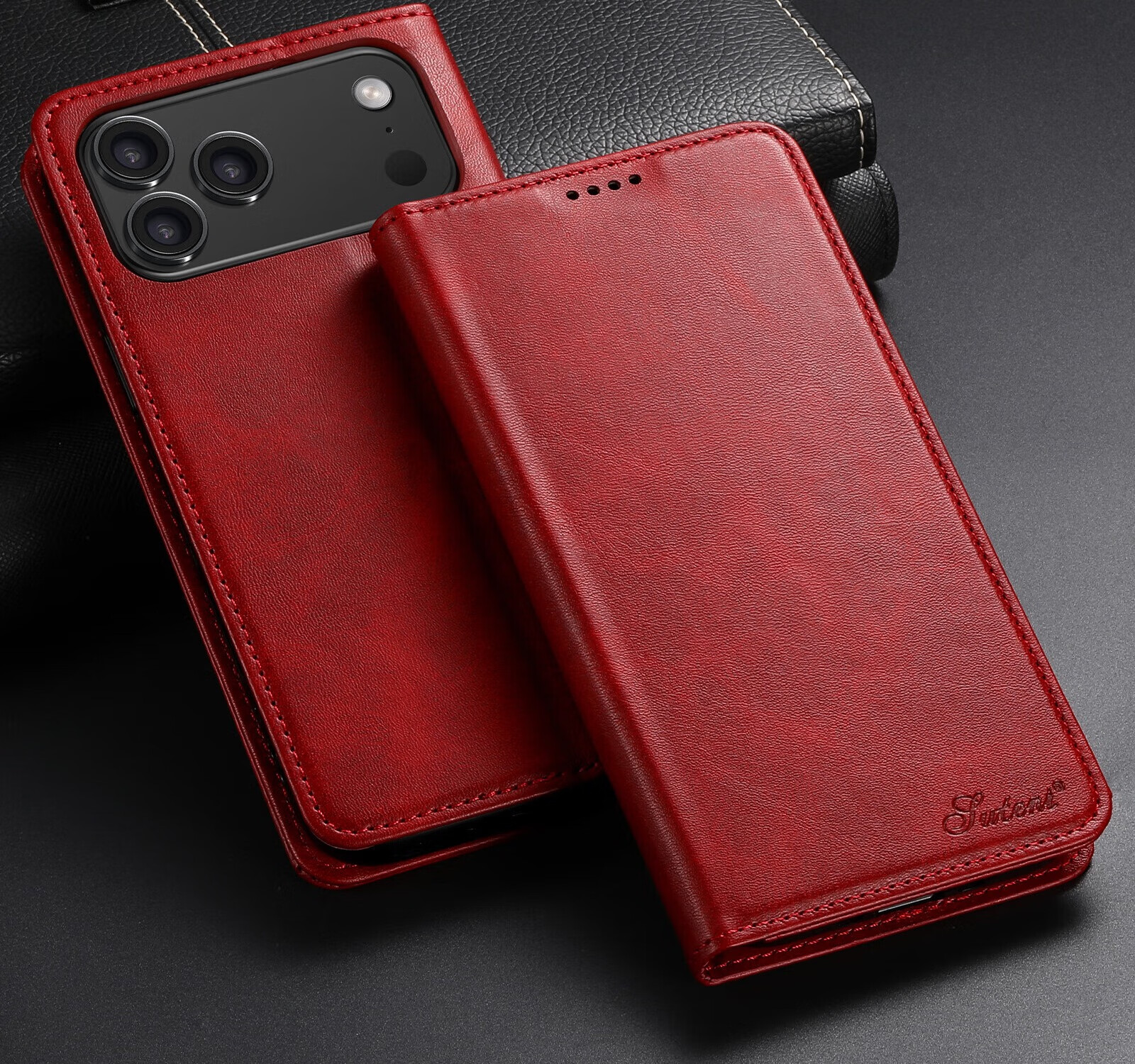 Luo Yi is suitable for Apple 17ProMax mobile phone case iPhone16/15/14/13Pro genuine leather clamshell magnetic leather case all-inclusive anti-fall silicone protective cover for men and women high-end brown calf simple magnetic leather case Apple 15ProMax