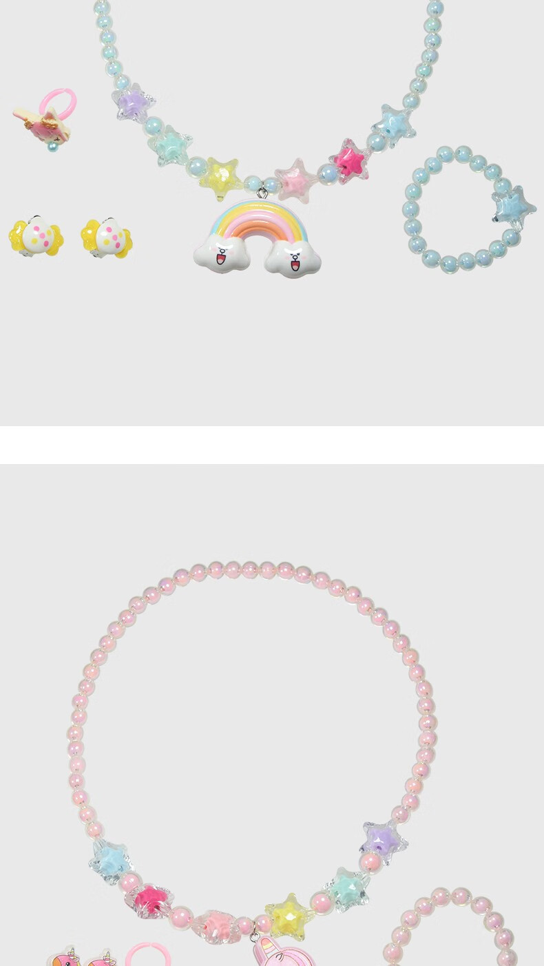 AWE official Zhao Lusi celebrity necklace cute rainbow beaded cartoon bear toy jewelry set of four Bear Zhao Lusi four-piece set