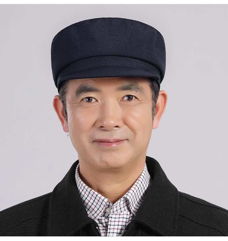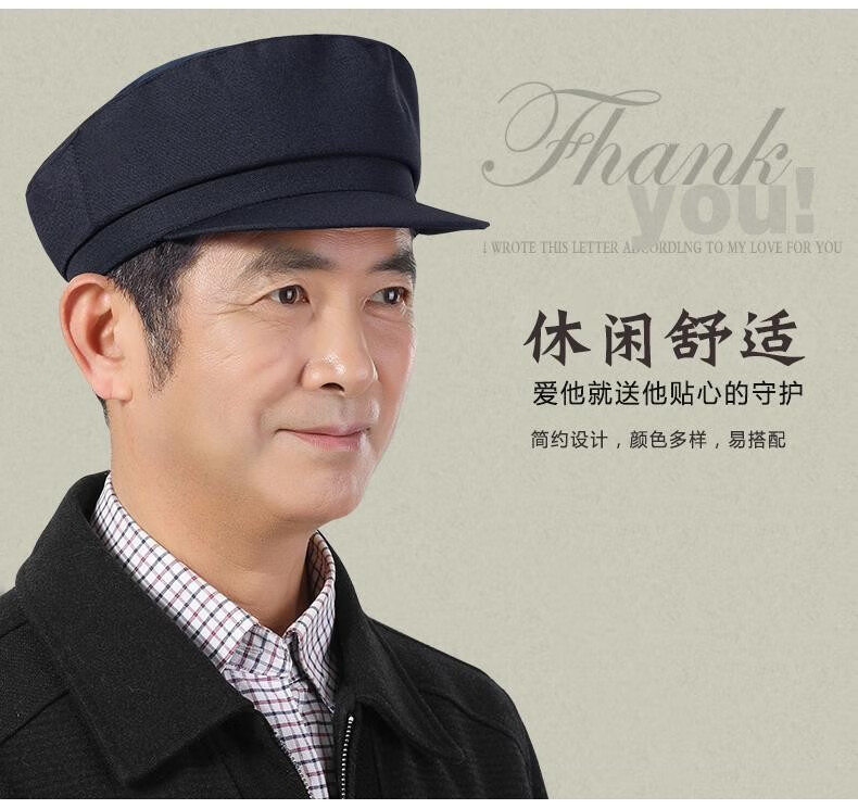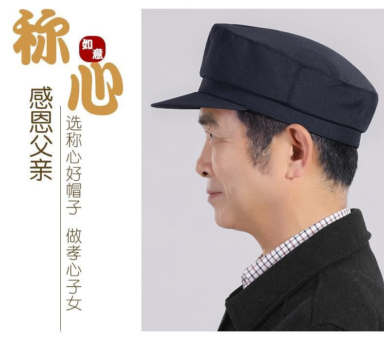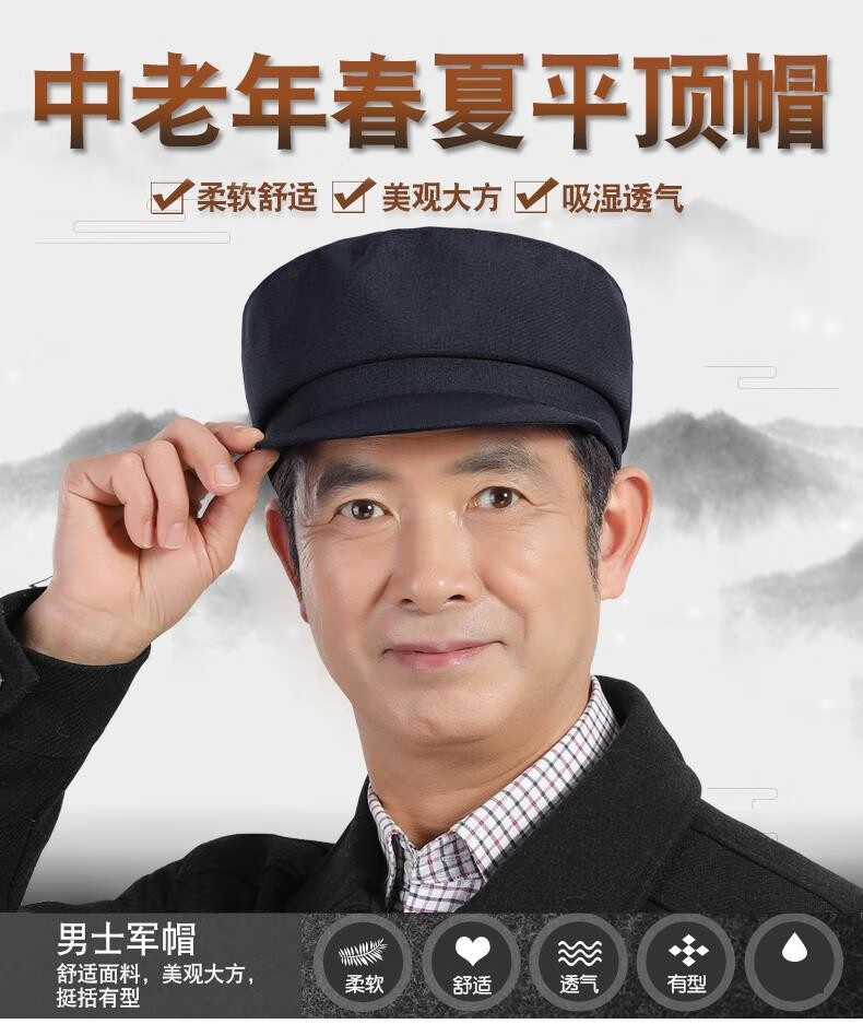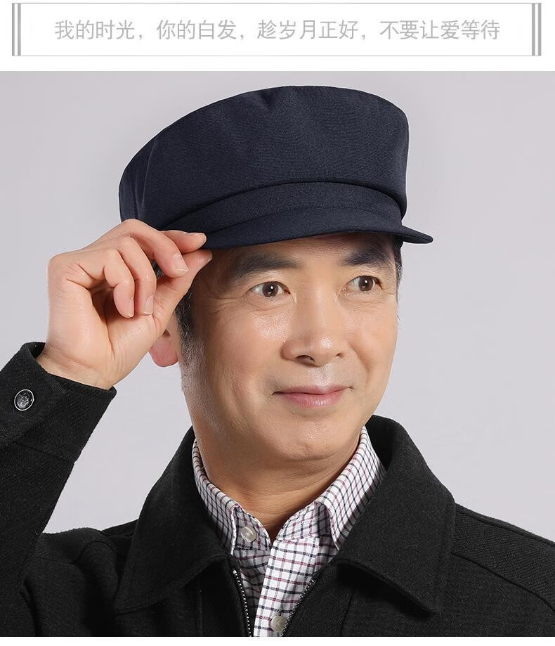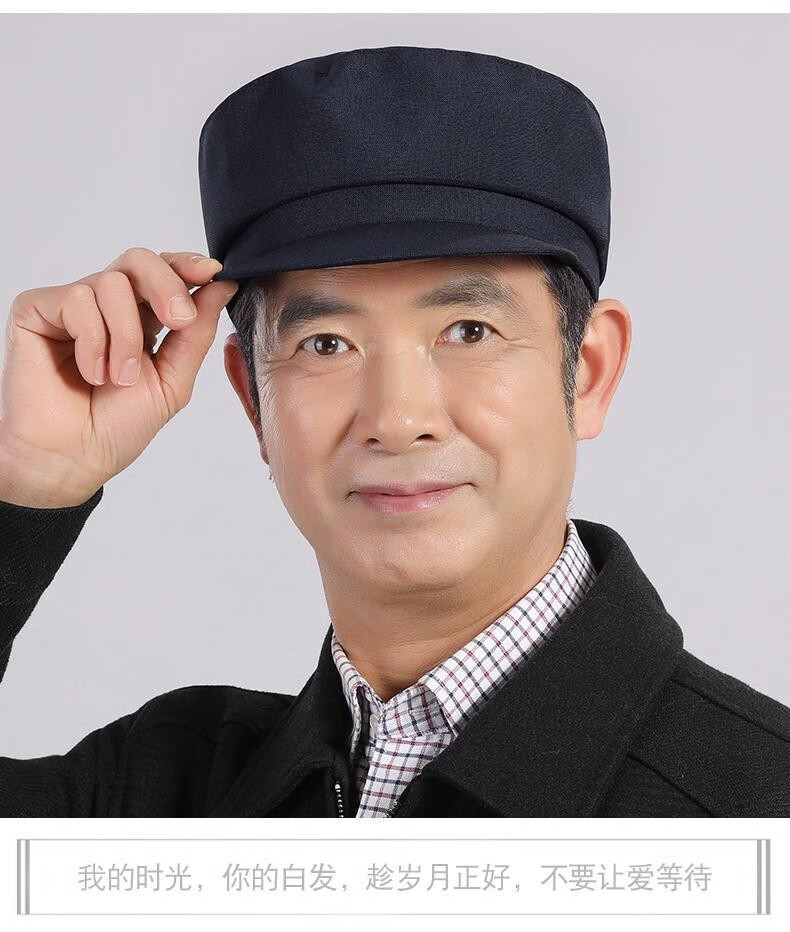 Changyin middle-aged and elderly hats, spring and autumn men's old hats, cloth hats, grandpa autumn flat-top thin dad hats, elderly Zhongshan hats, flat-top hats - autumn and winter black M 57C