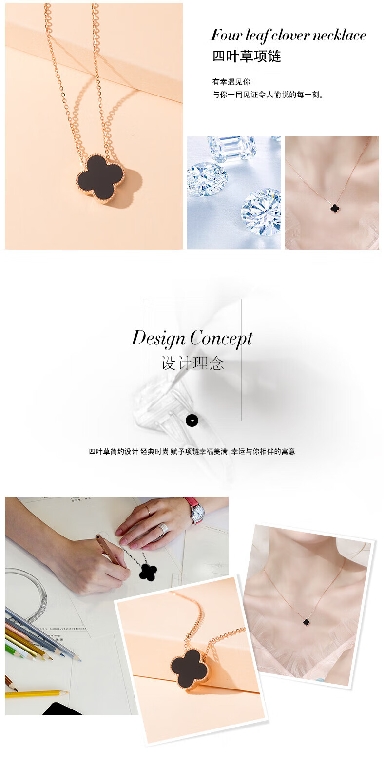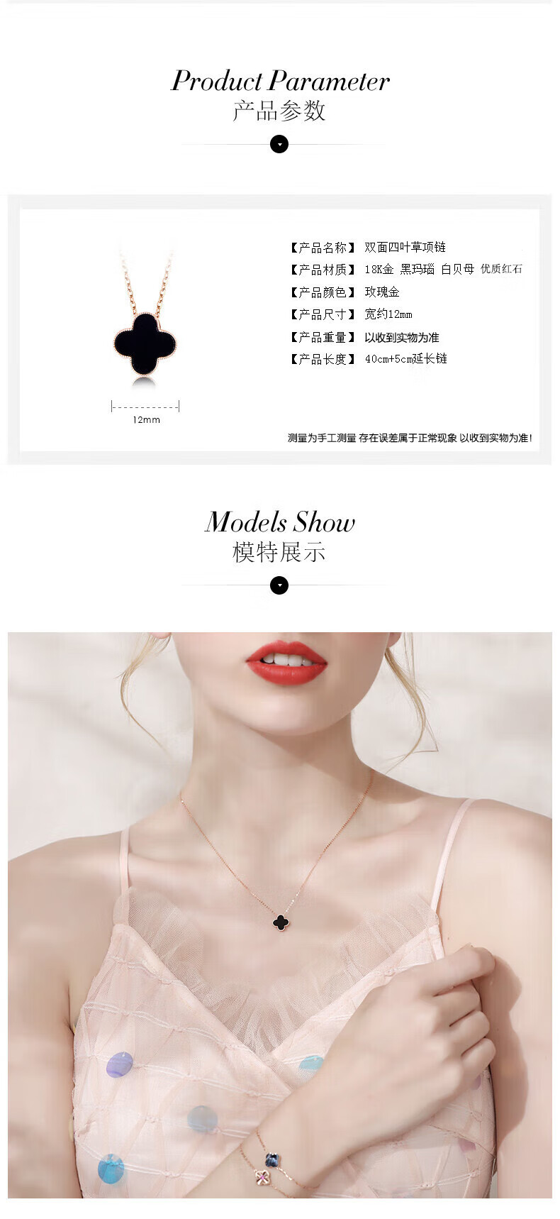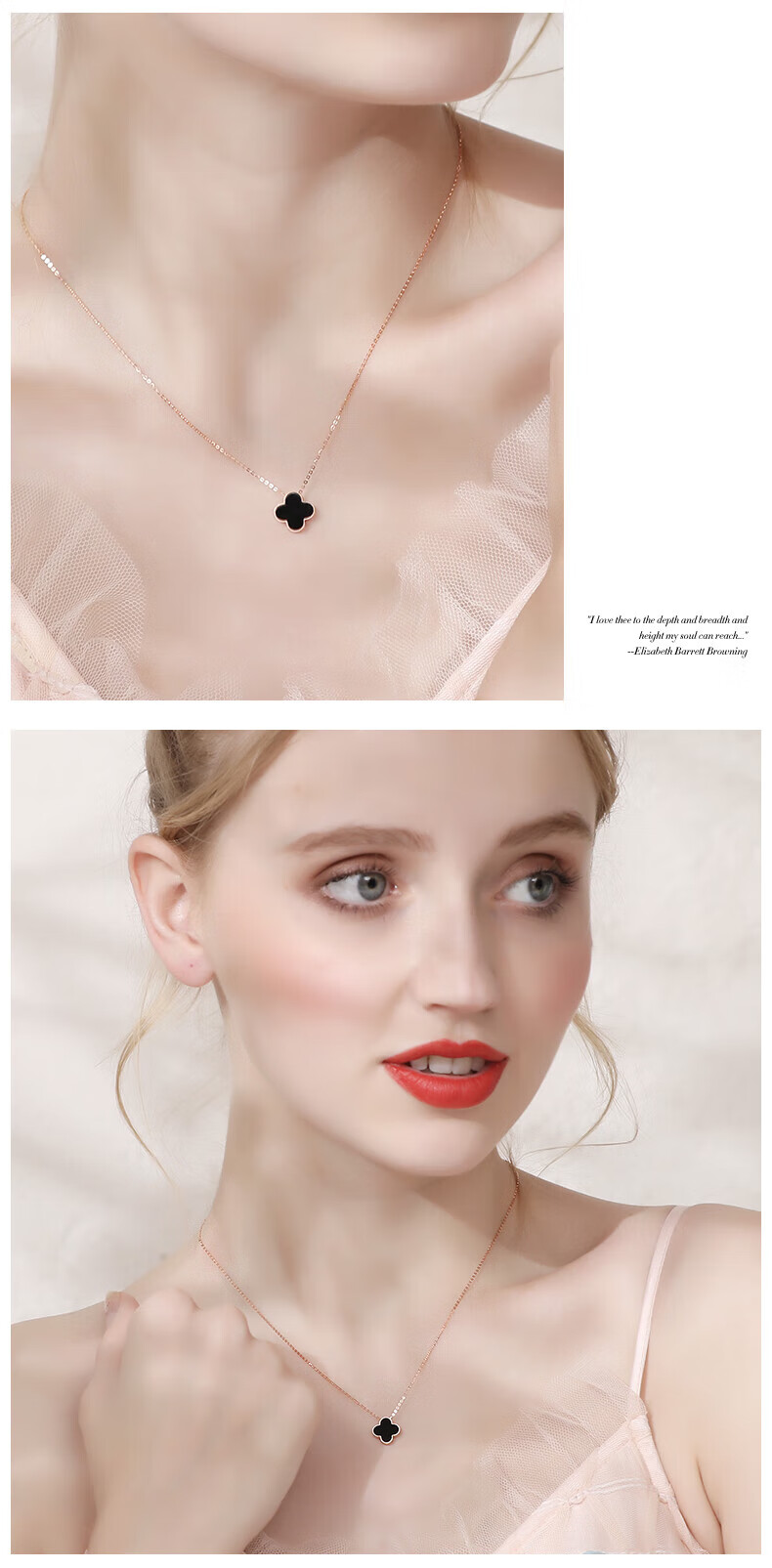Grace Girl original 18K gold double-sided four-leaf clover necklace for women, a two-wear rose gold gift for girlfriend on Chinese Valentine's Day, double-sided four-leaf clover - black and red, local warehouse