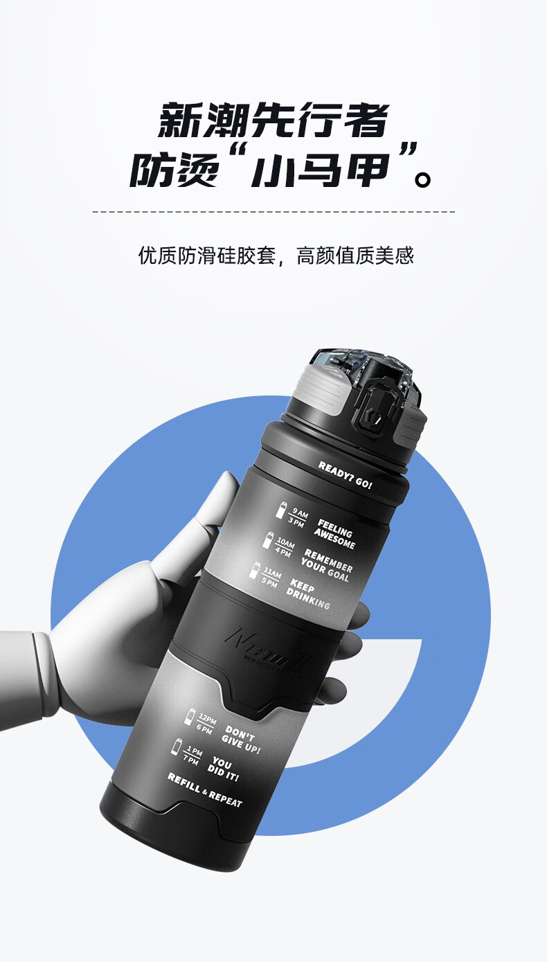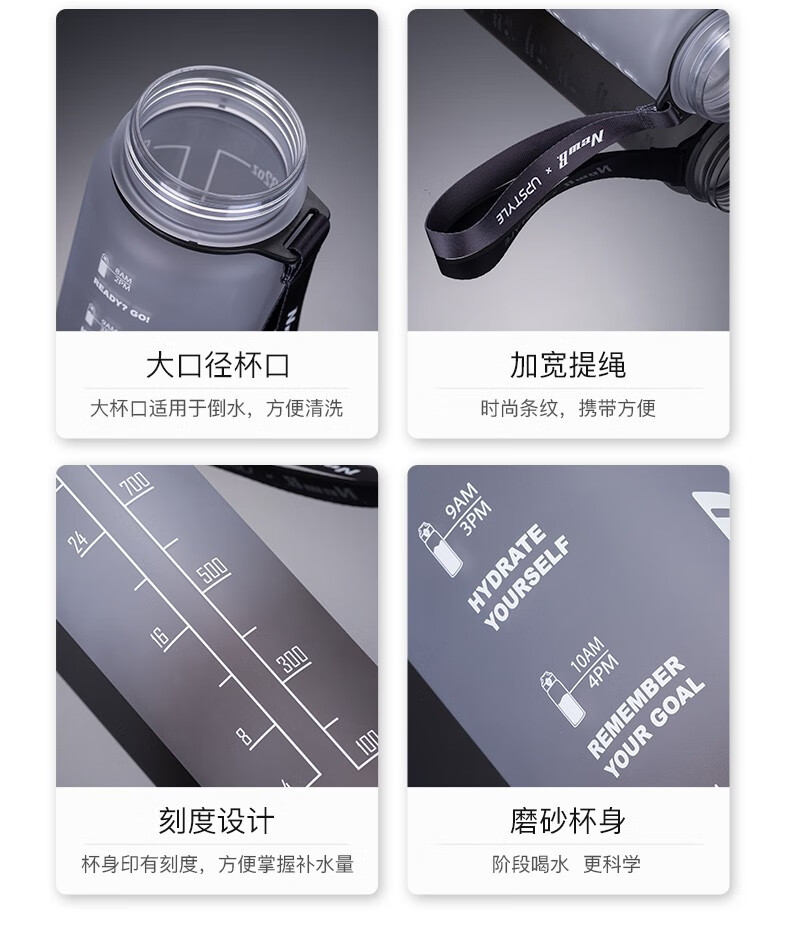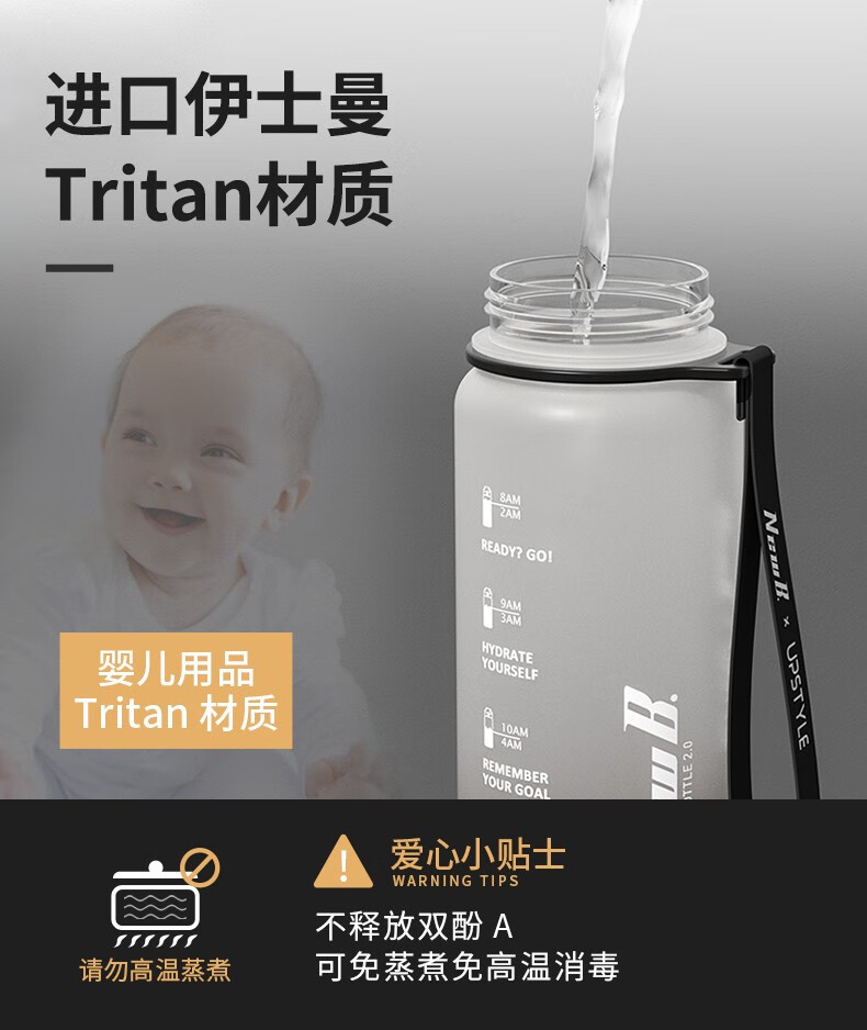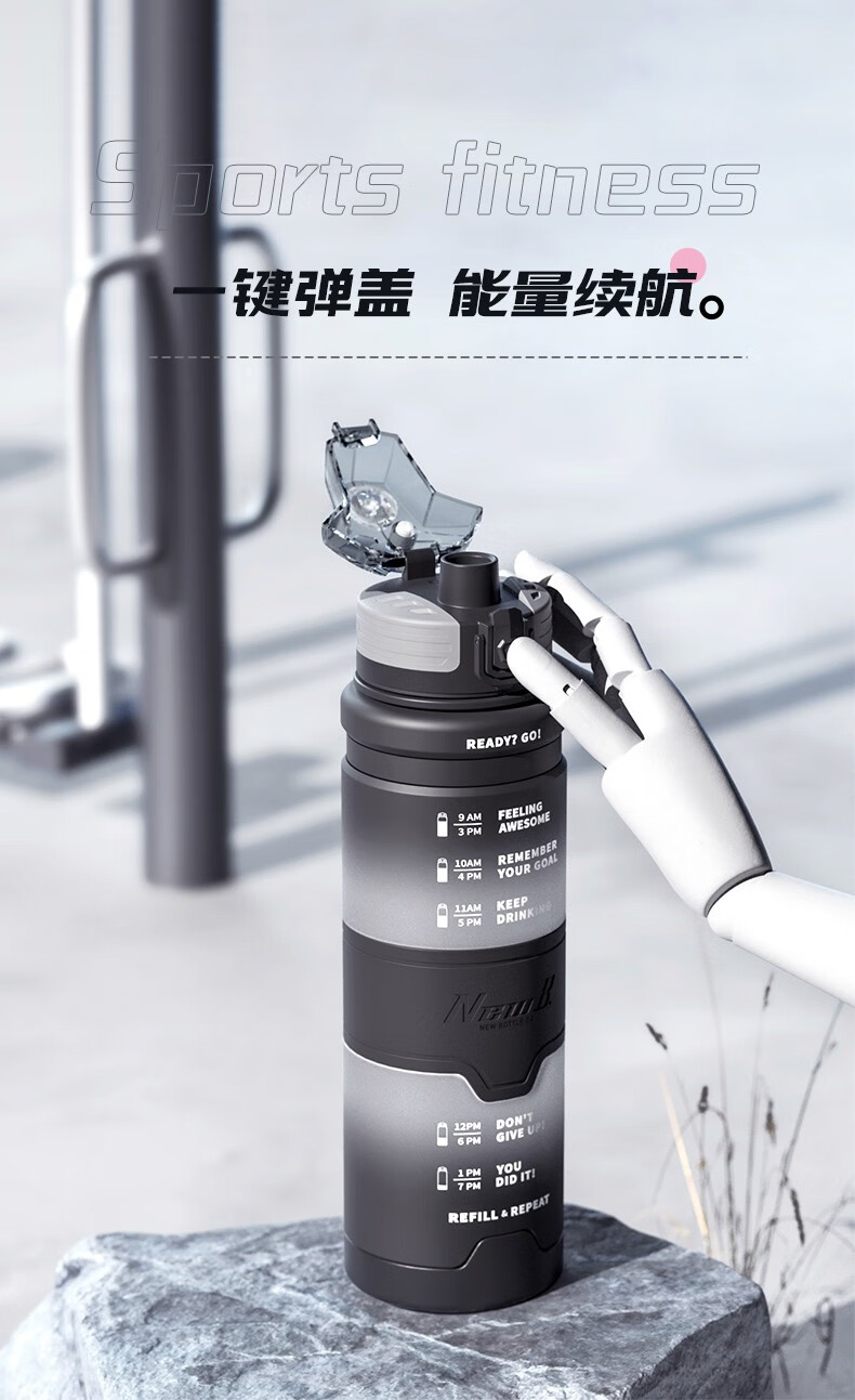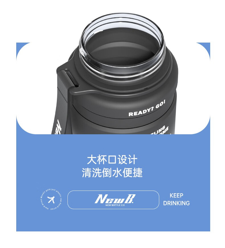 NEWB large-capacity sports kettle Tritan plastic drinking cup for men and women students summer fitness tea cup upgraded with insulation pad-Yaohei 1000ml