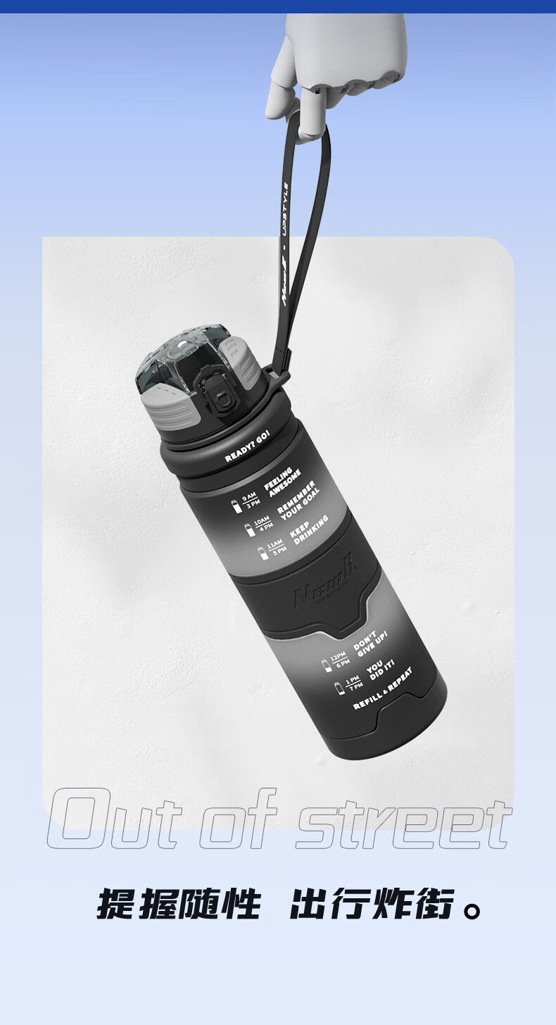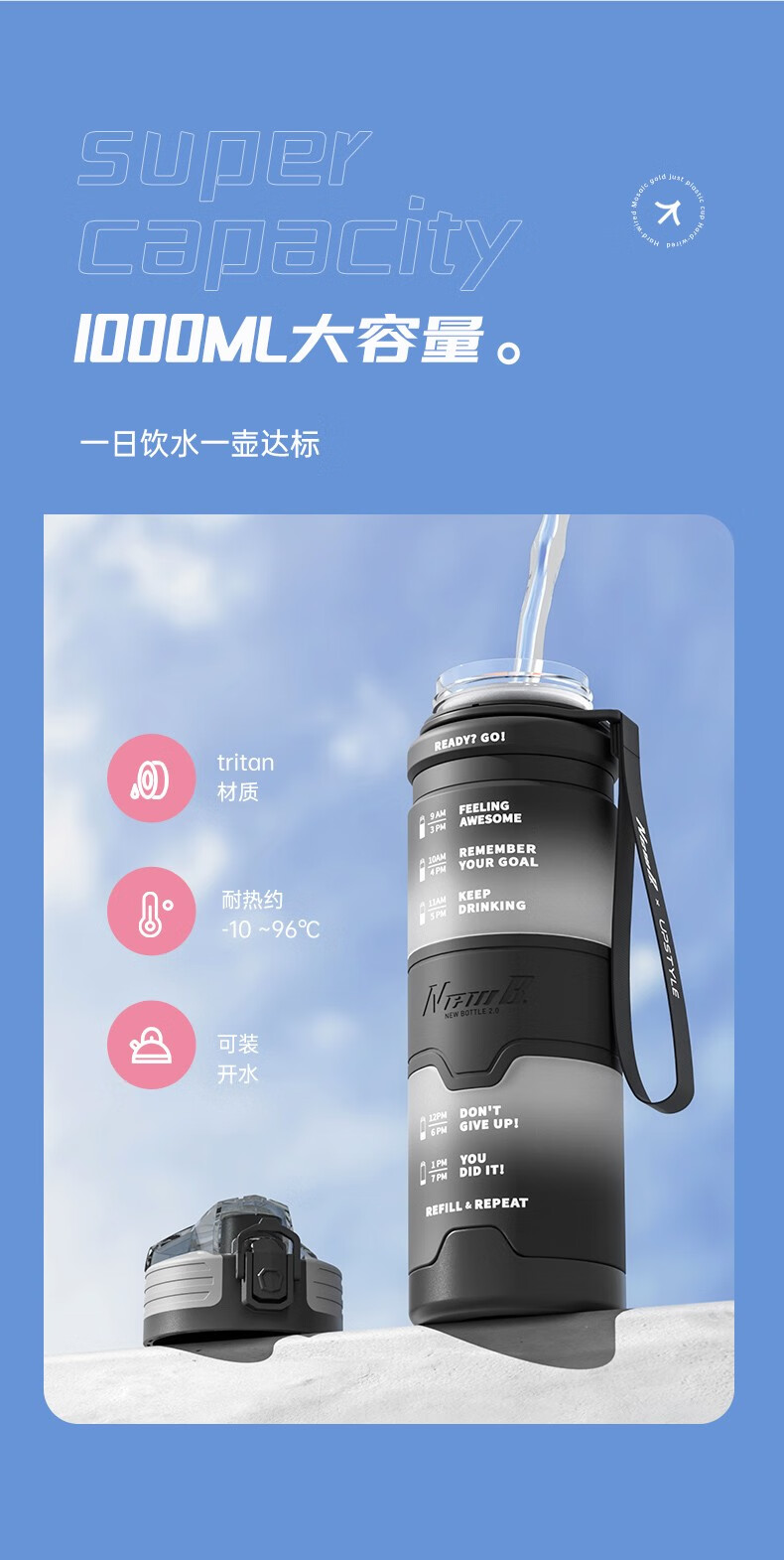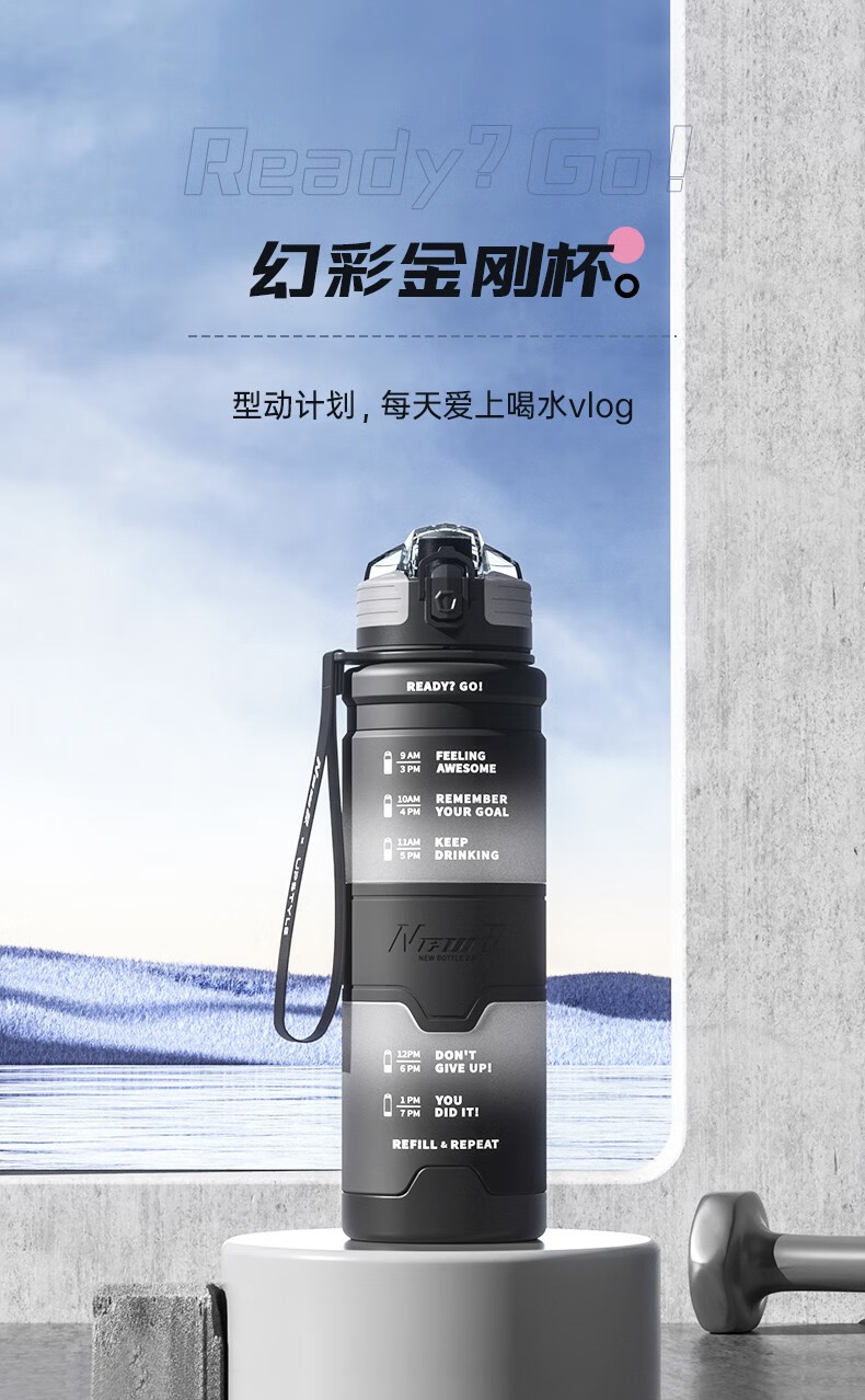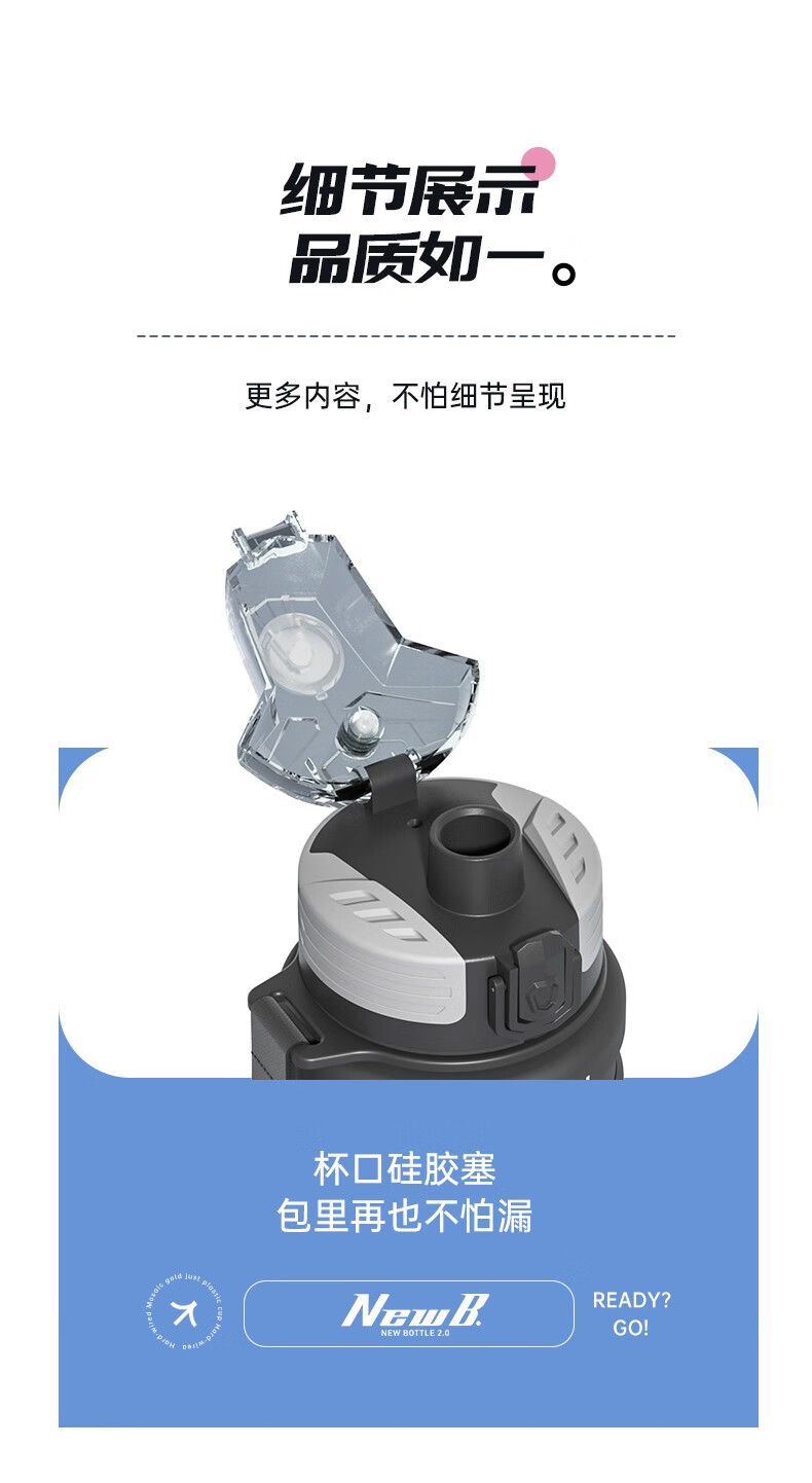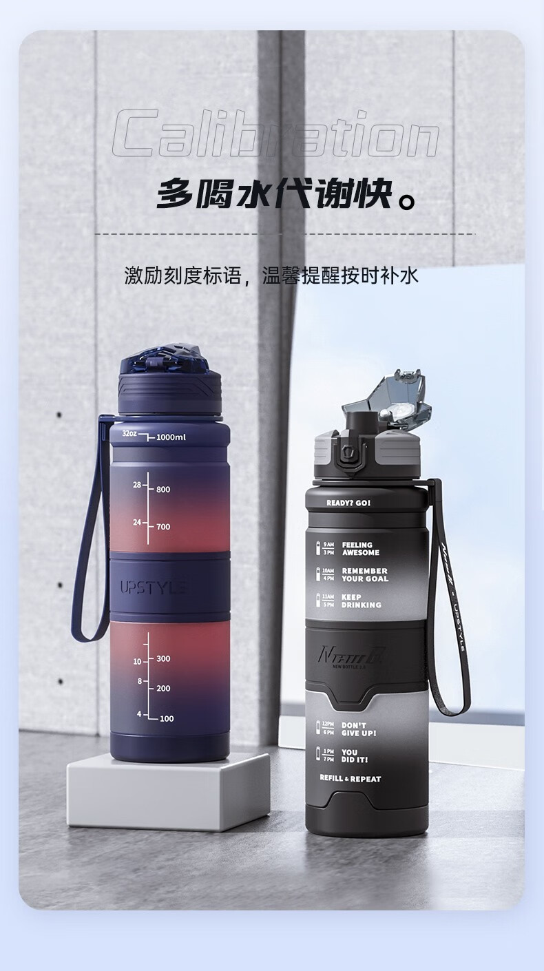 NEWB large-capacity sports kettle Tritan plastic drinking cup for men and women students summer fitness tea cup upgraded with insulation pad-Yaohei 1000ml